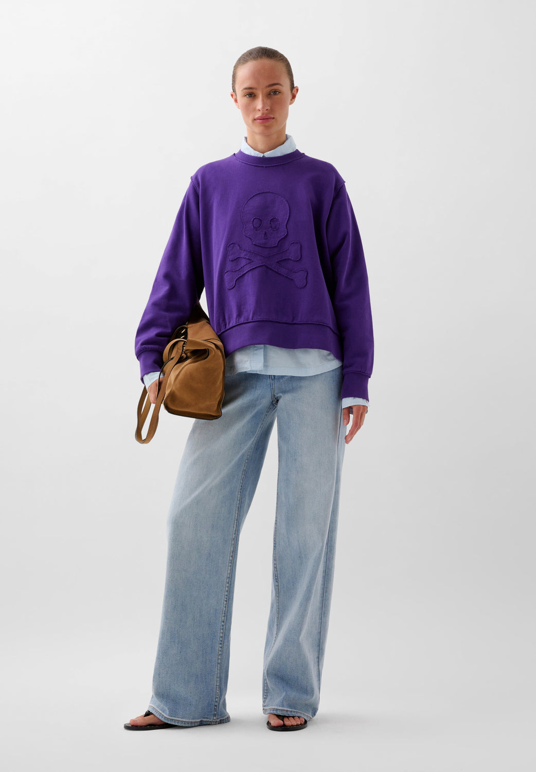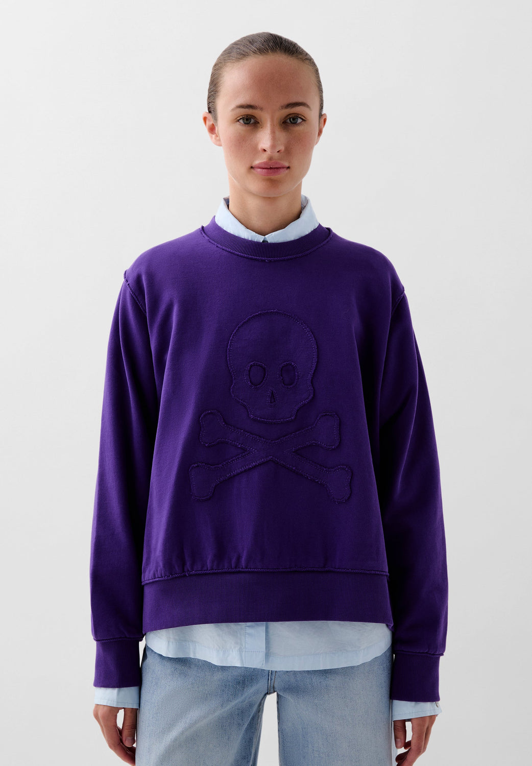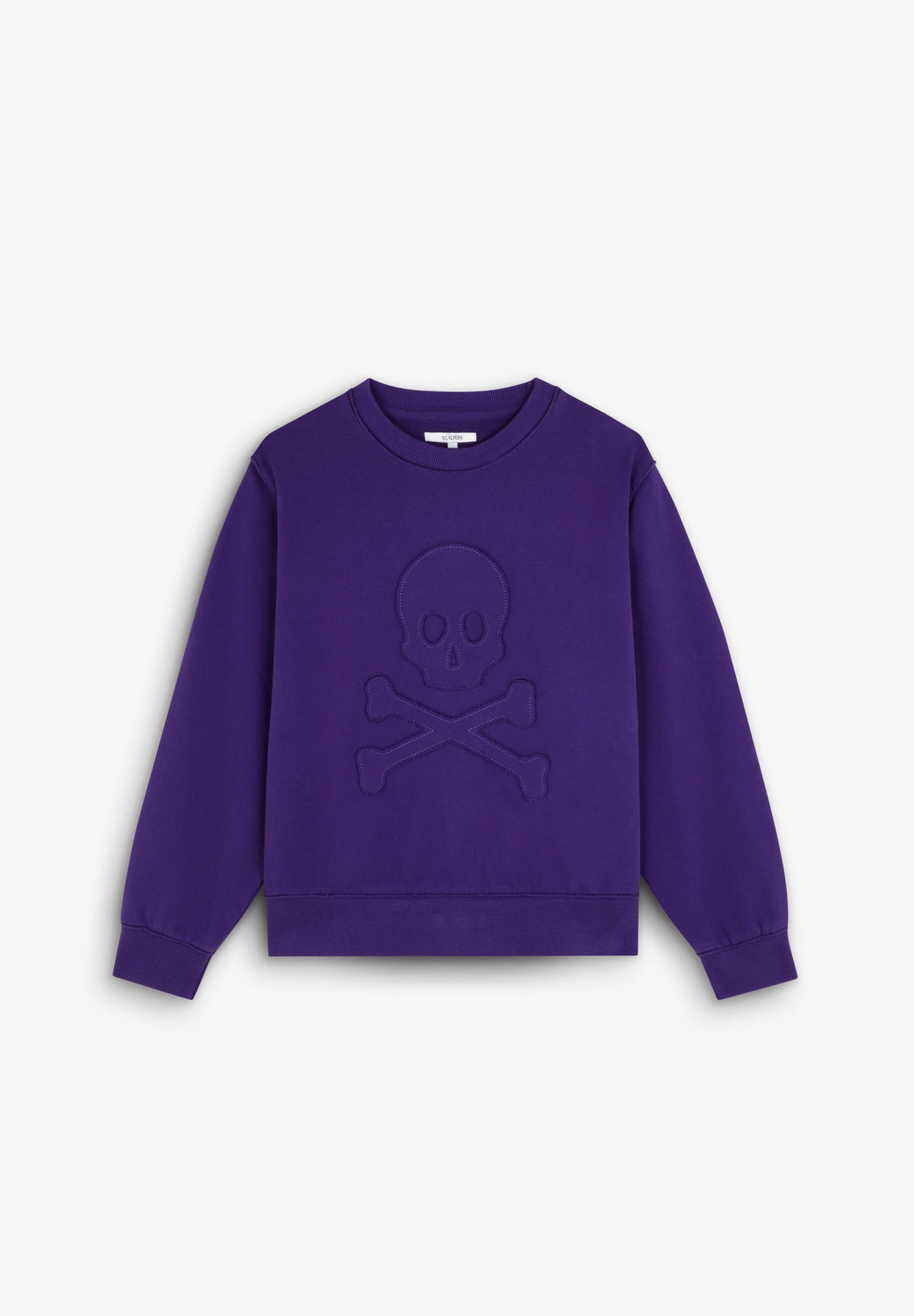 Sudadera confeccionada en algodón ligeramente elástico. Regular fit, cuello redondo y manga largo con puños acabados en rib. Detalle de calavera frontal en relieve.
