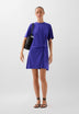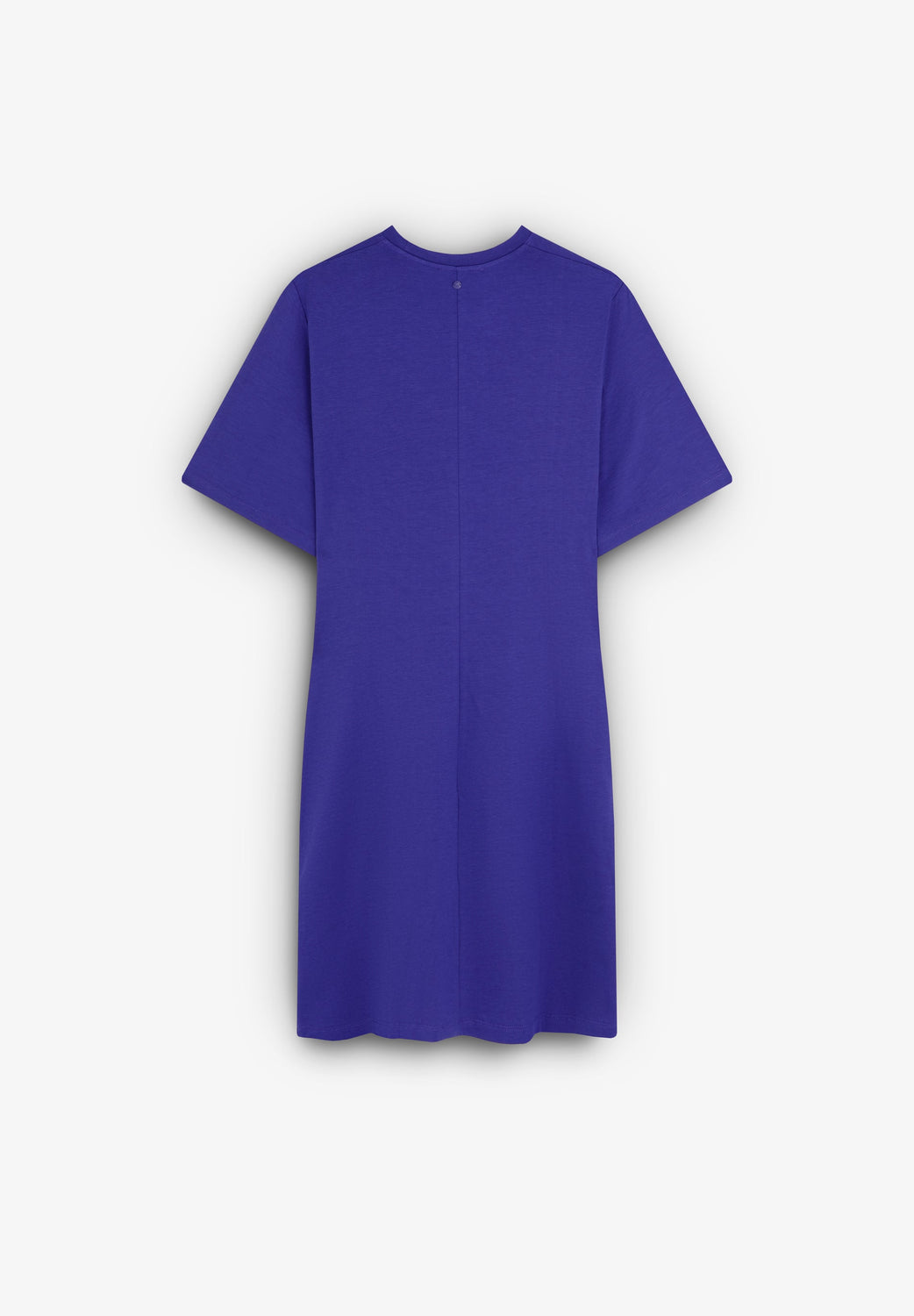 Vestido mini confeccionado en tejido fluido ligeramente elástico. Corte regular fit, cuello redondo y manga corta con detalle de nudo en cintura.