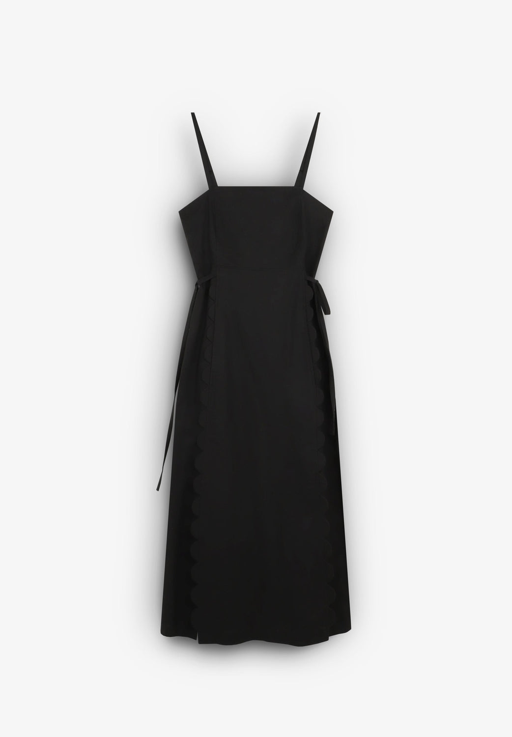 Vestido confeccionado en mezcla de Algodón Orgánico BCI y Lino. Forro interior 100% Algodón. Cierre por cremallera en espalda. Abertura lateral en bajos. Detalles de lazos en cintura.
