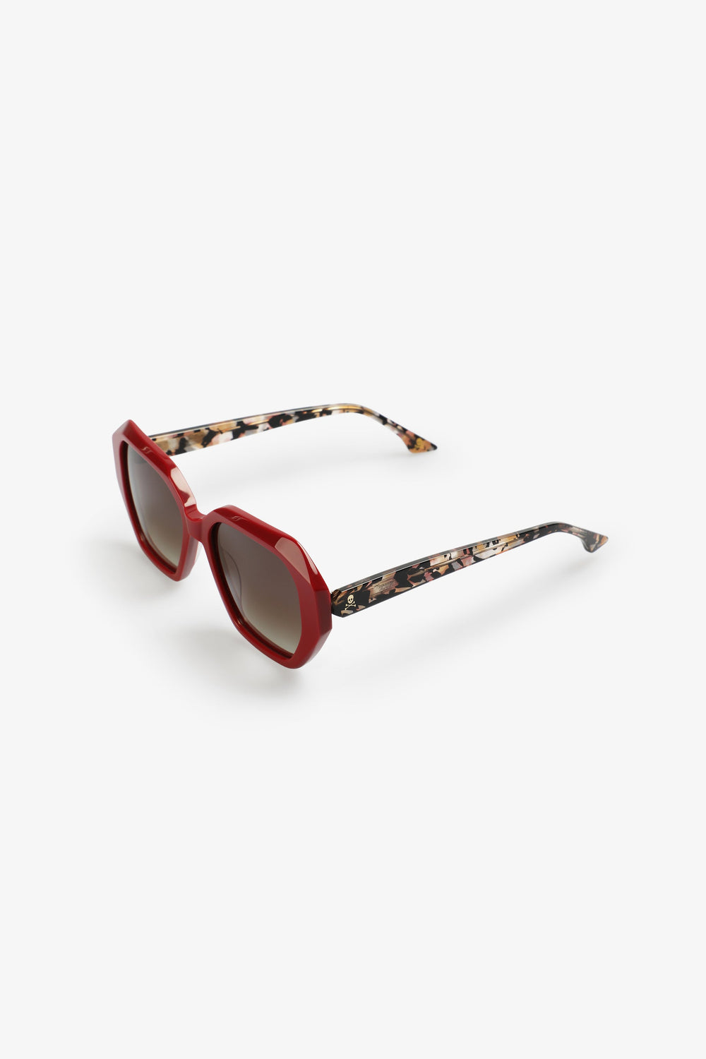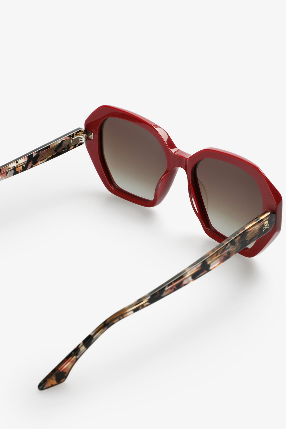 Gafas de sol confeccionadas en 100% acetato. Patillas con animal print y detalle de calavera a contraste en el lateral.