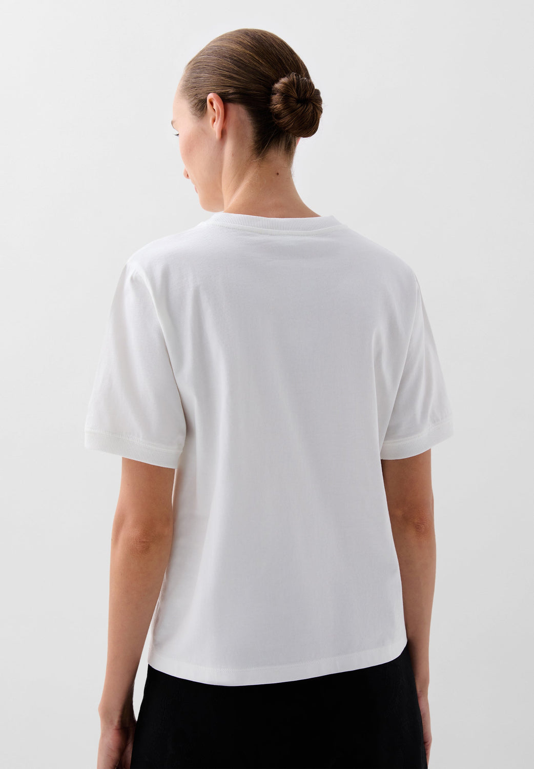 Camiseta confeccionada en algodón 100% BCI. Corte Regular Fit, cuello redondo y manga corta. Print frontal logo en pecho.