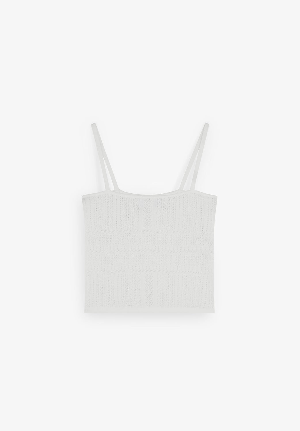 Top confeccionado en punto. Corte slim fit, tirantes finos, escote cuadrado.
