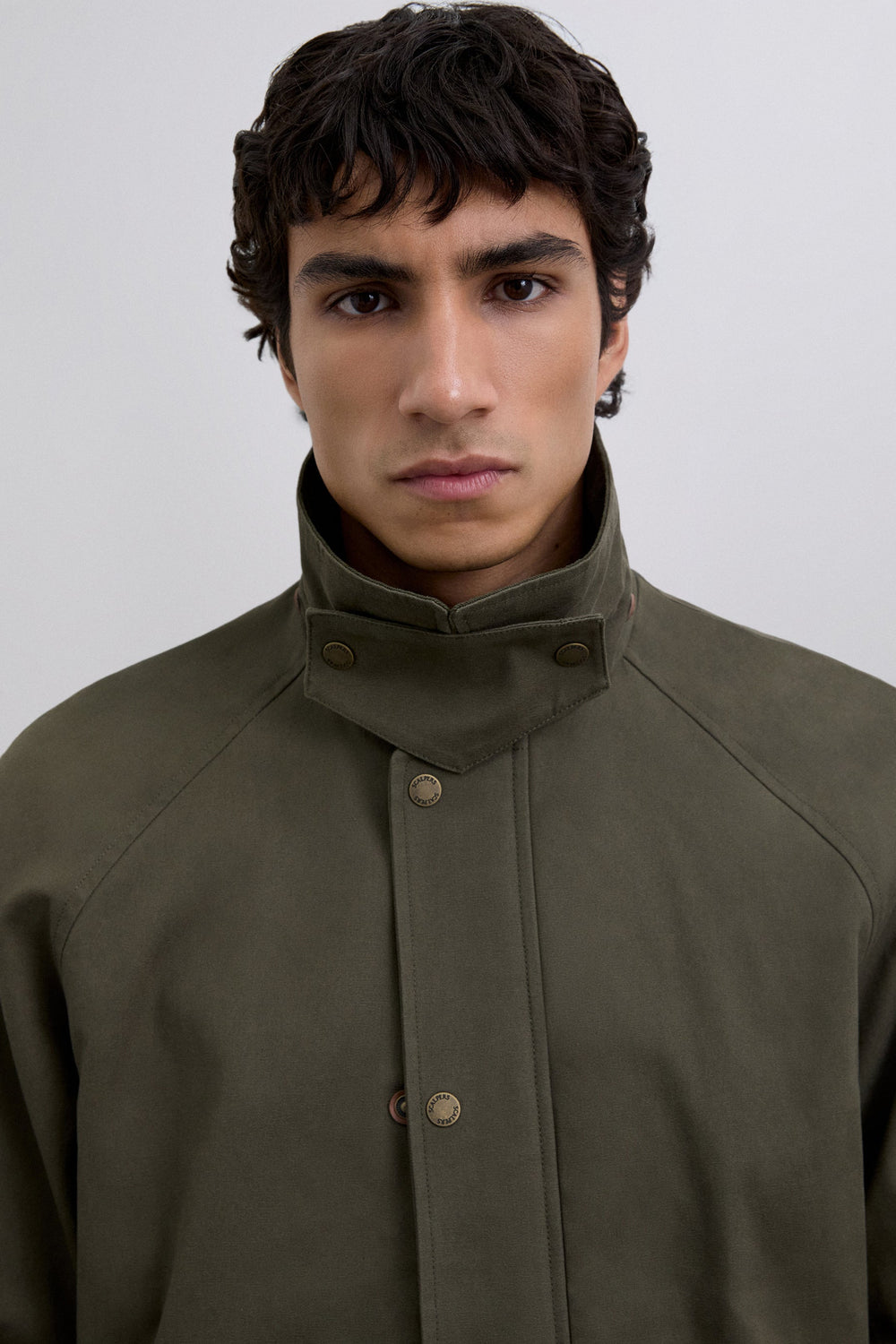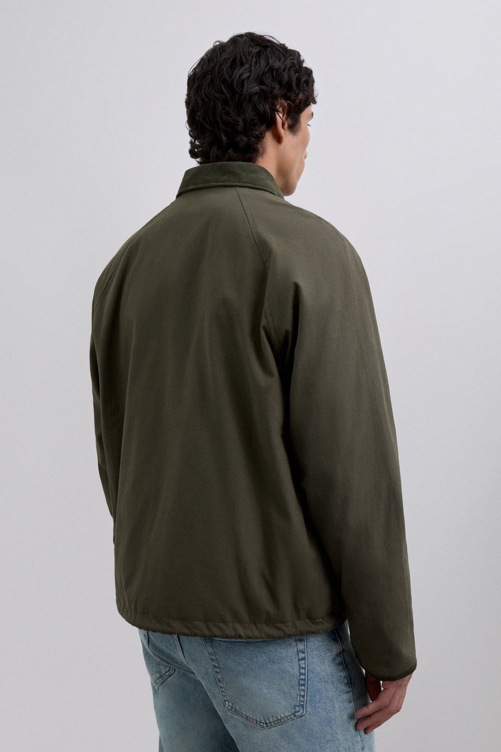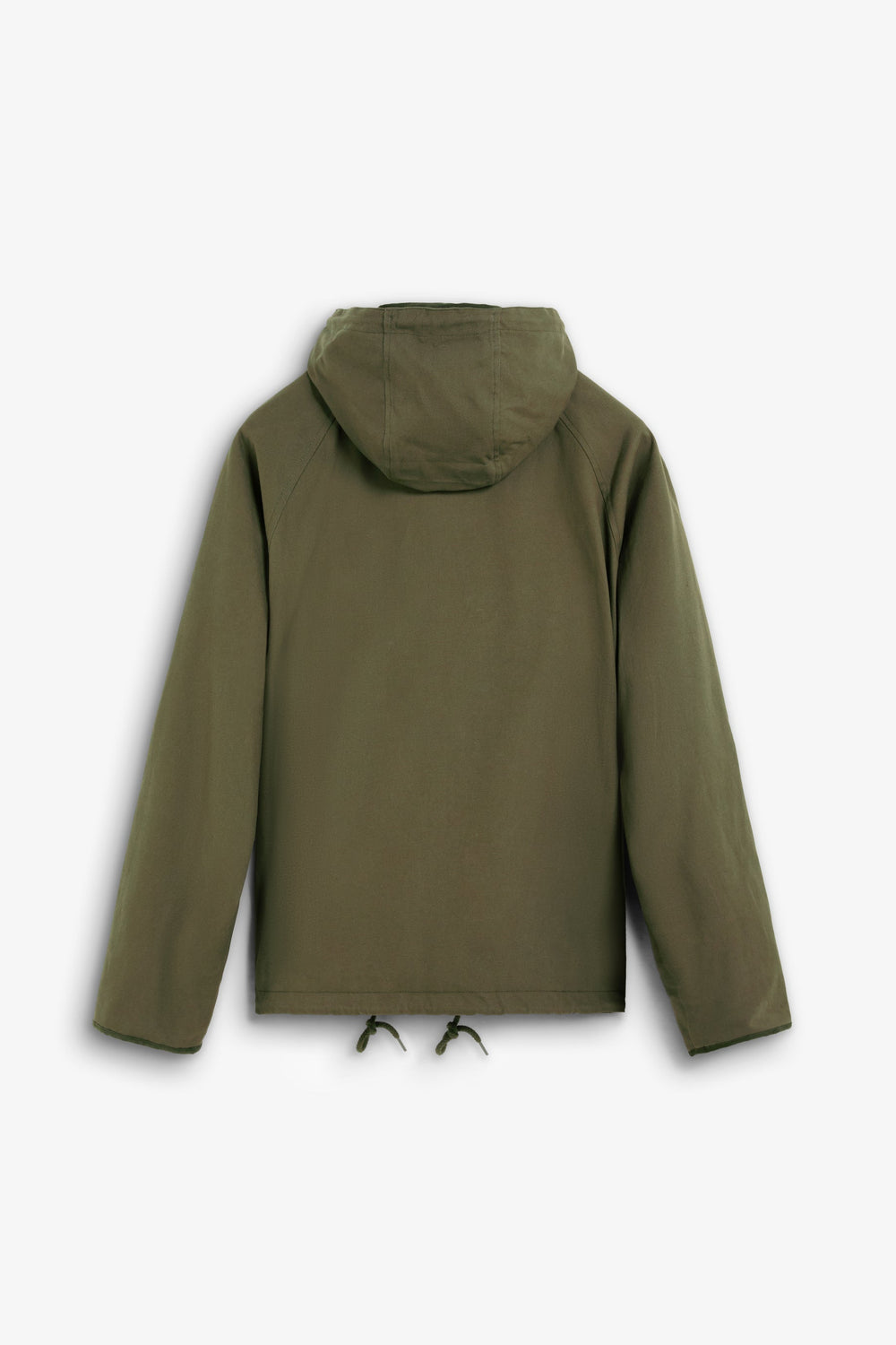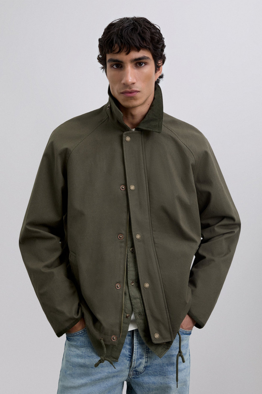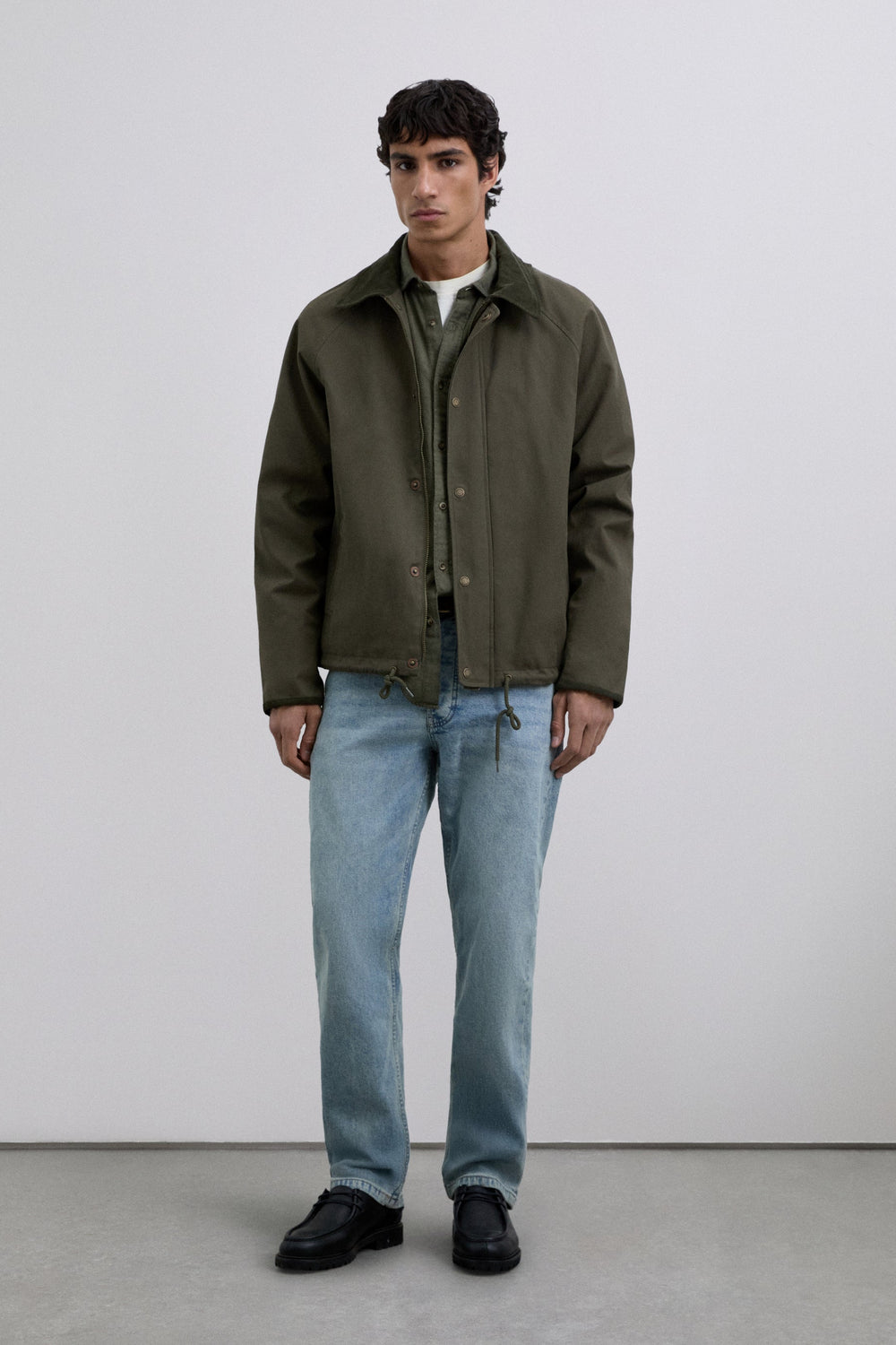 Chaqueta confeccionada en 100% Algodón BCI. Capucha ajustable y desmontable. Cierre con cremallera y botones. Puños interiores de canalé. El vivo de la manga y el cuello están confeccionados en pana. Mangas raglán. Dos bolsillos delanteros. Detalles logotipo en cremallera.