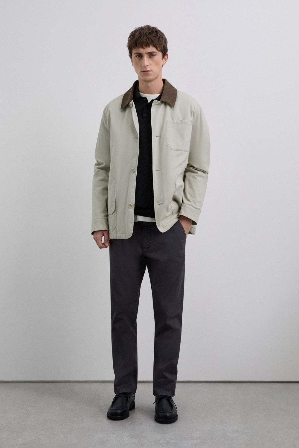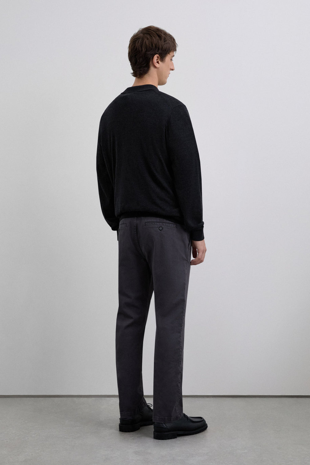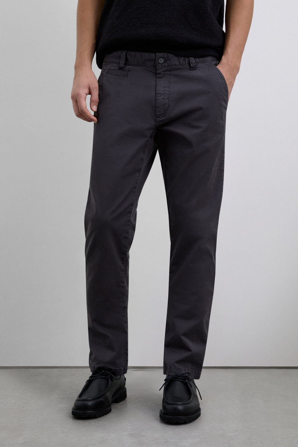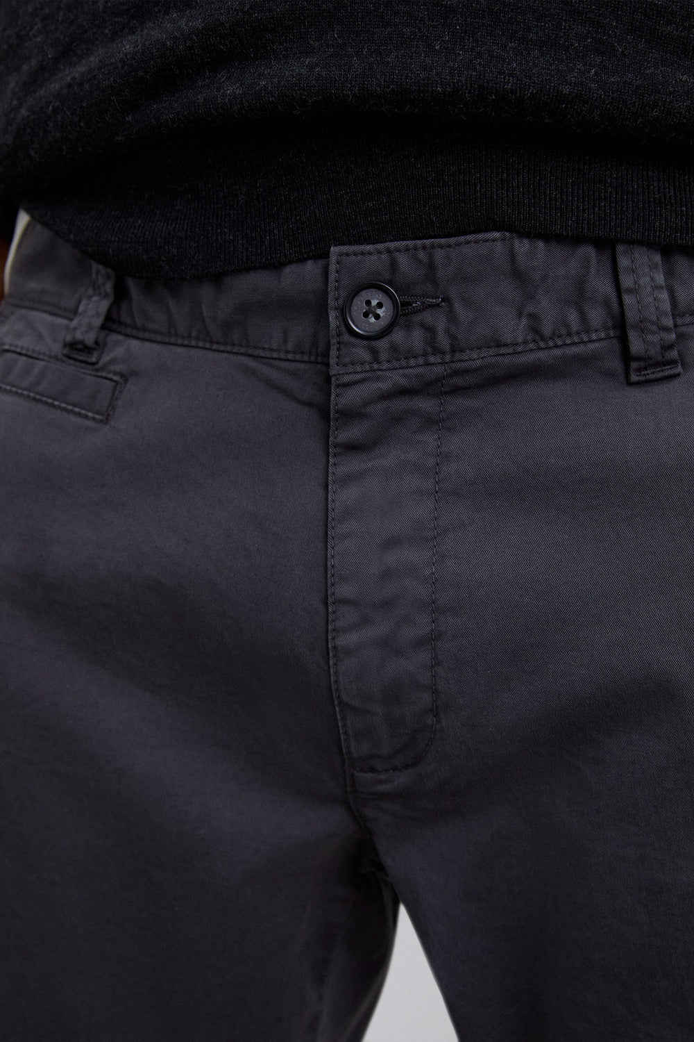 Pantalón chino casual confeccionado en mezcla de algodón ligeramente elástico. Cierre con botón y cremallera . Bolsillos laterales y traseros. Trabillas en cintura. Detalle de etiqueta interior con logo en cintura.