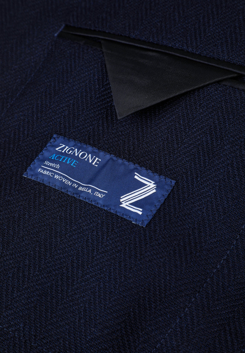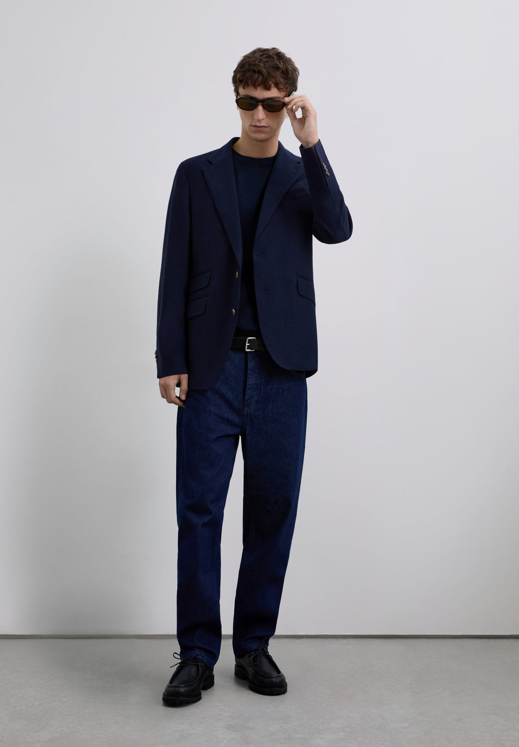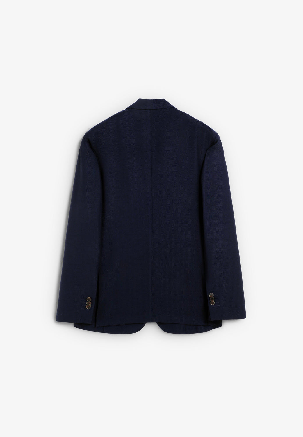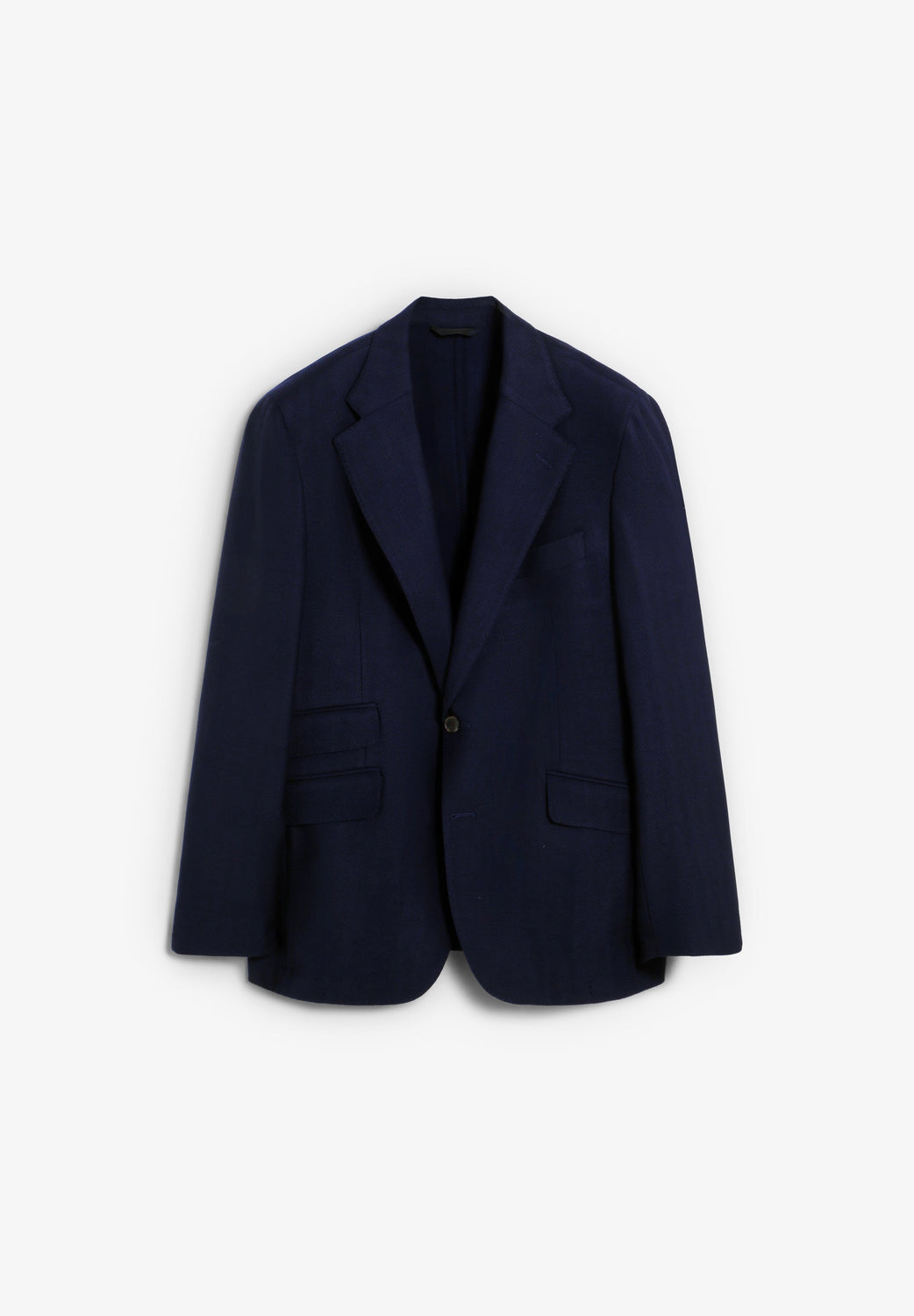 Americana confeccionada en lana. Solapa clásica. Bolsillo en pecho con ojal y tres bolsillos con solapa inclinados. Cierre frontal con dos botones. Manga larga.
