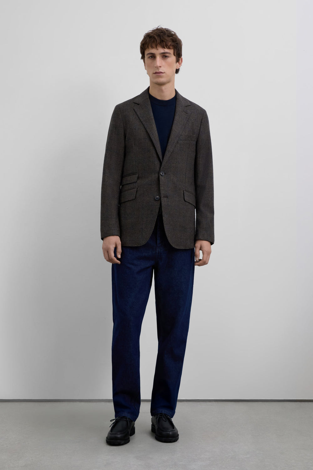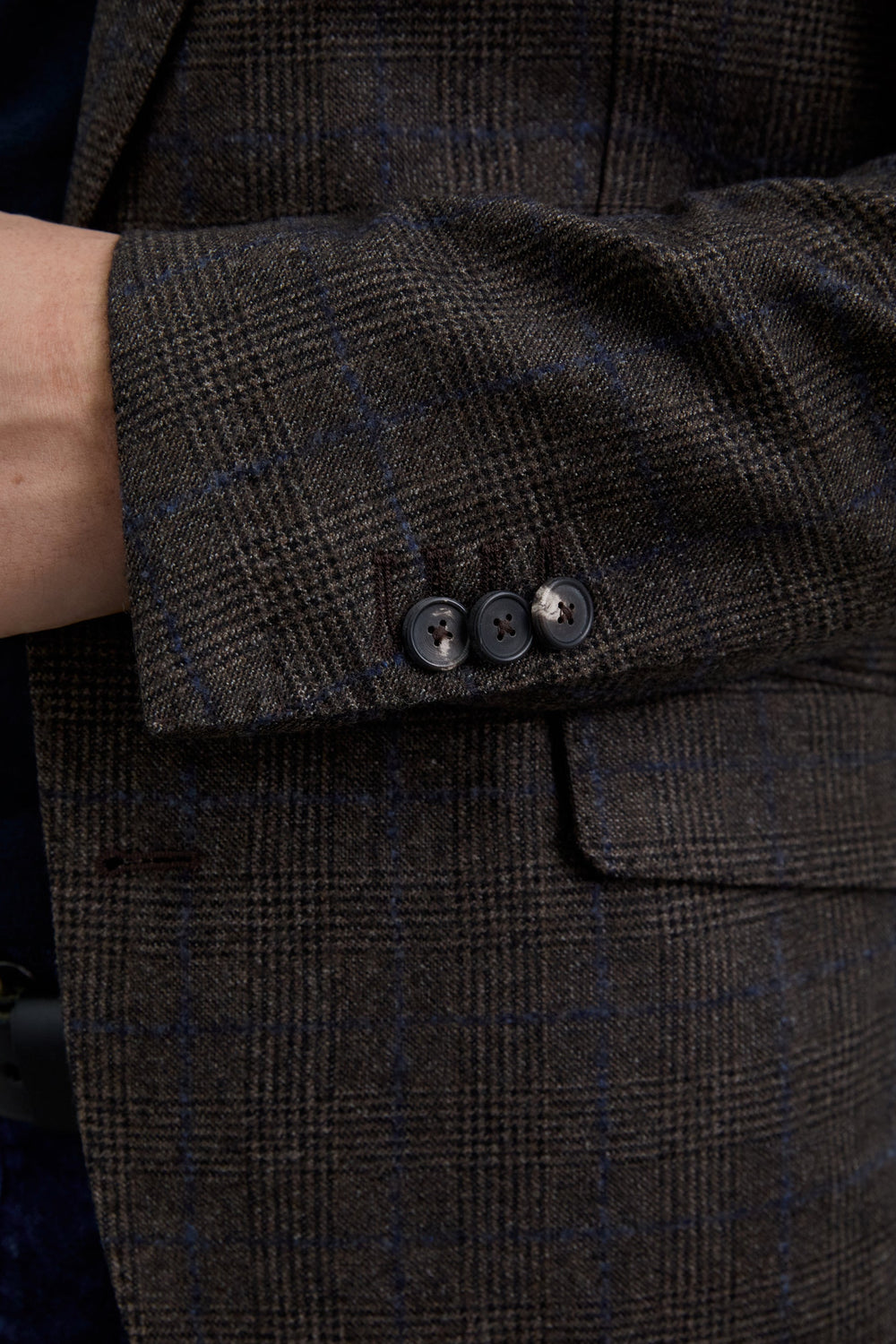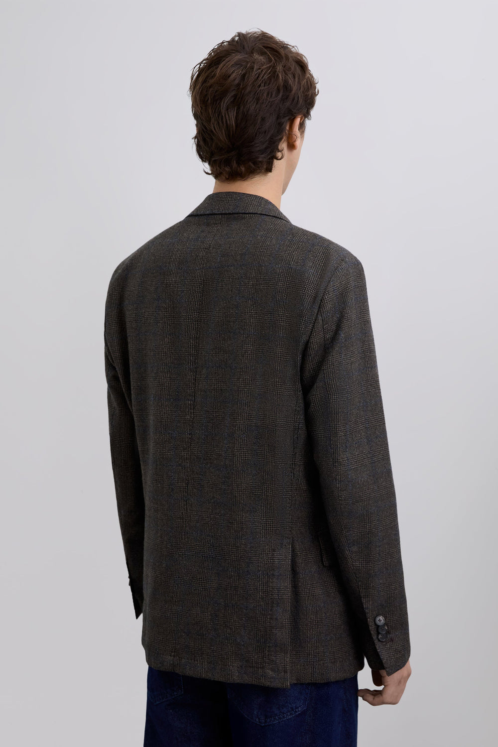 Americana confeccionada en 100% lana. Regular fit. Estampado de cuadros. Cuello con solapa de muesca. Cierre con botones. Bolsillos con solapa y cerillero. Manga larga acabada en puño con botones practicables.