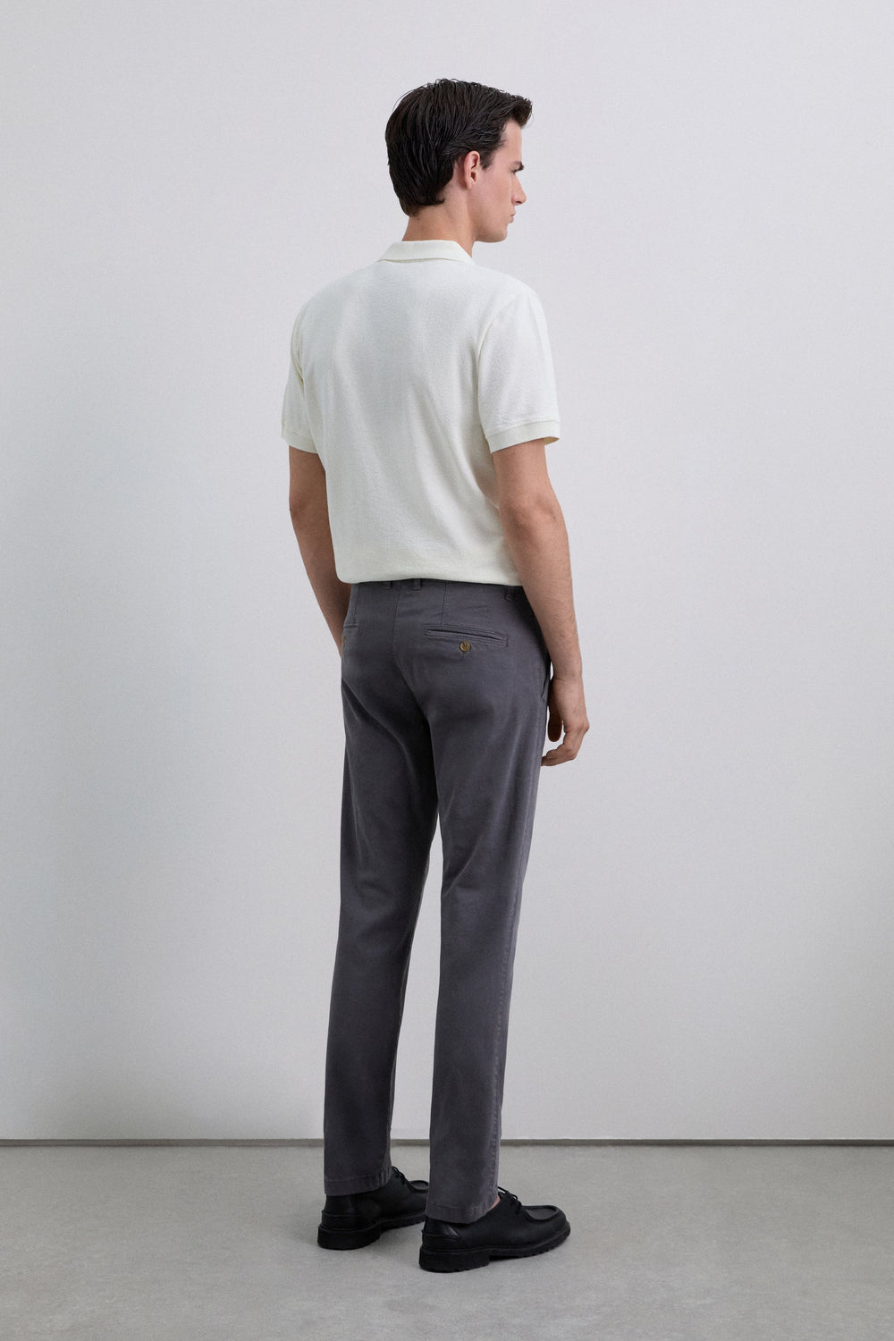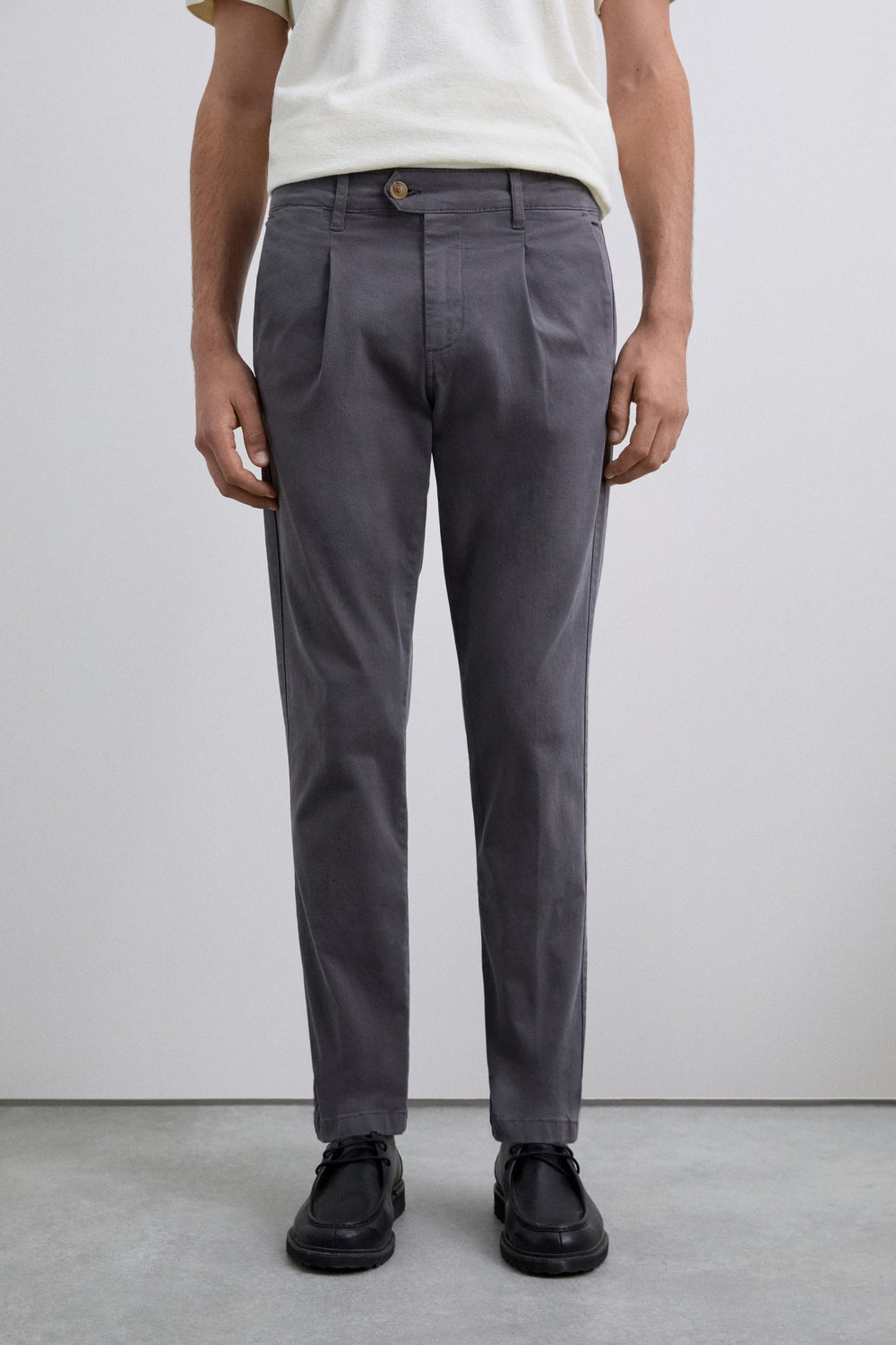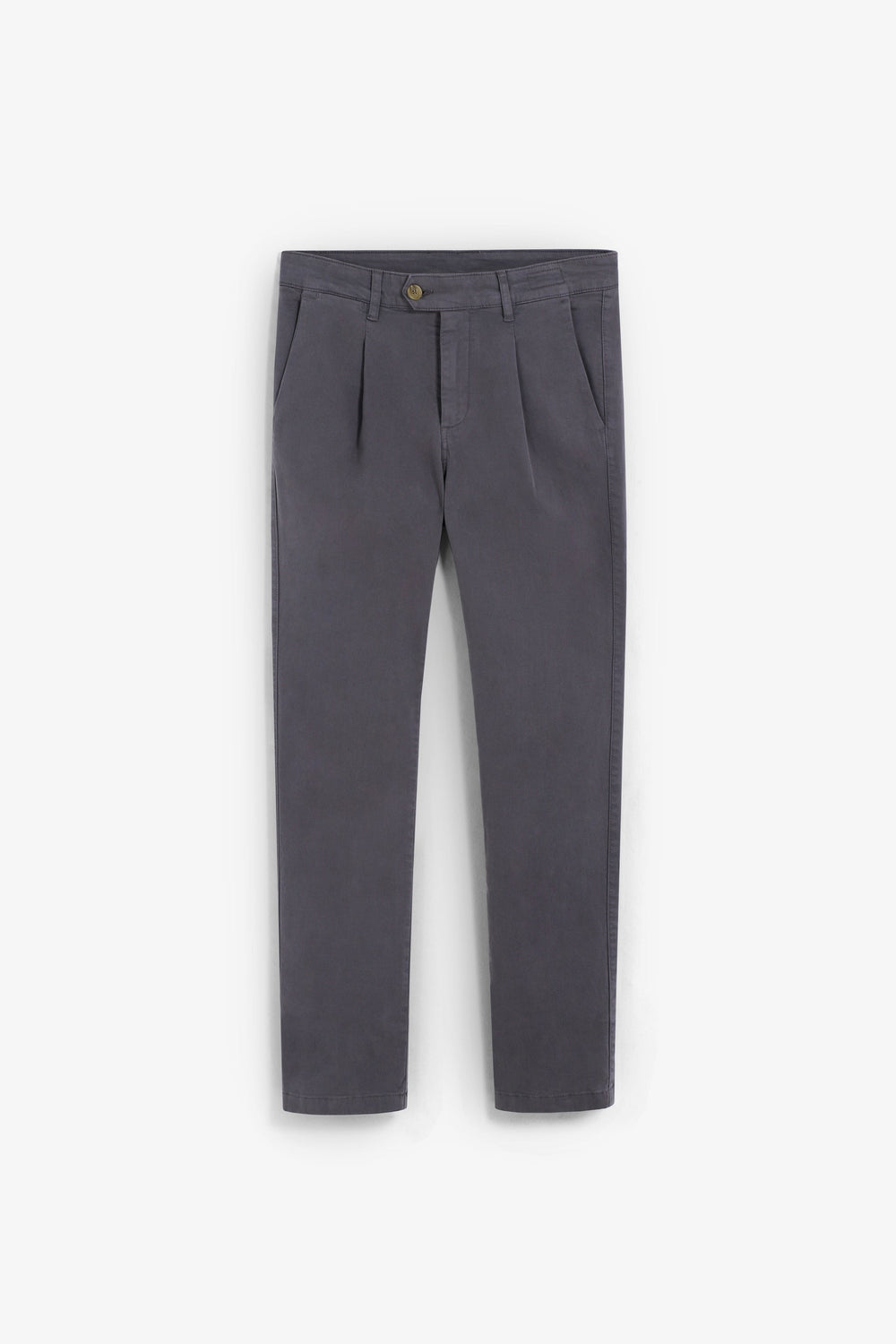 Pantalón confeccionado en algodón BCI. Con pinzas. Bolsillos en lateral. Bolsillos en parte trasera. Cierre mediante cremallera y botón frontal.