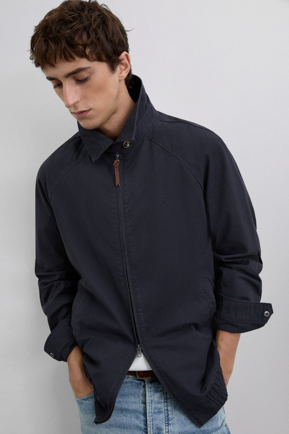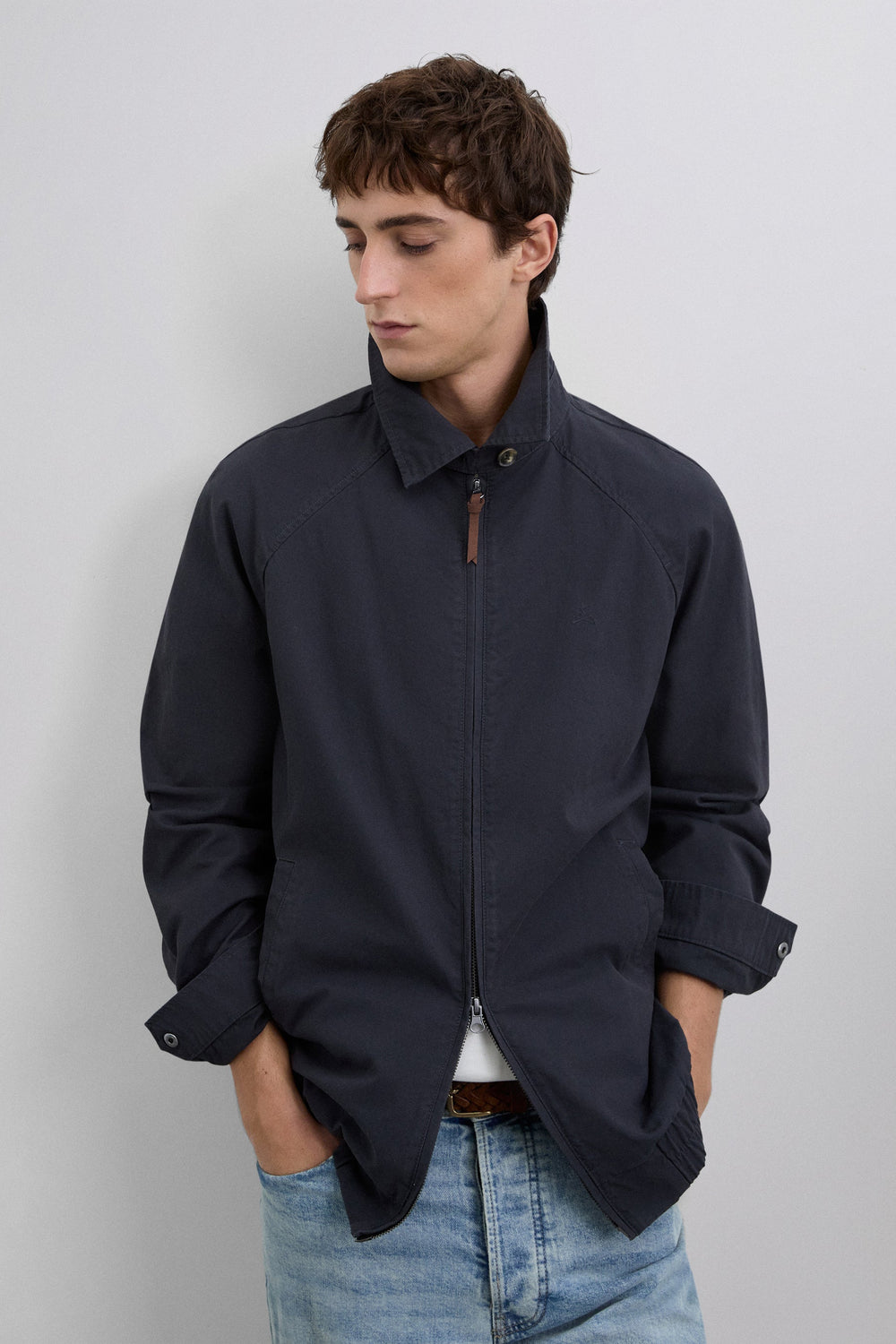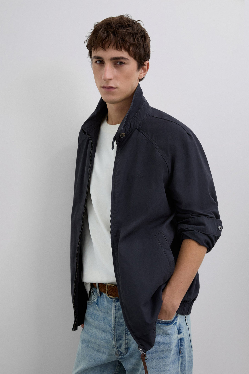 Chaqueta Bomber confeccionada en tejido 100% algodón BCI. Corte ajustado. Cremallera de dos vías. Puños, cintura y cuello acanalados. Dos bolsillos frontales. Forro 100% algodón BCI. Logo bordado.