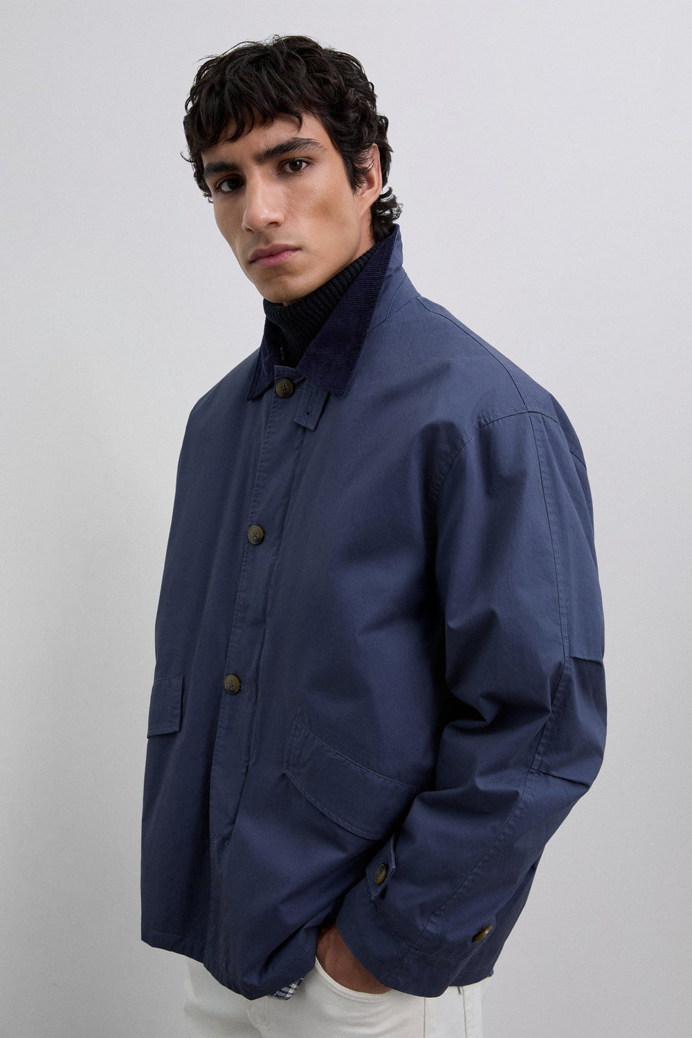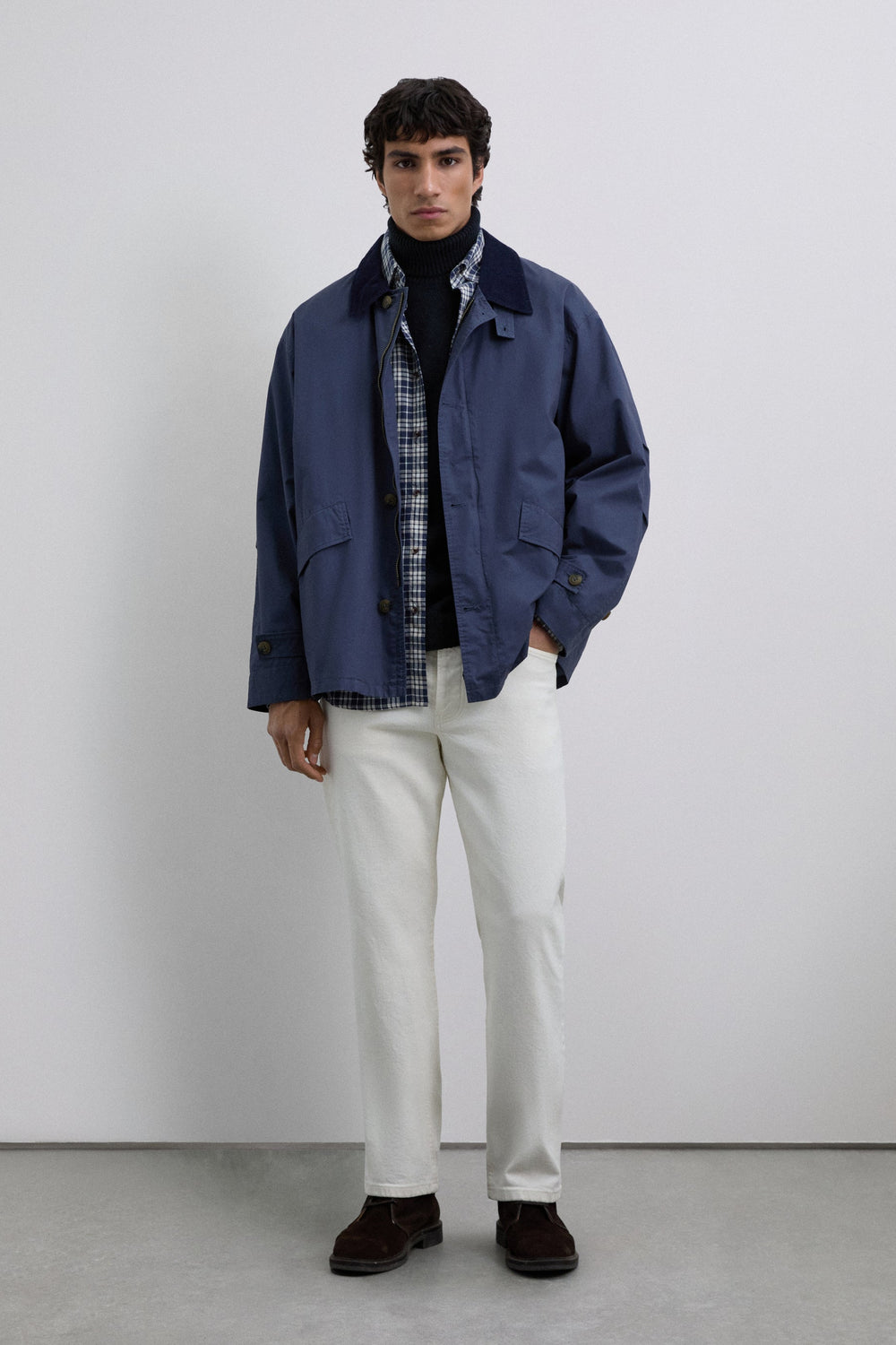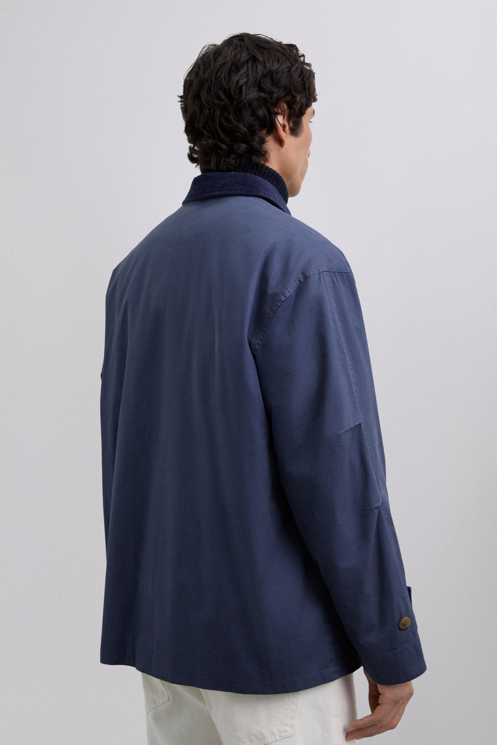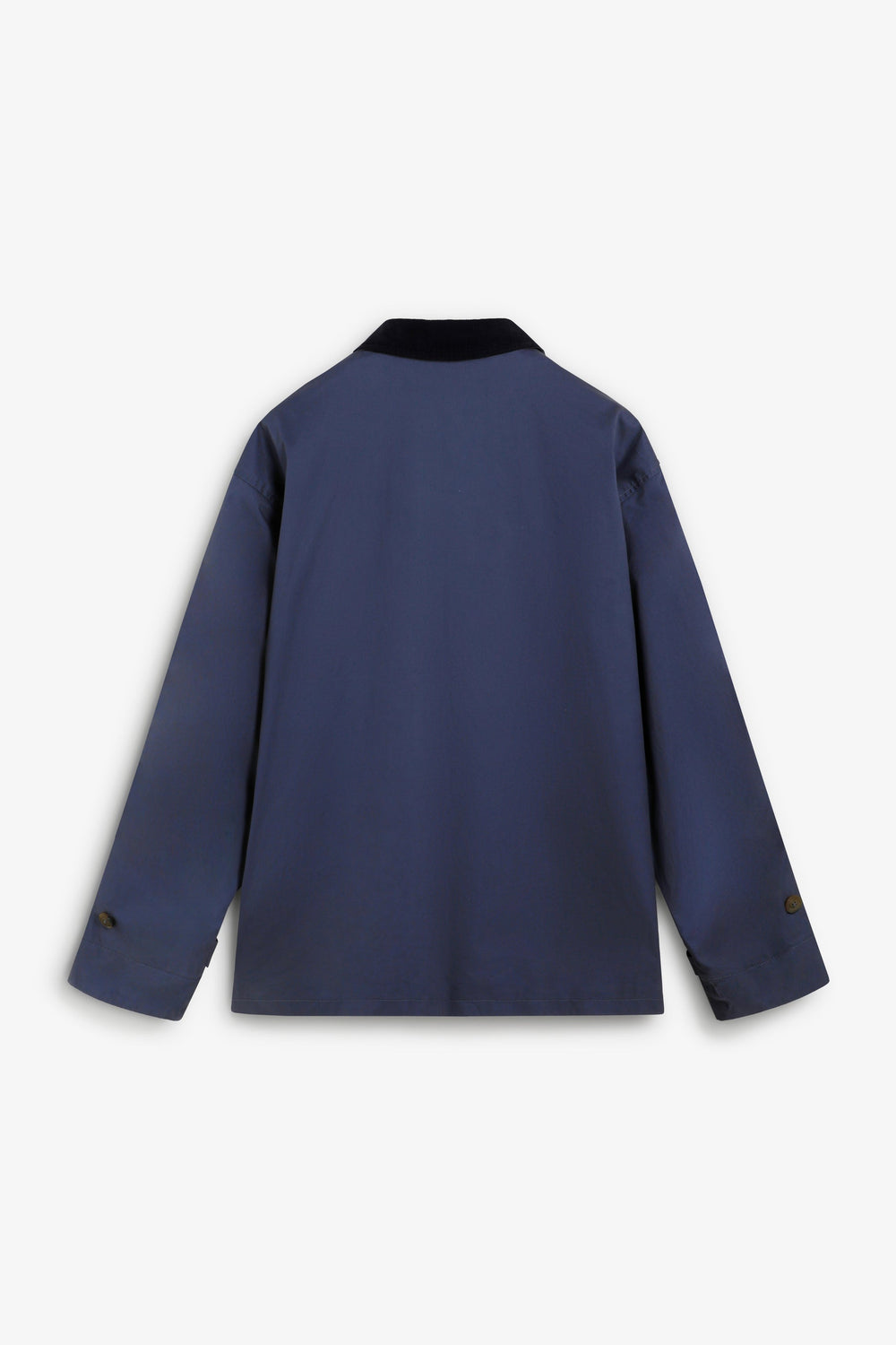 Chaqueta confeccionada en 100% algodón BCI. Cierre frontal de cremallera y botón, ambos personalizados. Cuello de camisa de pana con lengüeta abotonada. Manga larga. Detalles de pana en las aberturas de las mangas. Bolsillos delanteros inclinados. Corte más amplio. Lengüeta ajustable en la manga con doble botón.