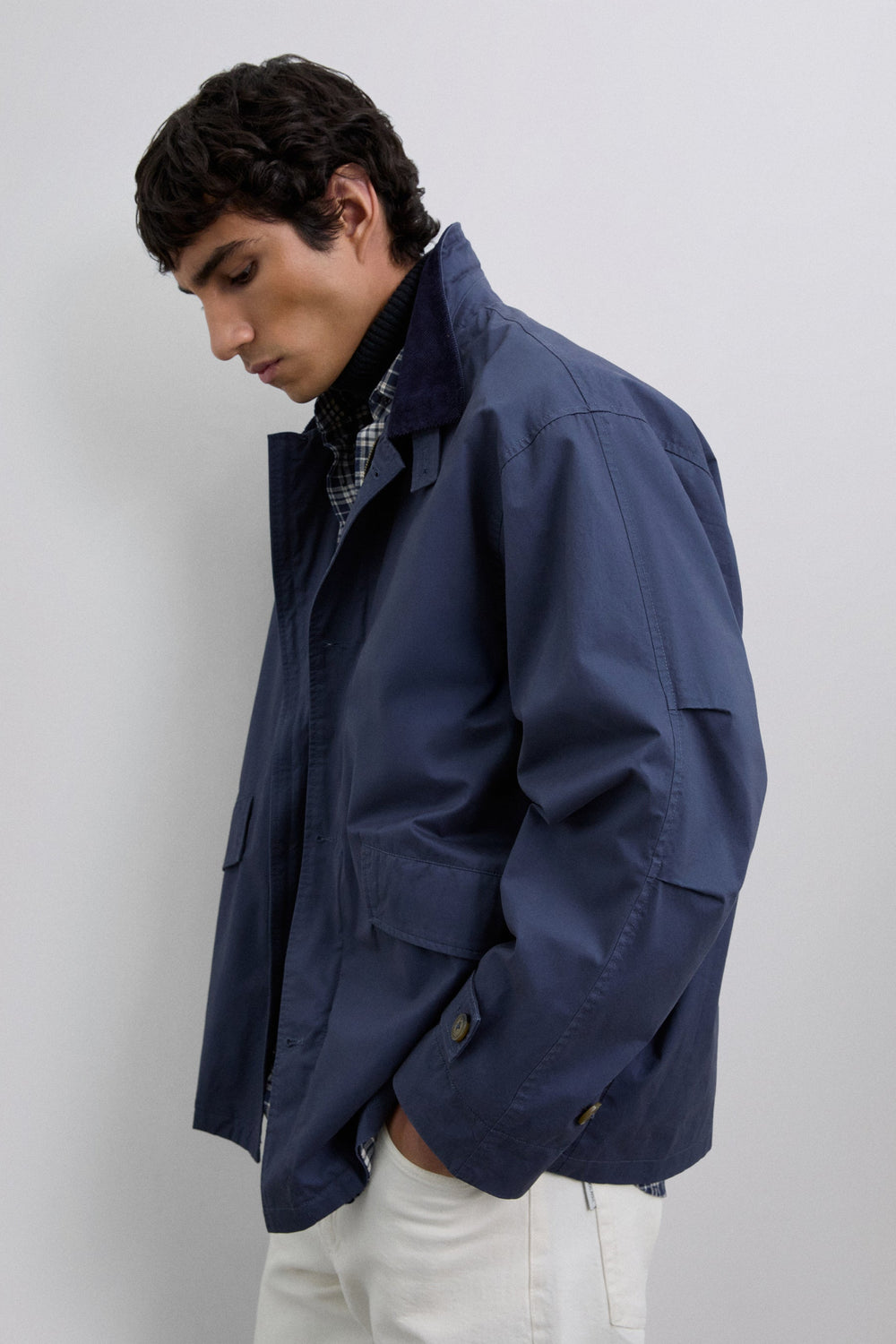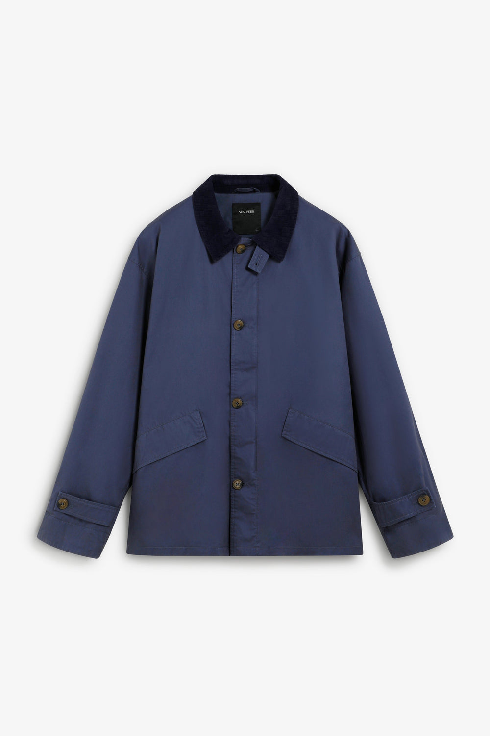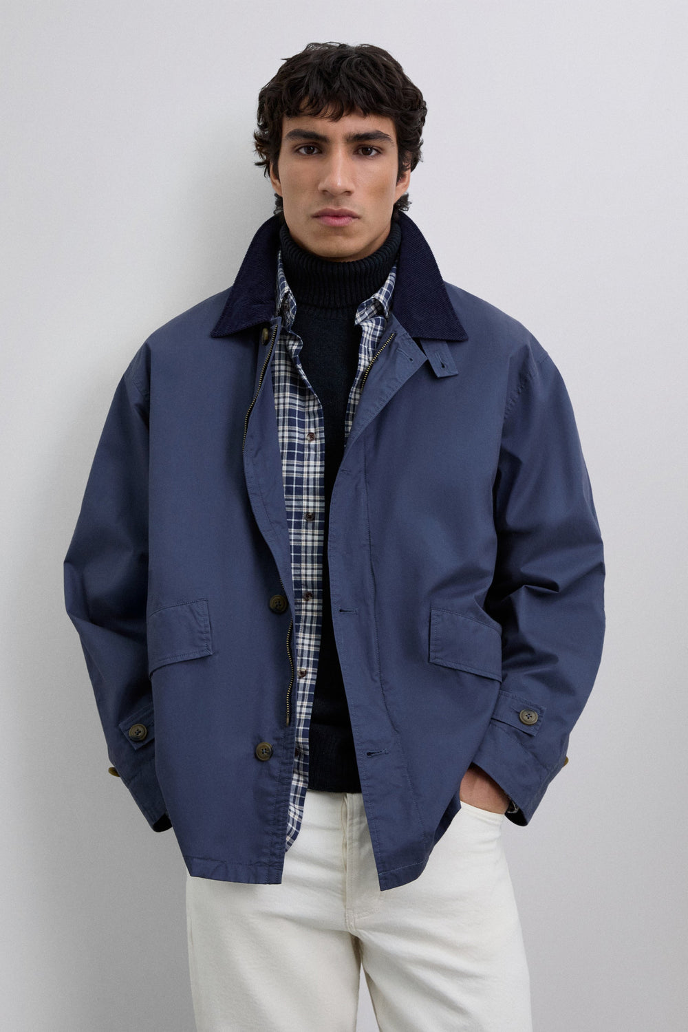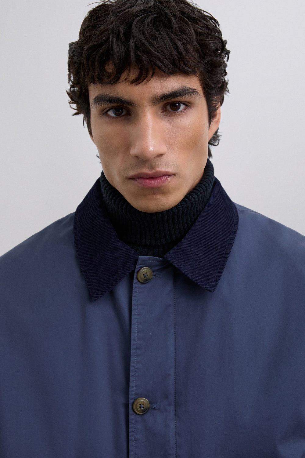 Chaqueta confeccionada en 100% algodón BCI. Cierre frontal de cremallera y botón, ambos personalizados. Cuello de camisa de pana con lengüeta abotonada. Manga larga. Detalles de pana en las aberturas de las mangas. Bolsillos delanteros inclinados. Corte más amplio. Lengüeta ajustable en la manga con doble botón.