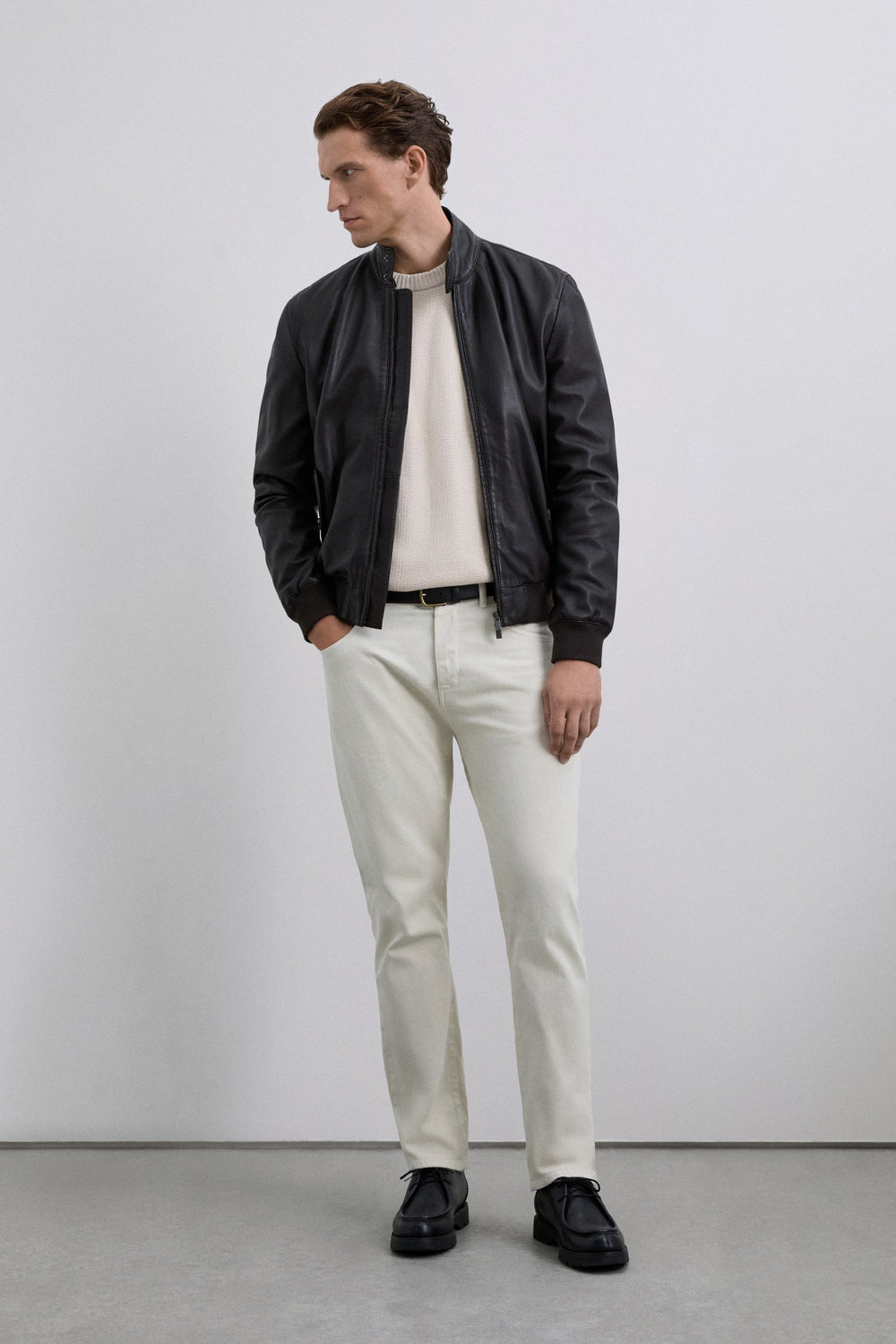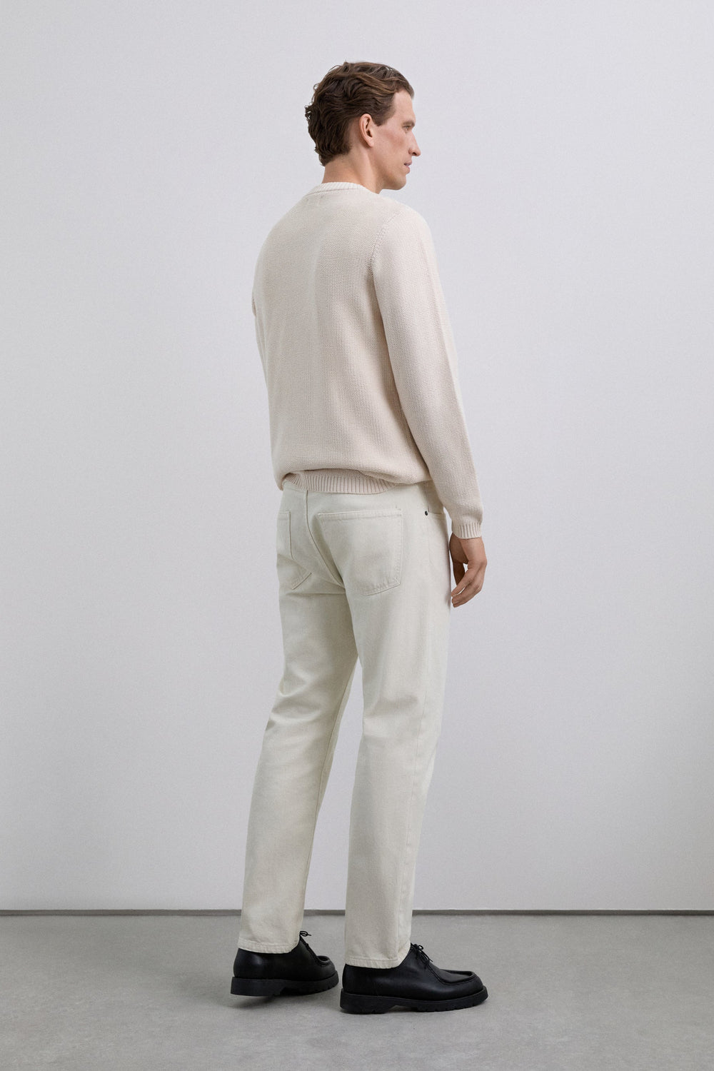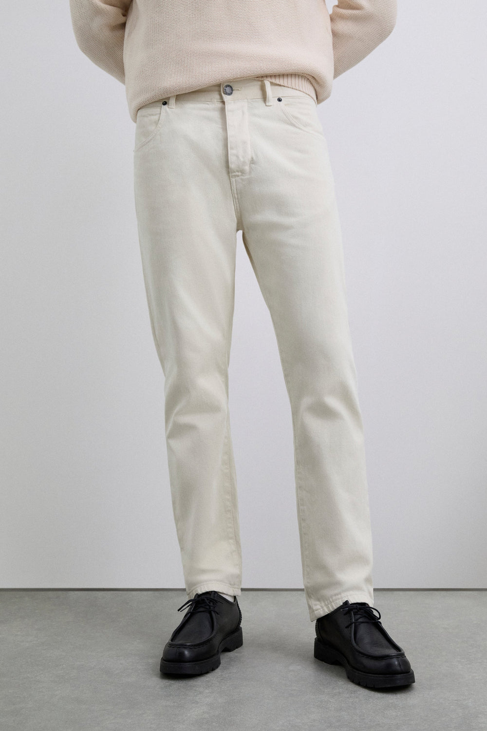 Pantalón recto confeccionado en 100% algodón. Bolsillos frontales y traseros. Cierre mediante botón y cremallera. Trabillas en cintura. Detalles de etiquetas con logo en cintura y bolsillo.