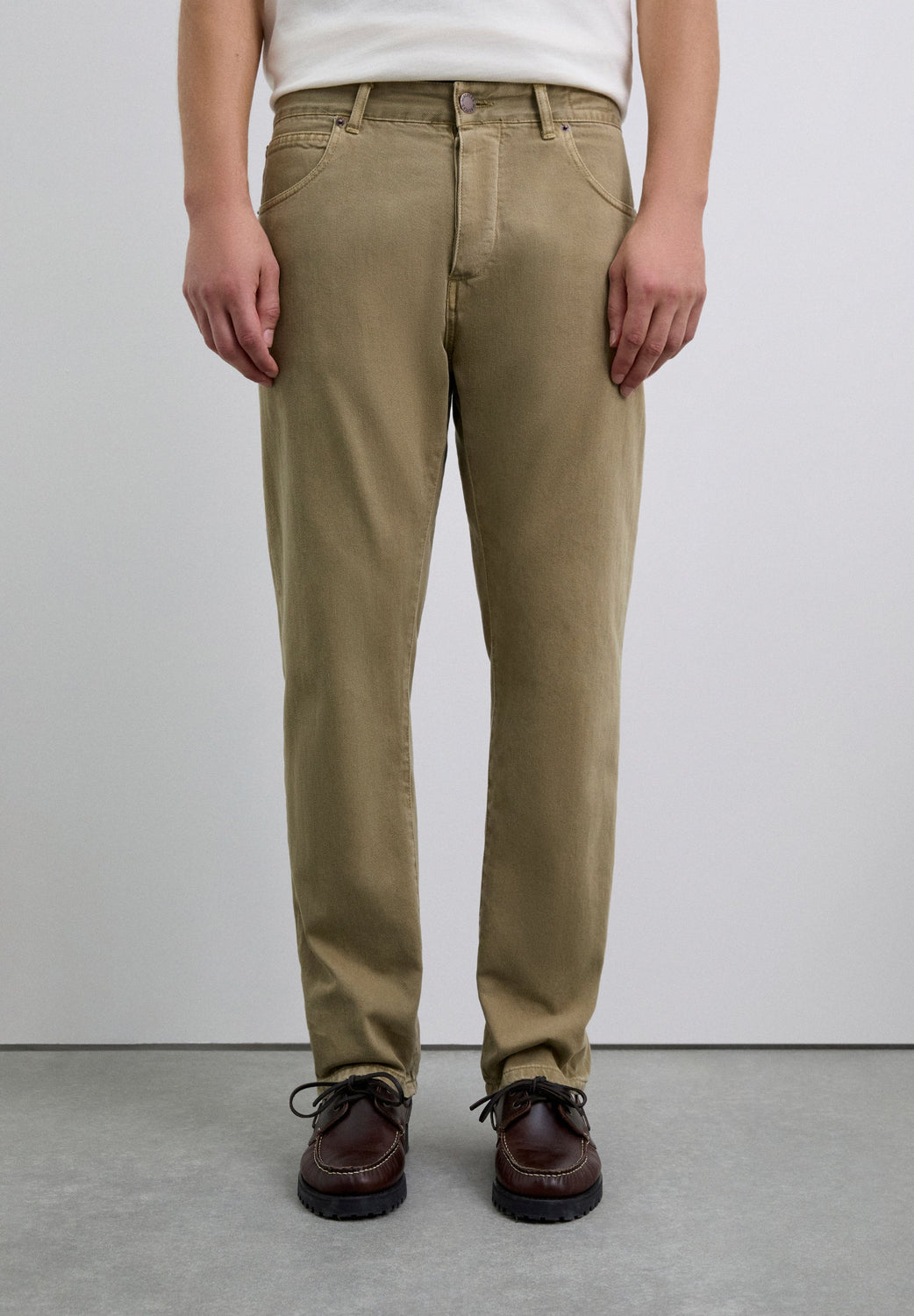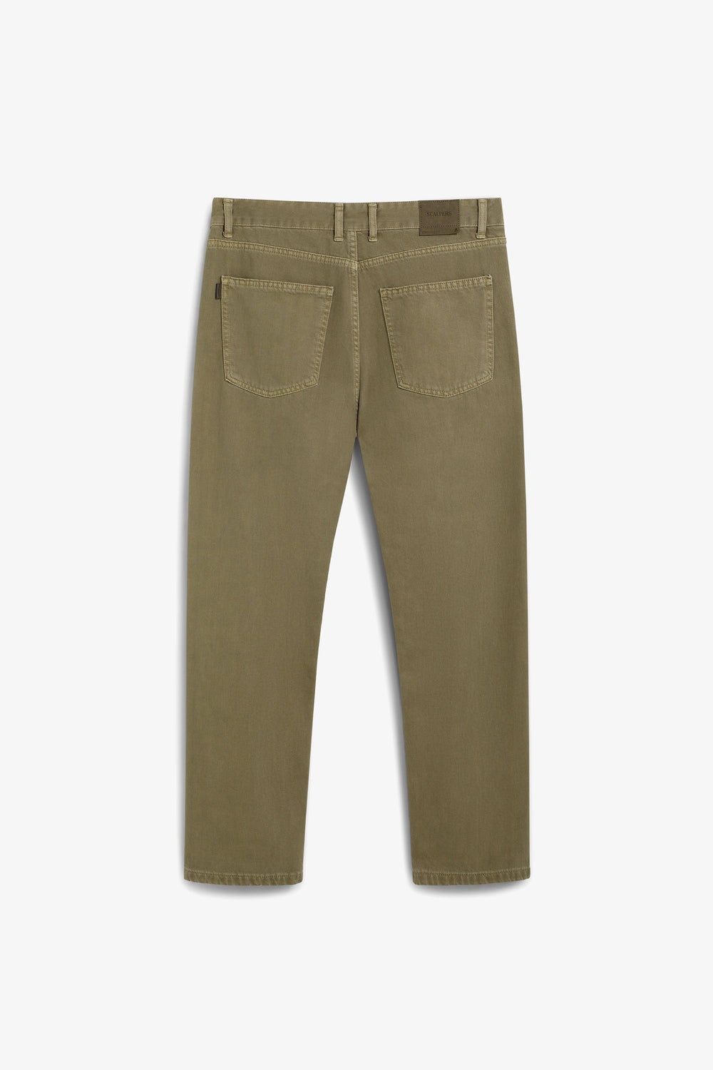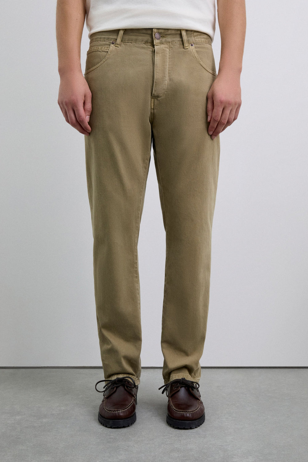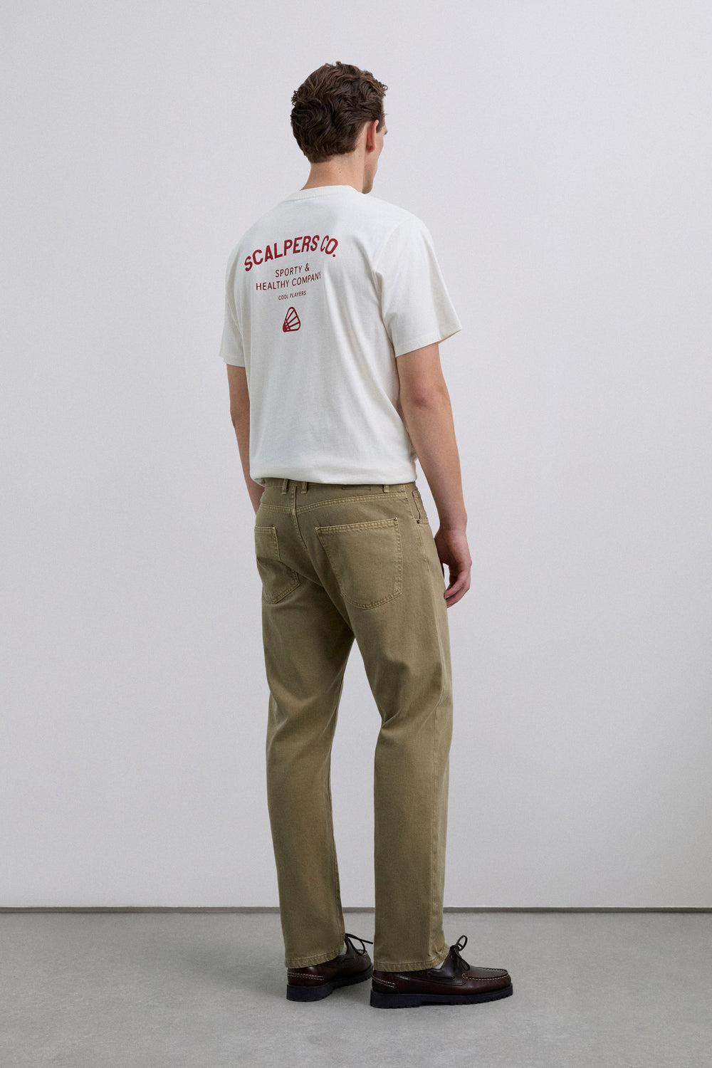 Pantalón recto confeccionado en 100% algodón. Bolsillos frontales y traseros. Cierre mediante botón y cremallera. Trabillas en cintura. Detalles de etiquetas con logo en cintura y bolsillo.