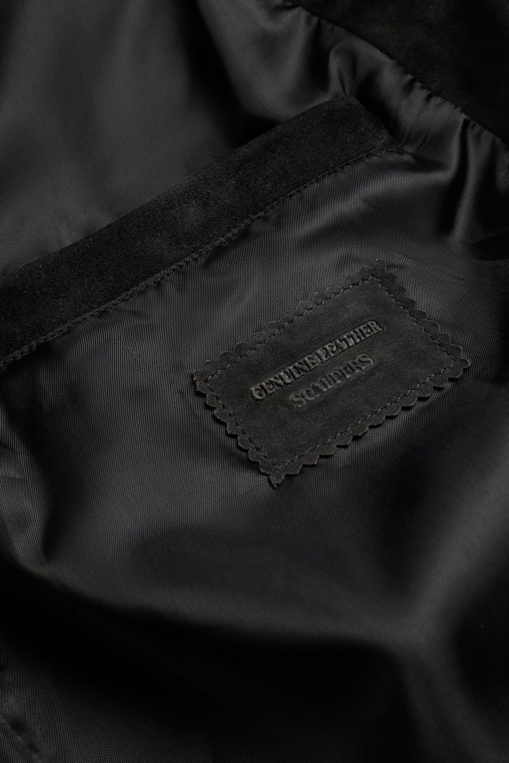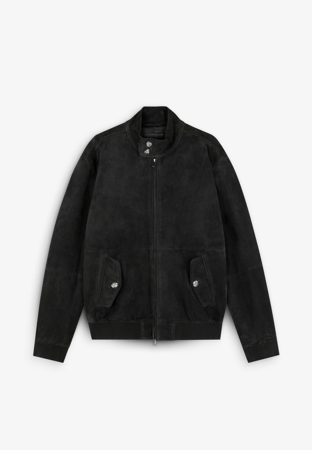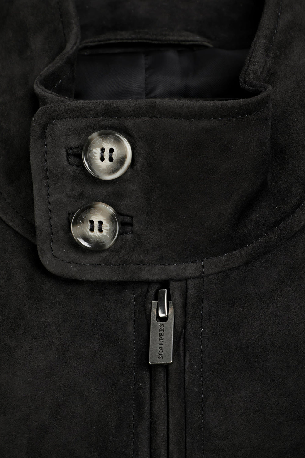 Chaqueta 100% piel de cabra. Corte ajustado. Cremallera de dos vías. Puños, cintura y cuello acanalados. Dos bolsillos frontales con cierre de botón. Cuello de cierre dos botones.