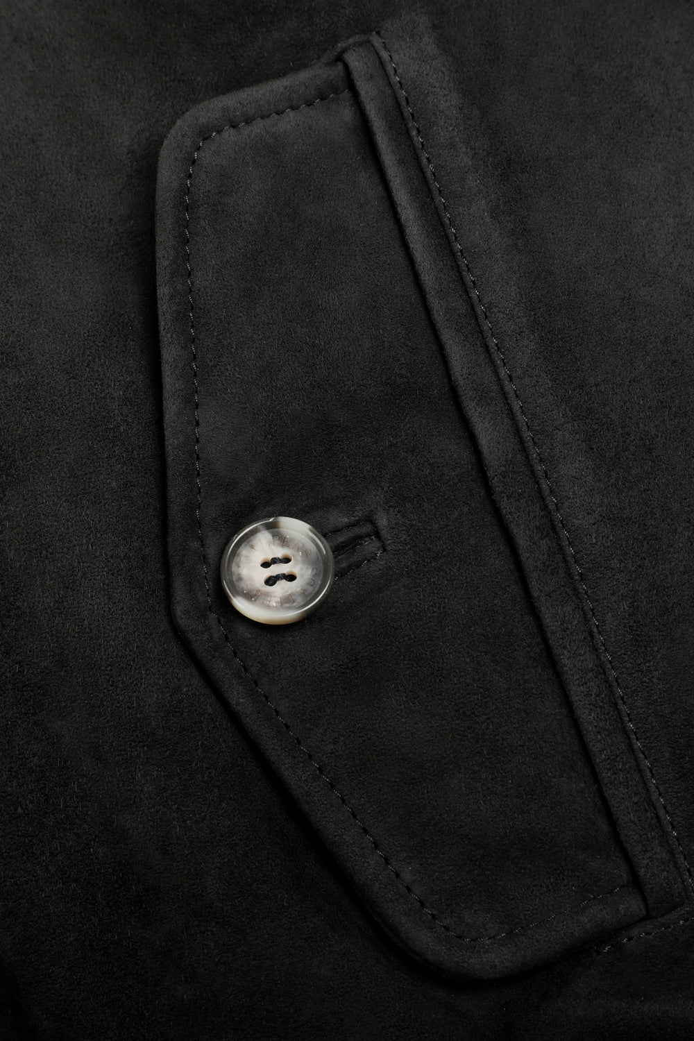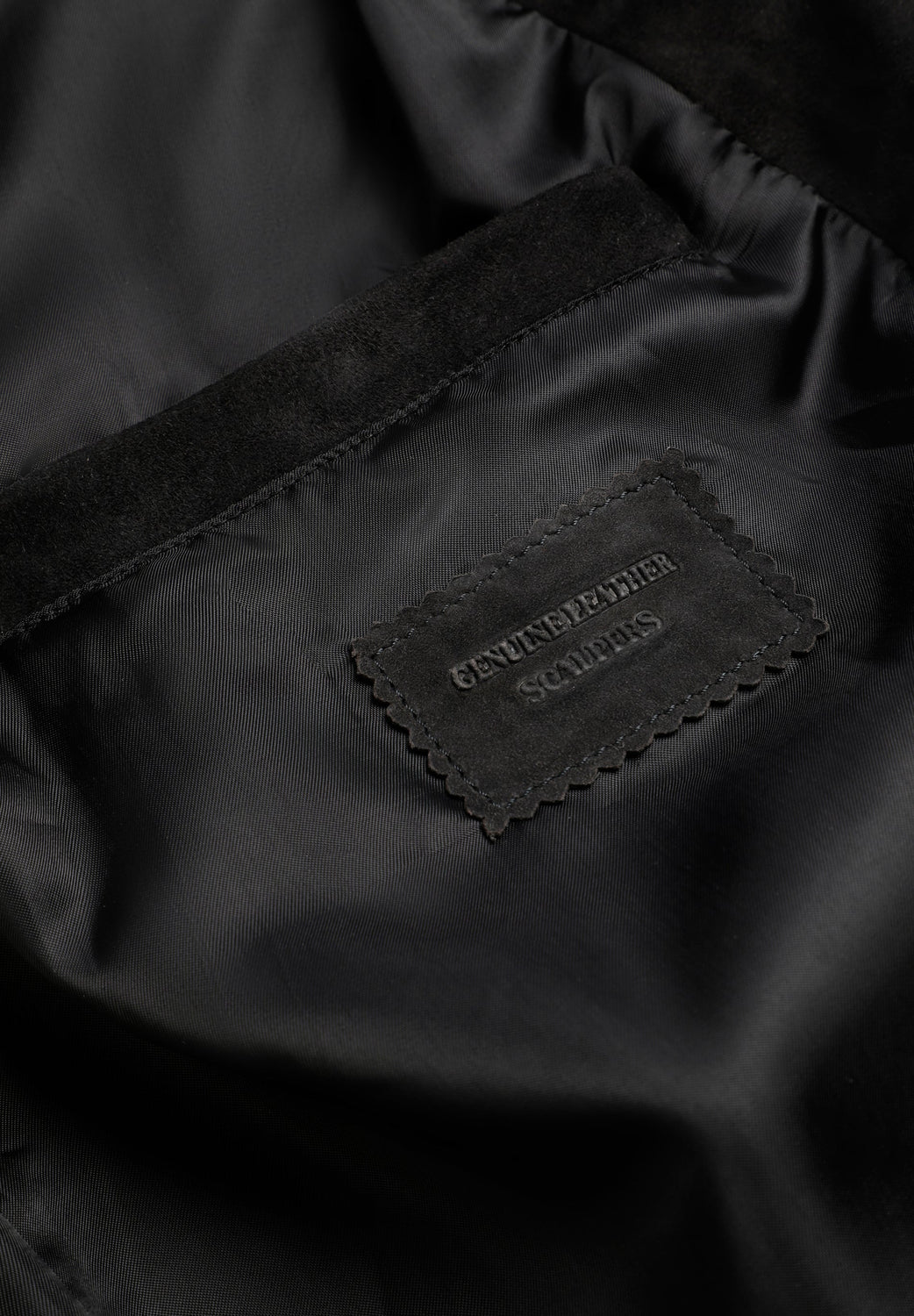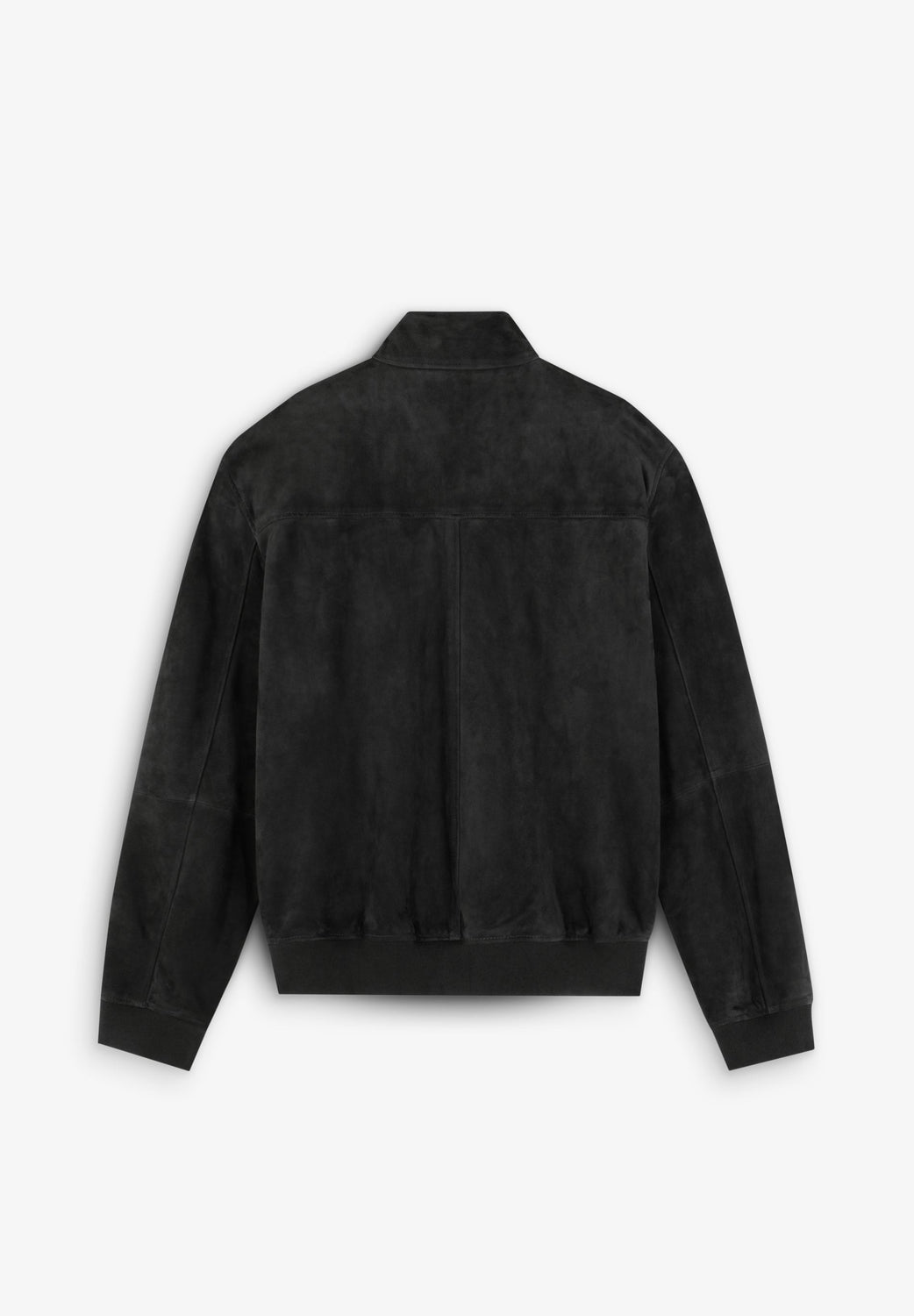 Chaqueta 100% piel de cabra. Corte ajustado. Cremallera de dos vías. Puños, cintura y cuello acanalados. Dos bolsillos frontales con cierre de botón. Cuello de cierre dos botones.