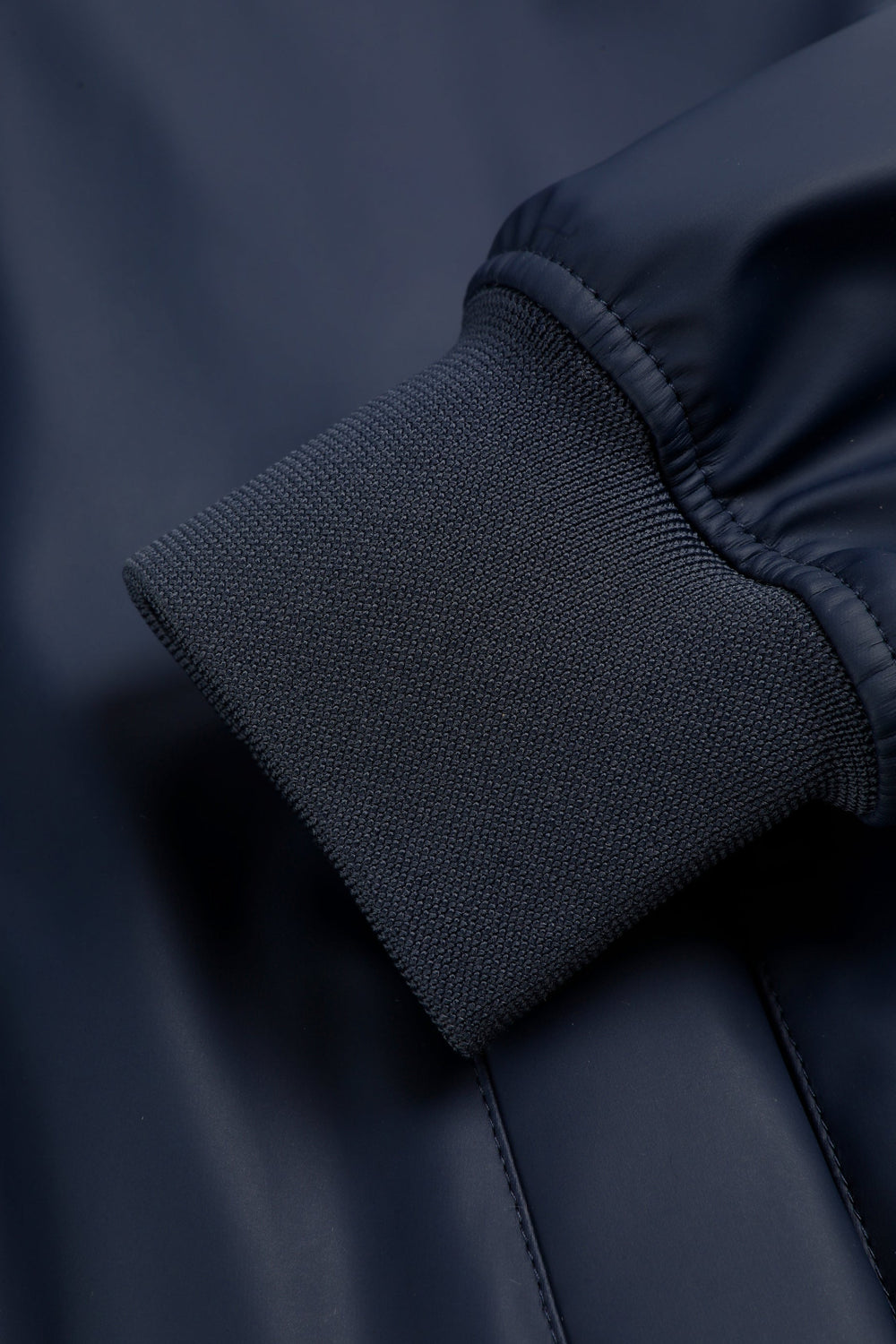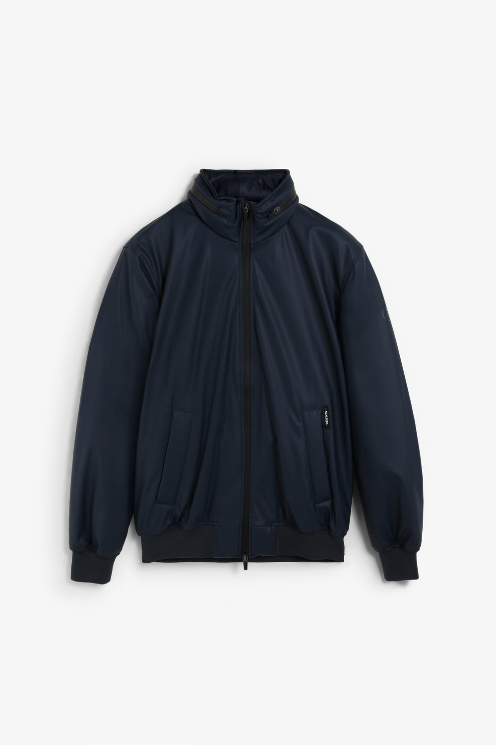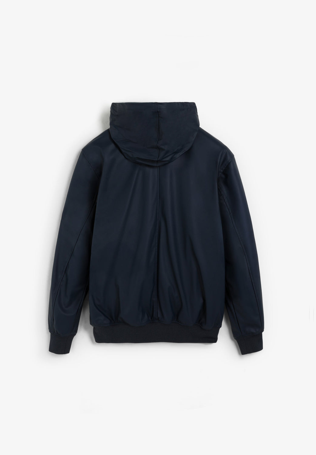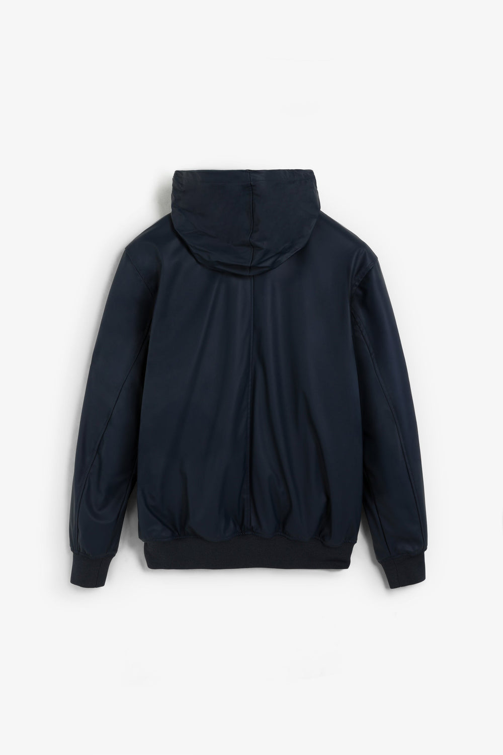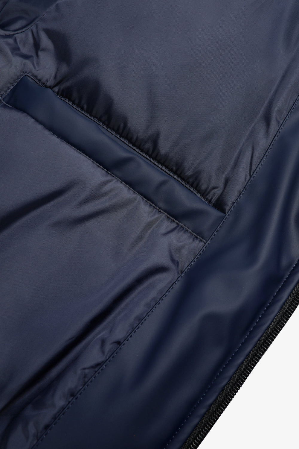 Chaqueta impermeable y cortaviento con capucha oculta. Cierre frontal con cremallera termosellada. Puños y bajo acanalados. Dos bolsillos delanteros. Relleno con acolchado de 60 gramos. La capucha oculta en el cuello soporta 5.000 mm de presión de agua. Logo engomado en el bolsillo.