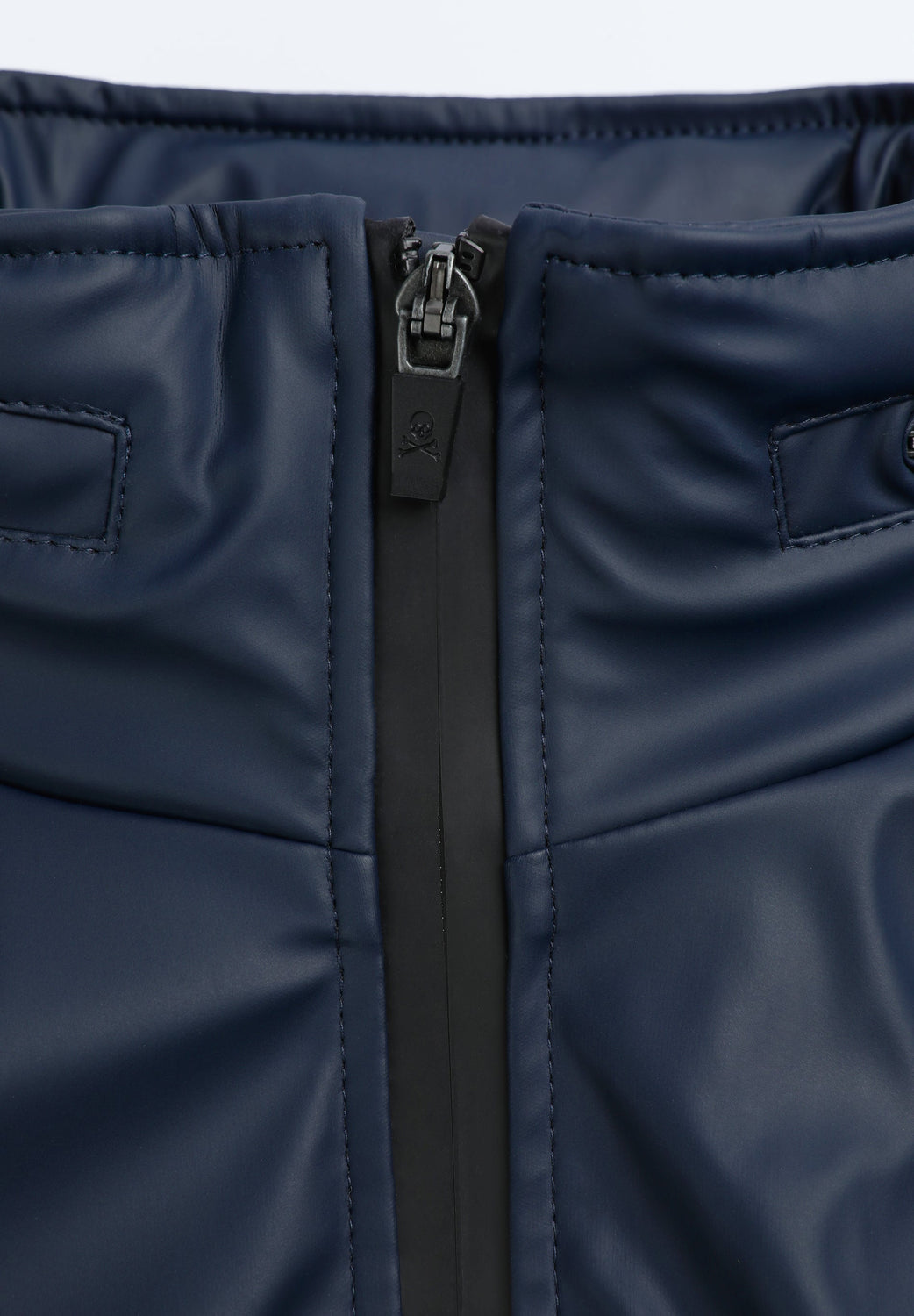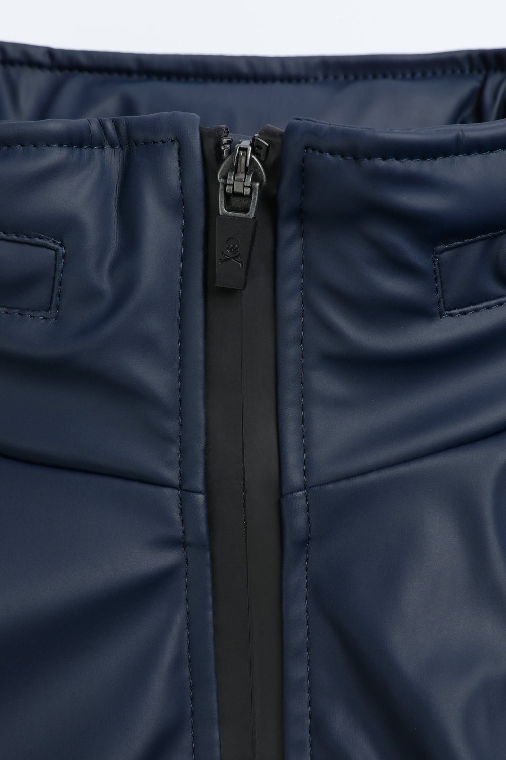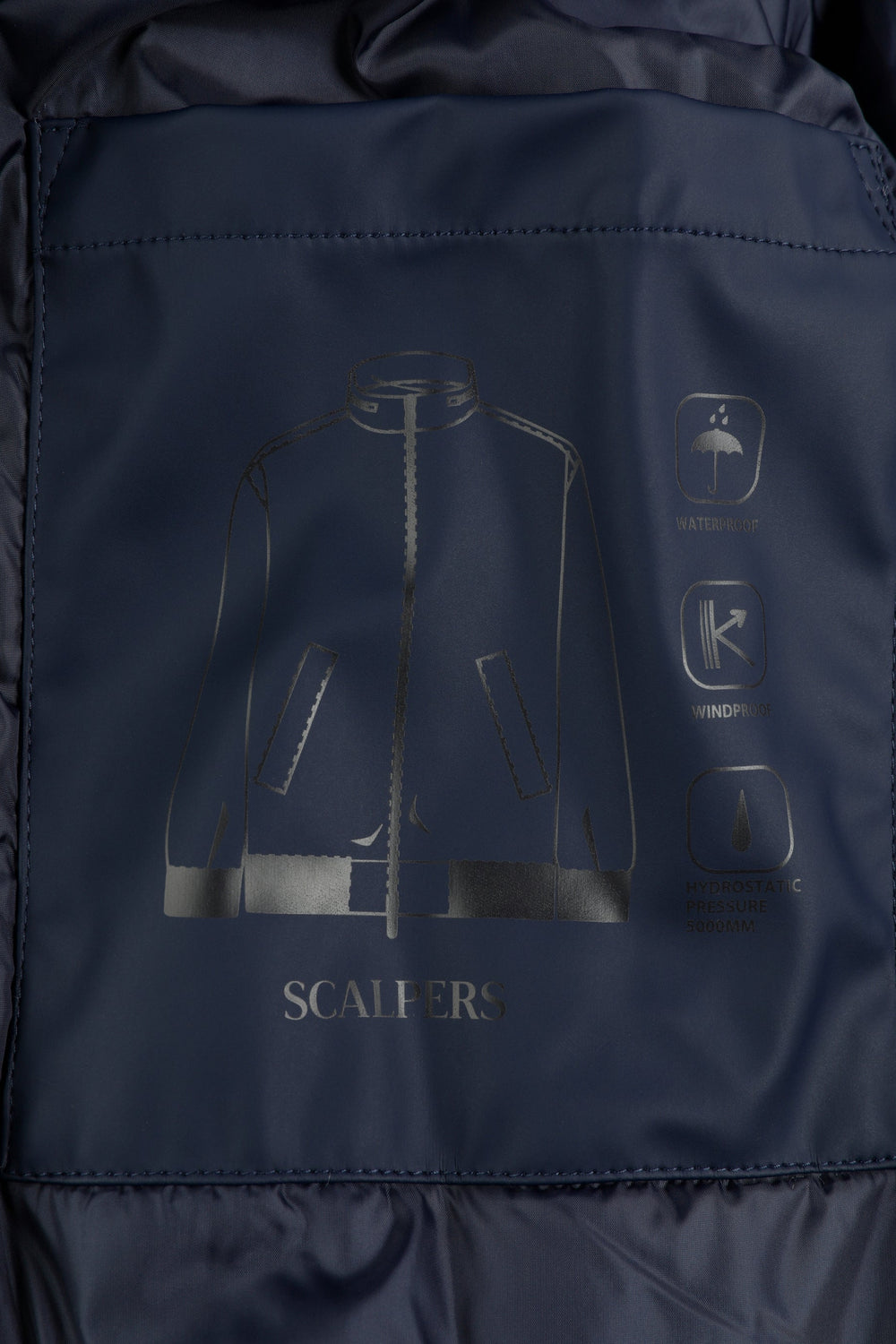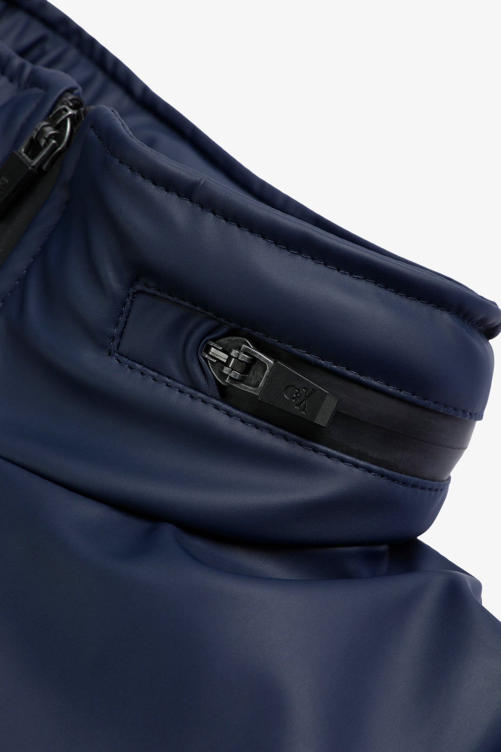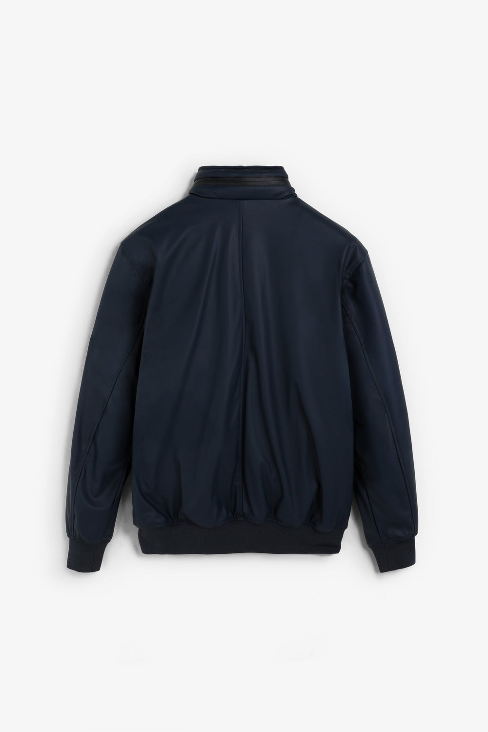 Chaqueta impermeable y cortaviento con capucha oculta. Cierre frontal con cremallera termosellada. Puños y bajo acanalados. Dos bolsillos delanteros. Relleno con acolchado de 60 gramos. La capucha oculta en el cuello soporta 5.000 mm de presión de agua. Logo engomado en el bolsillo.