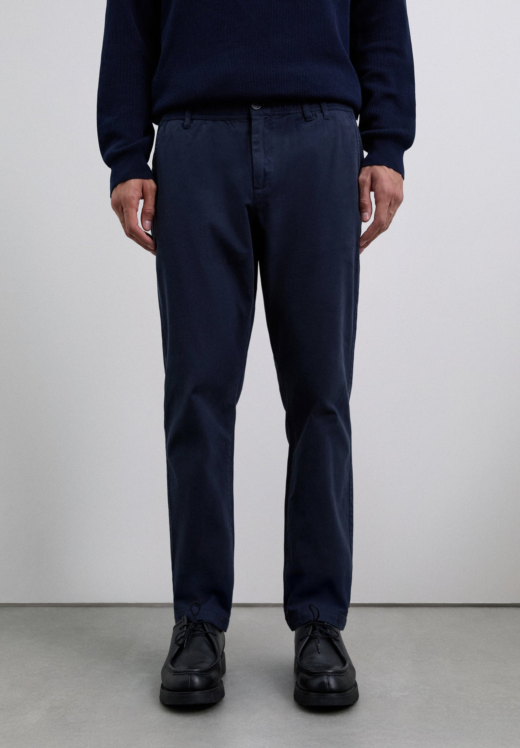 Pantalón de sarga confeccionado en 100% algodón BCI. Regular fit. Cierre mediante cremallera y abotonadura frontal. Bolsillos laterales y en espalda. Detalle de etiqueta en bolsillo derecho posterior. Trabillas en cintura.