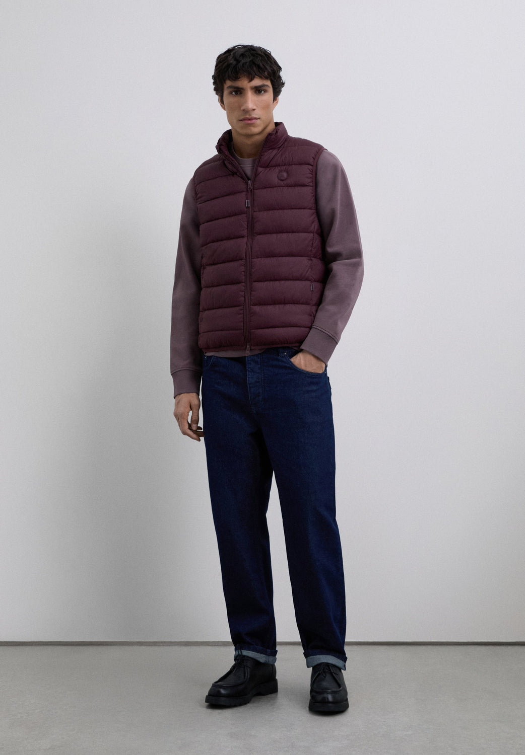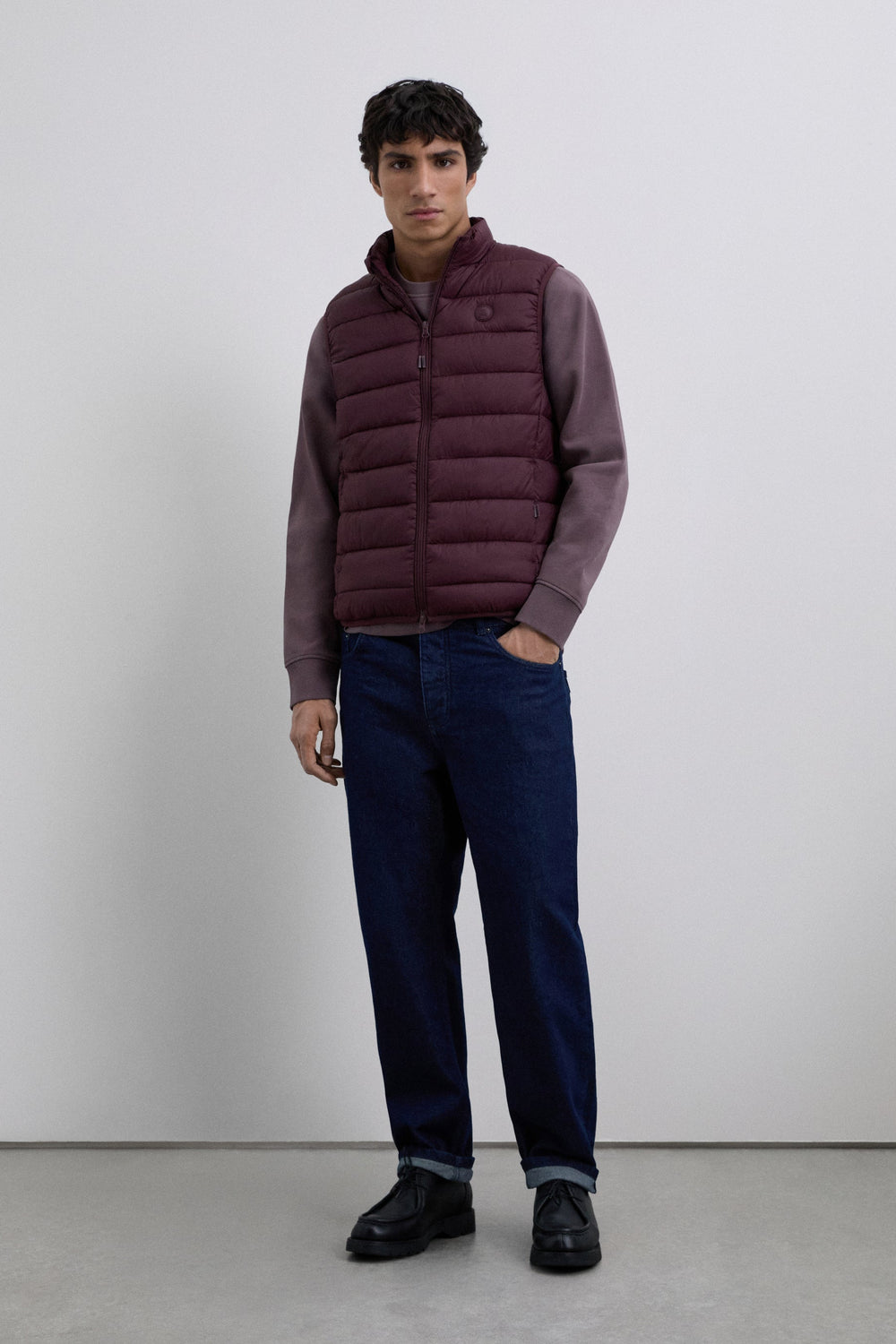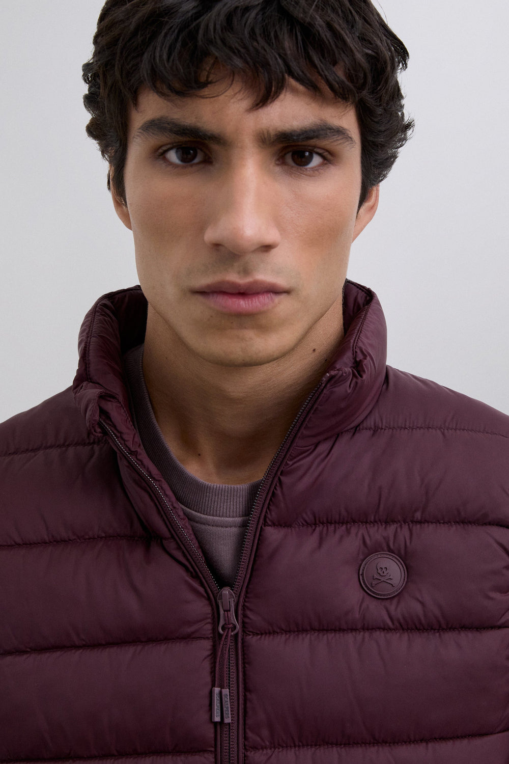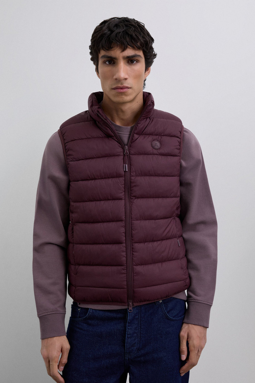 Chaleco acolchado. Repelente al agua. Forro interior confeccionado en tejido técnico. Bolsillos laterales ocultos con forro polar. Cierre mediante cremallera de doble carro grabada. Parche engomado con logotipo al tono en pecho.