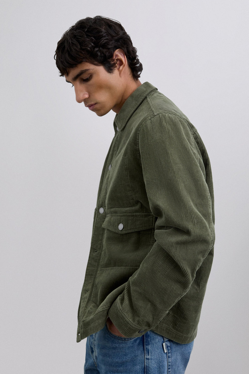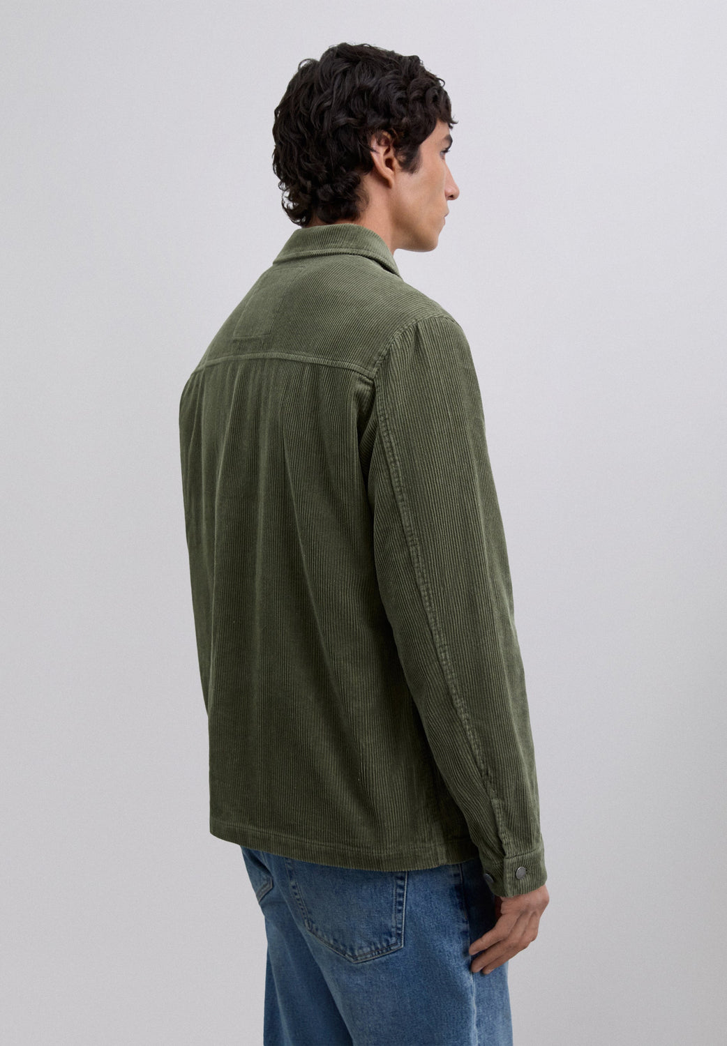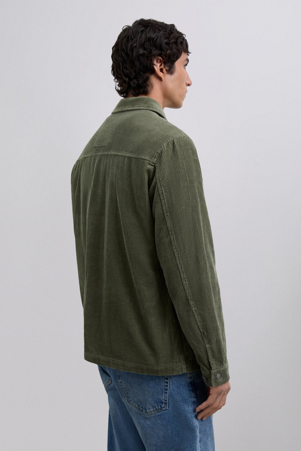 Sobrecamisa de pana confeccionada en 100% algodón BCI. Manga larga. Cuello de camisa. Cierre frontal con botones. Dos bolsillos frontales con solapas y diseño de parche. Cierre en puño mediante botones. Detalle de logo en botones y etiqueta.