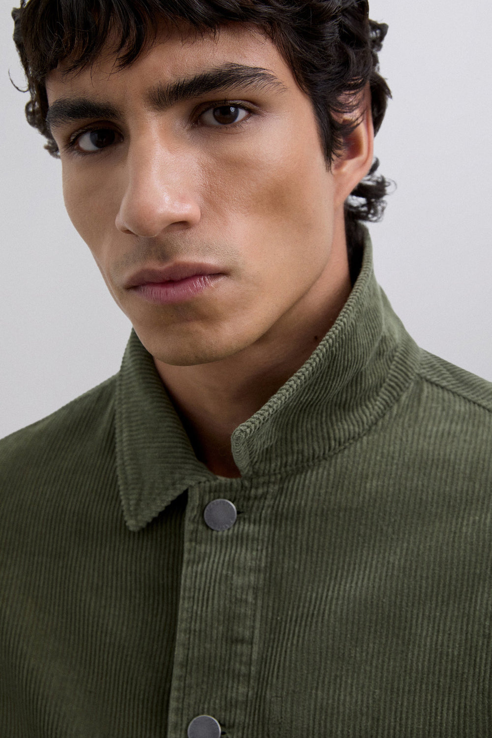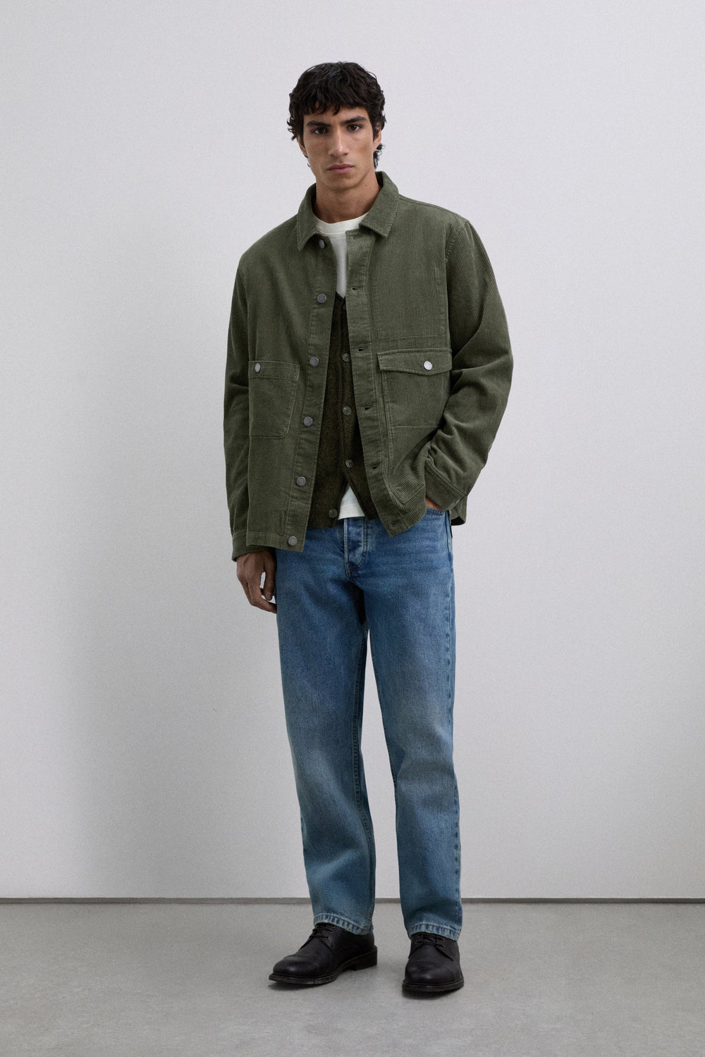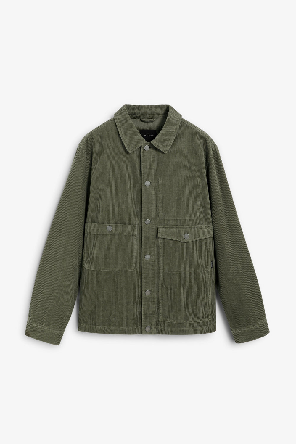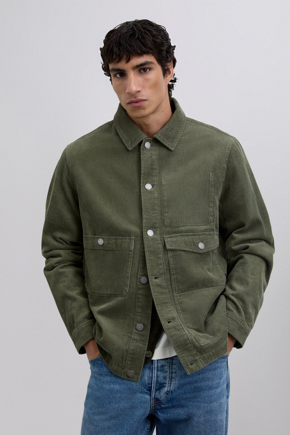 Sobrecamisa de pana confeccionada en 100% algodón BCI. Manga larga. Cuello de camisa. Cierre frontal con botones. Dos bolsillos frontales con solapas y diseño de parche. Cierre en puño mediante botones. Detalle de logo en botones y etiqueta.