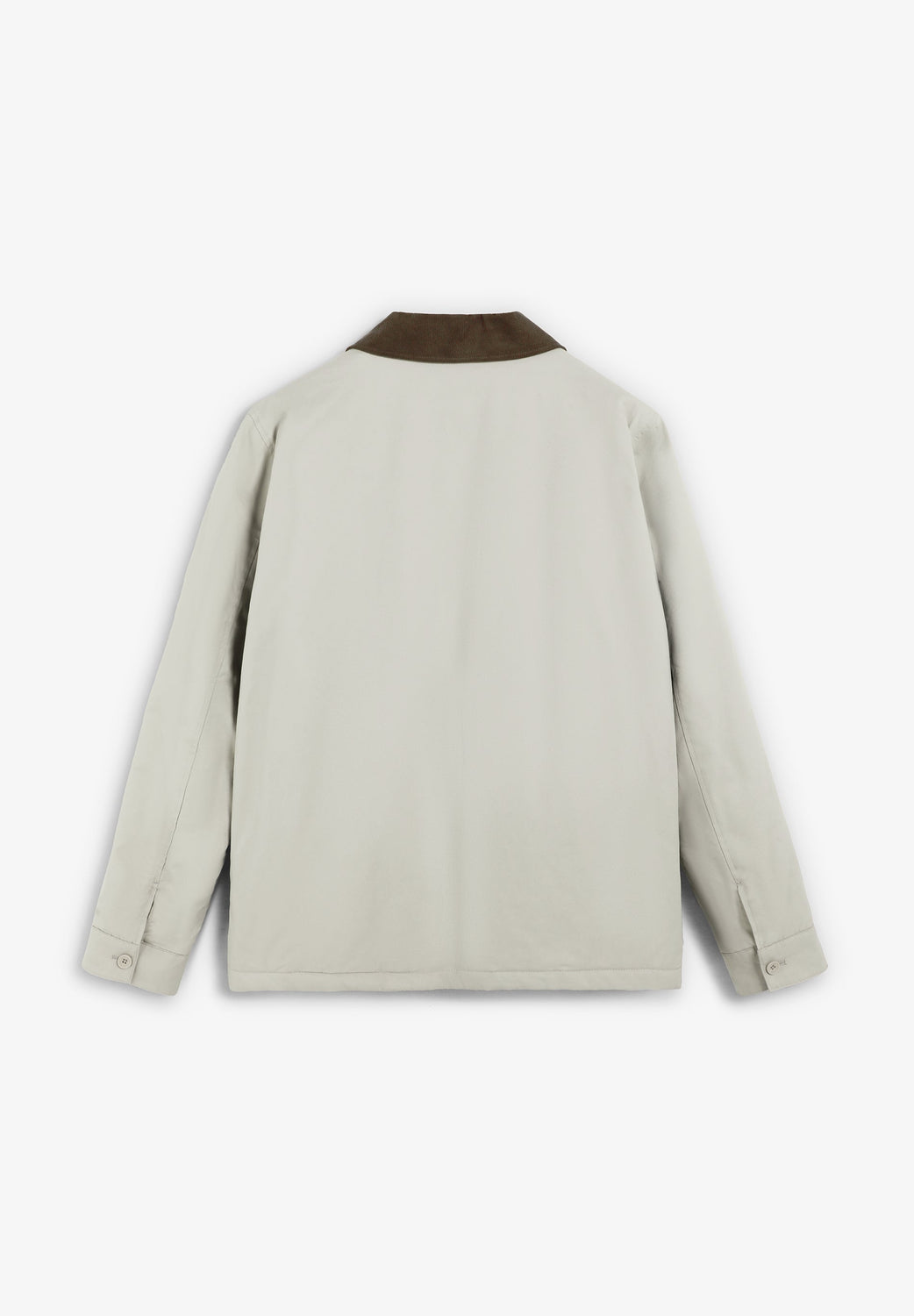 Chaqueta confeccionada en 100% algodón. Cuello de pana a contraste. Cierre mediante abotonadura. Bolsillo de parche en el pecho y dos laterales con aberturas inclinadas. Manga larga. Puños con cierre mediante botón.
