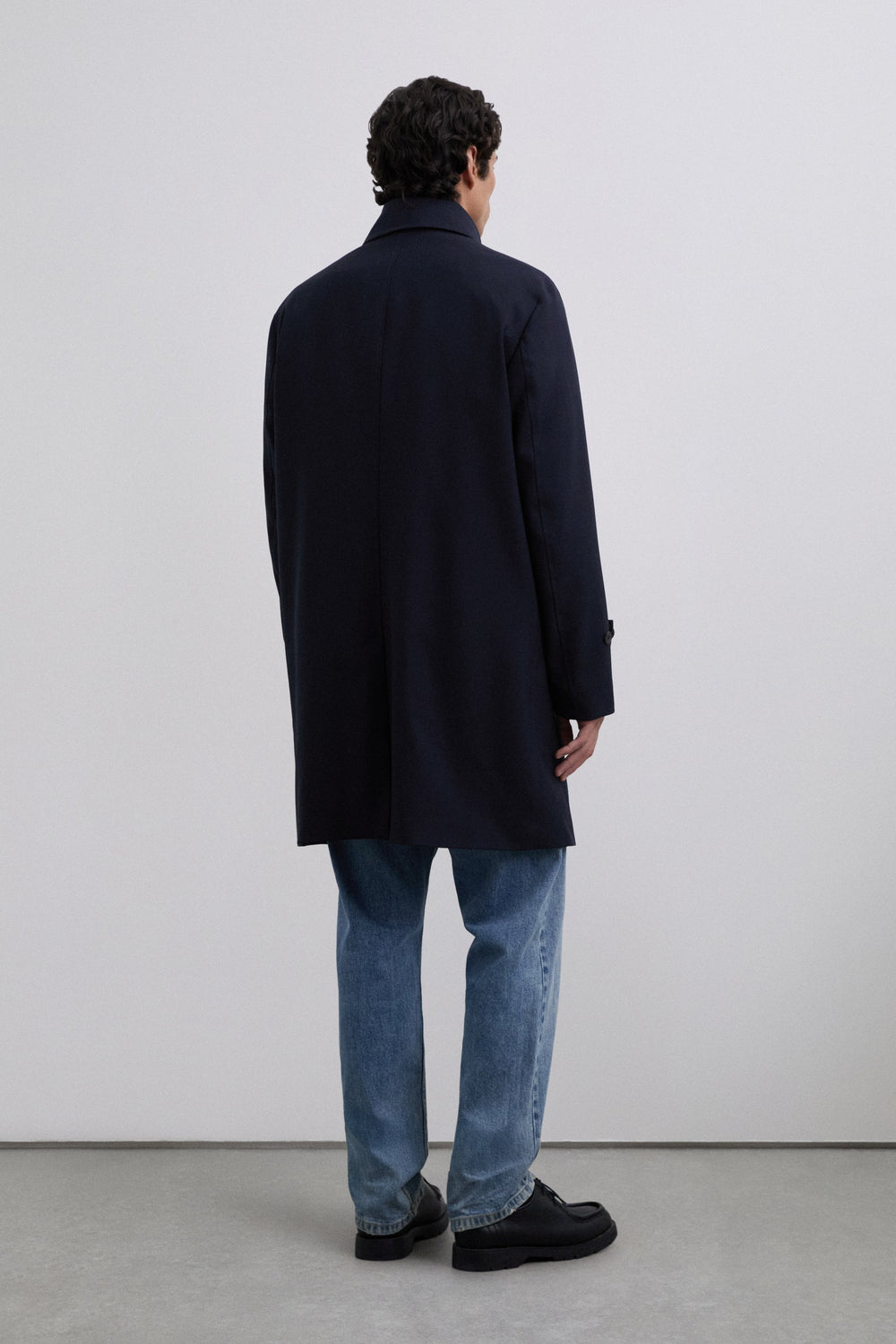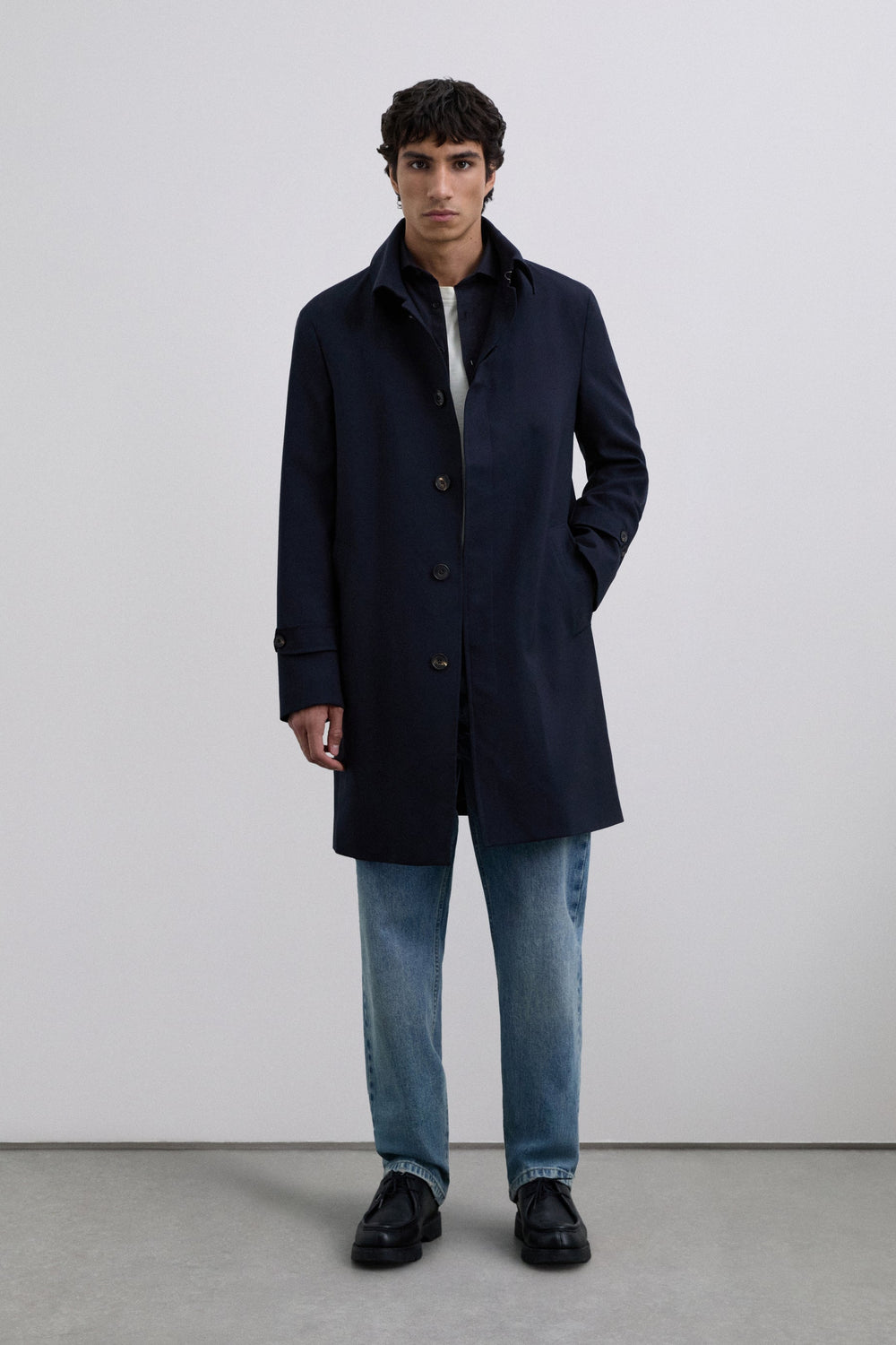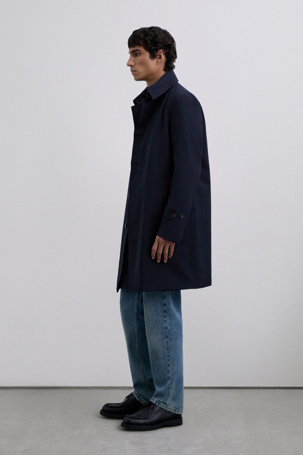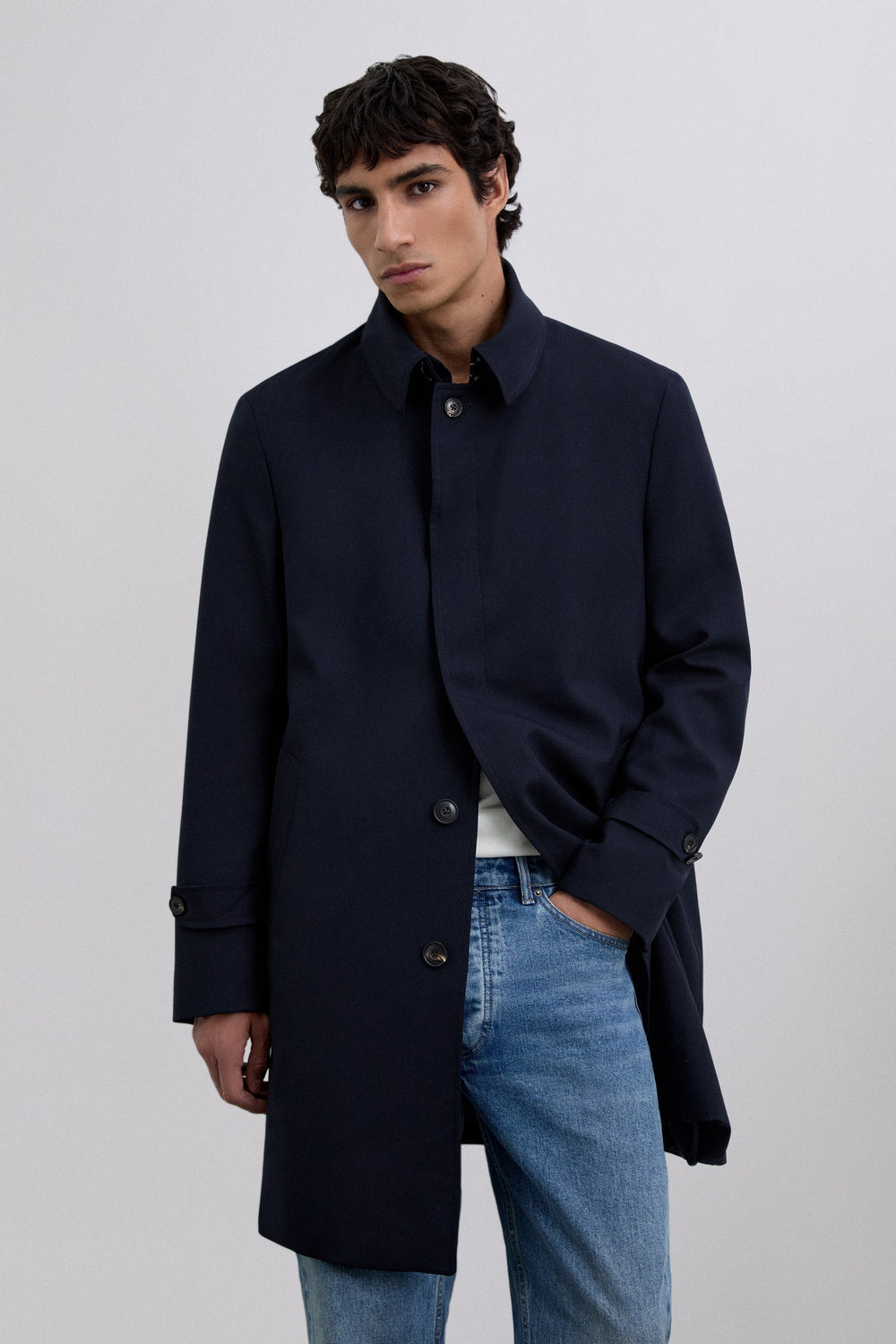 Gabardina confeccionada en 100% piel. Cierre de botón oculto. Puños ajustables con botón. Cuello de camisa.