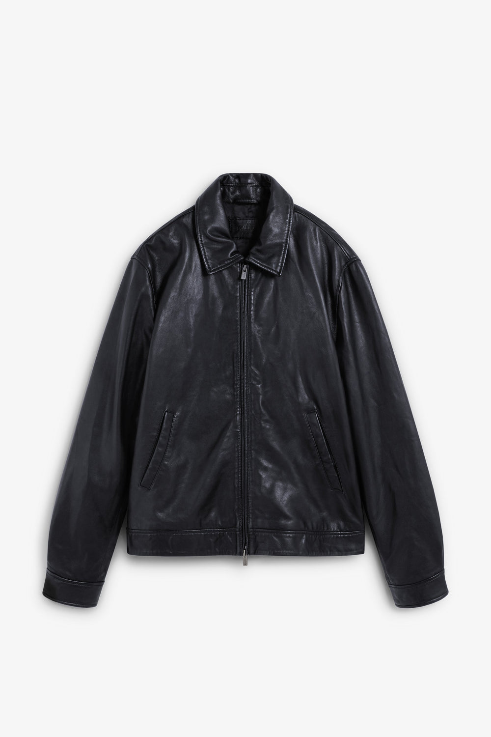 Chaqueta confeccionada en 100% piel. Cuello de camisa. Manga larga. Cierre con doble cremallera. Dos bolsillos frontales. Puños con botón. Detalles bordados de logo y calavera en el interior.