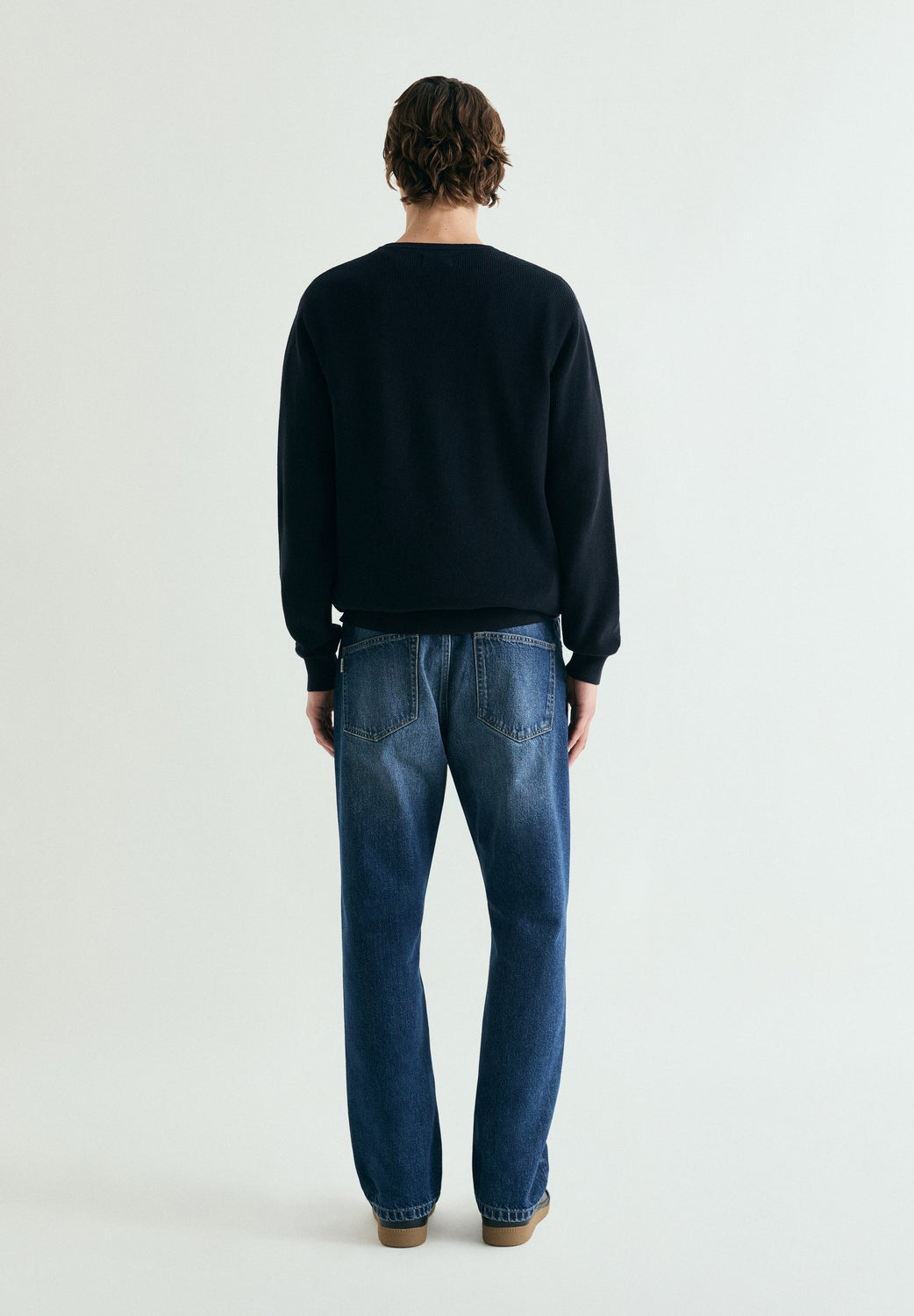 Jeans regular fit. Cinco bolsillos. Efecto lavado. Trabillas en cintura. Cierre frontal mediante cremallera y botón.
