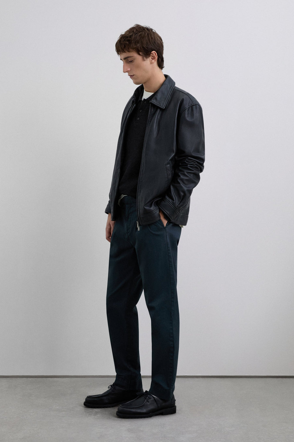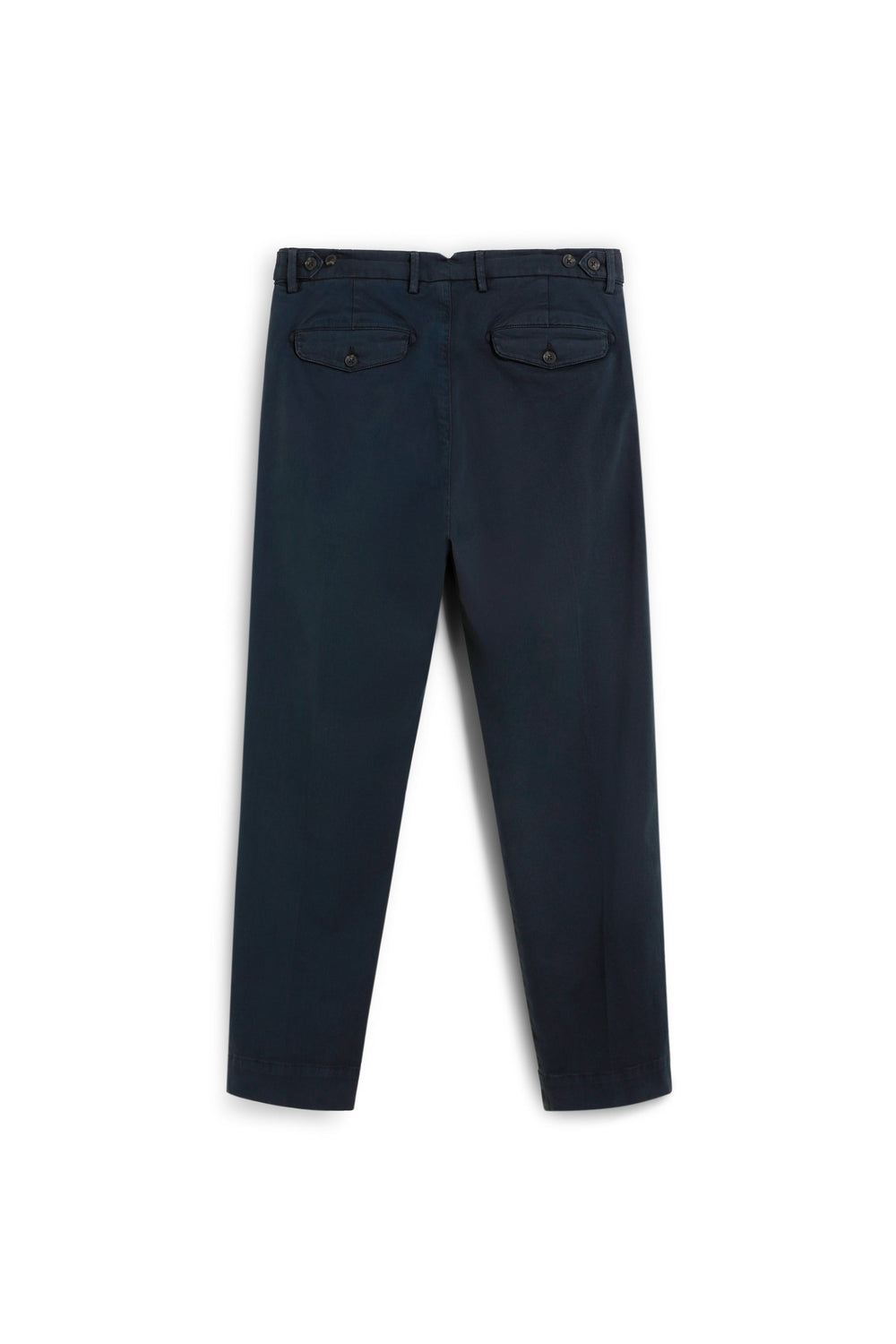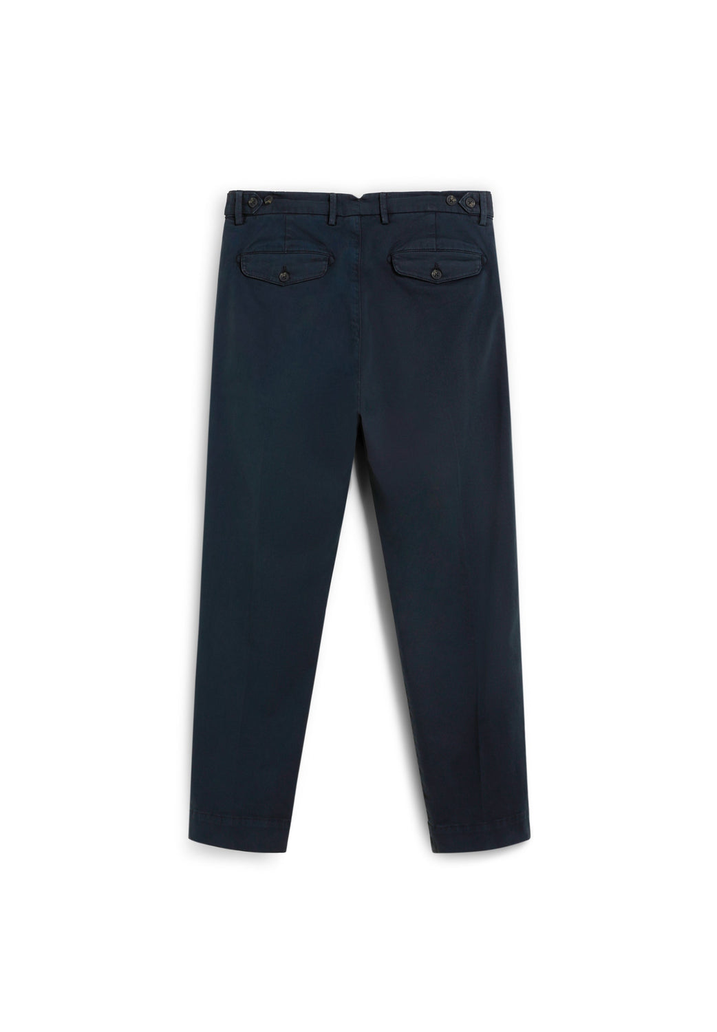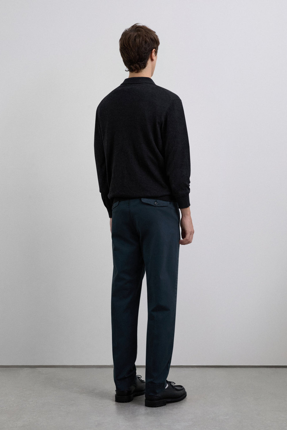 Pantalón de pinza confeccionado en algodón. Regular fit. Cintura con detalle de pliegues en delantero. Bolsillos laterales y detalle de bolsillos traseros en vivo. Cierre frontal con cremallera y botón.