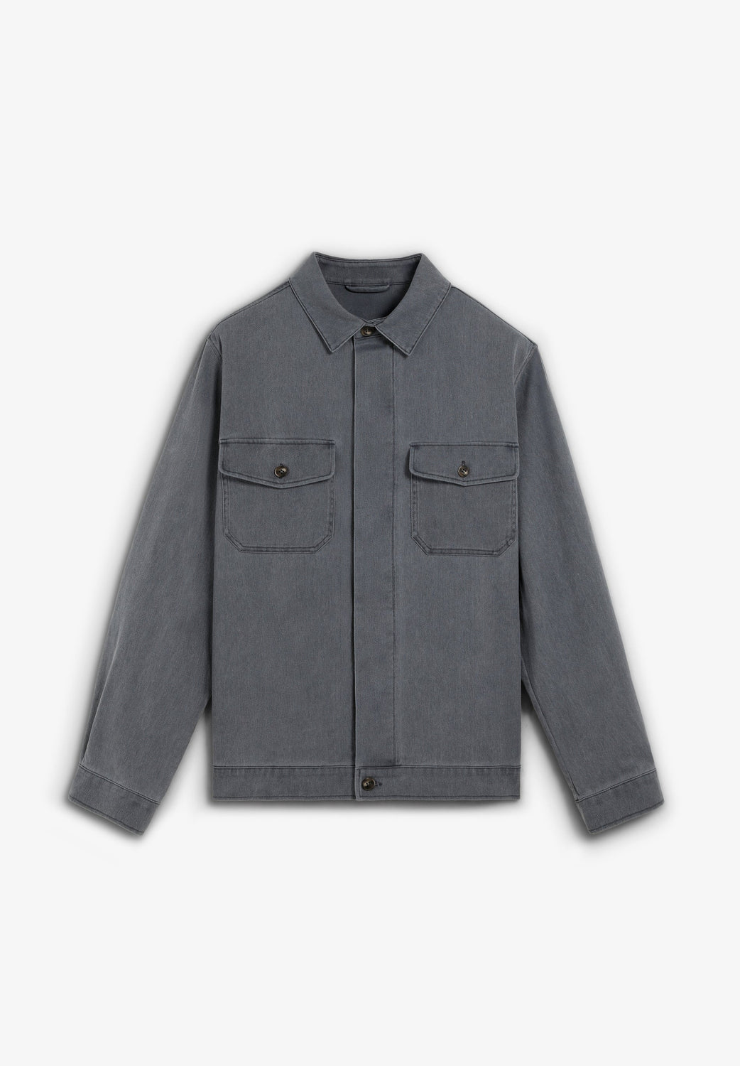 Cazadora confeccionada en algodón reciclado. Efecto lavado. Dos bolsillos de solapa en el pecho con cierre de botón. Cierre delantero con botones.