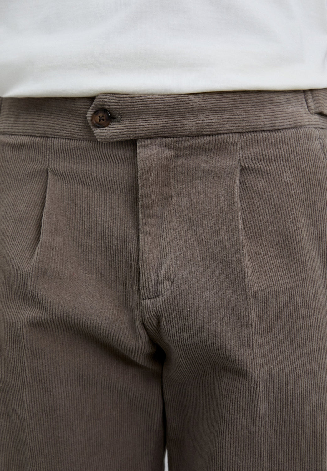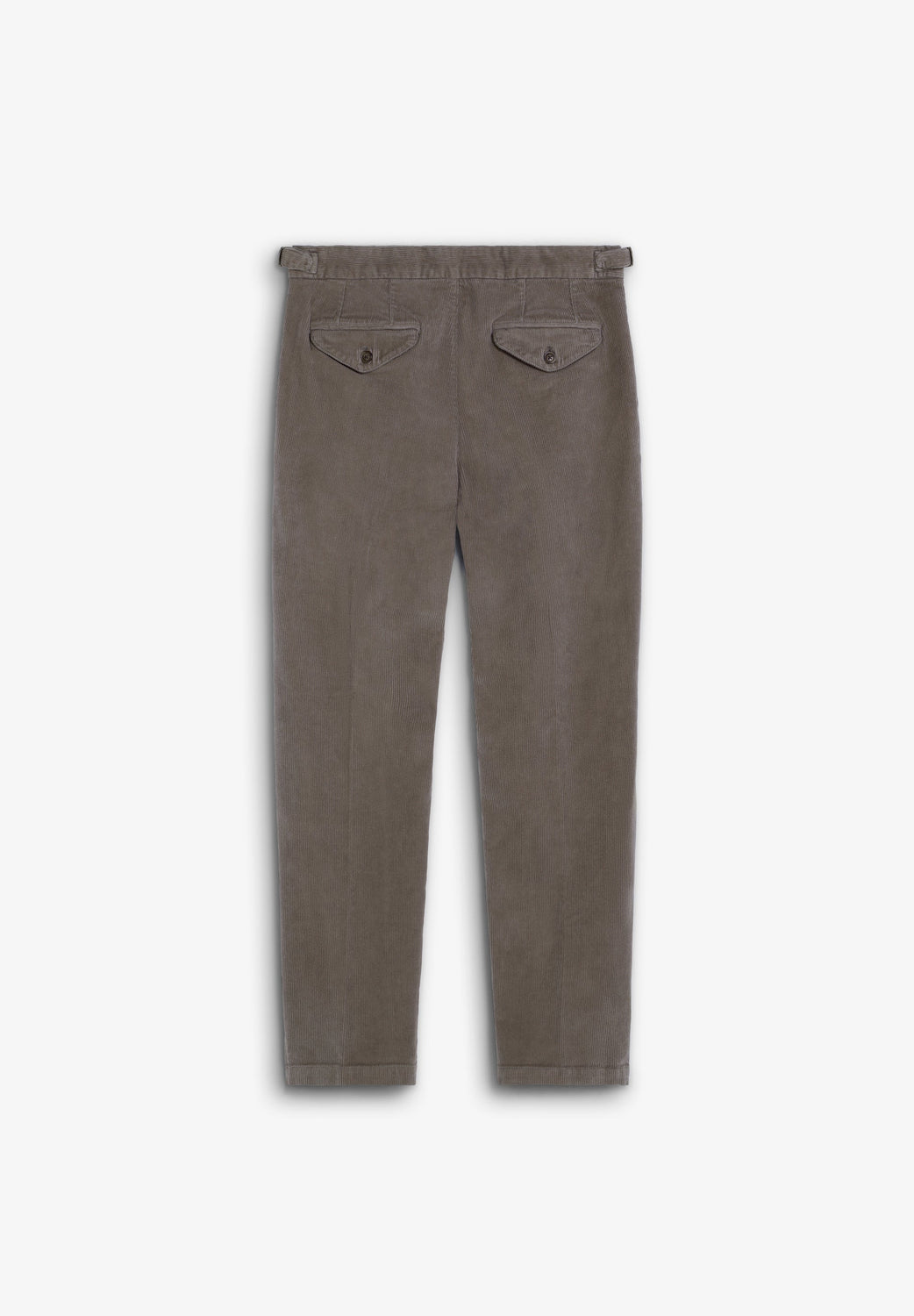 Pantalón de pinzas de pana confeccionado en algodón BCI. Slim Fit. Ajustadores de metal en los costados de la cintura, cierre con botón y cremallera. Dos bolsillos delanteros y dos traseros con cierre mediante botón.