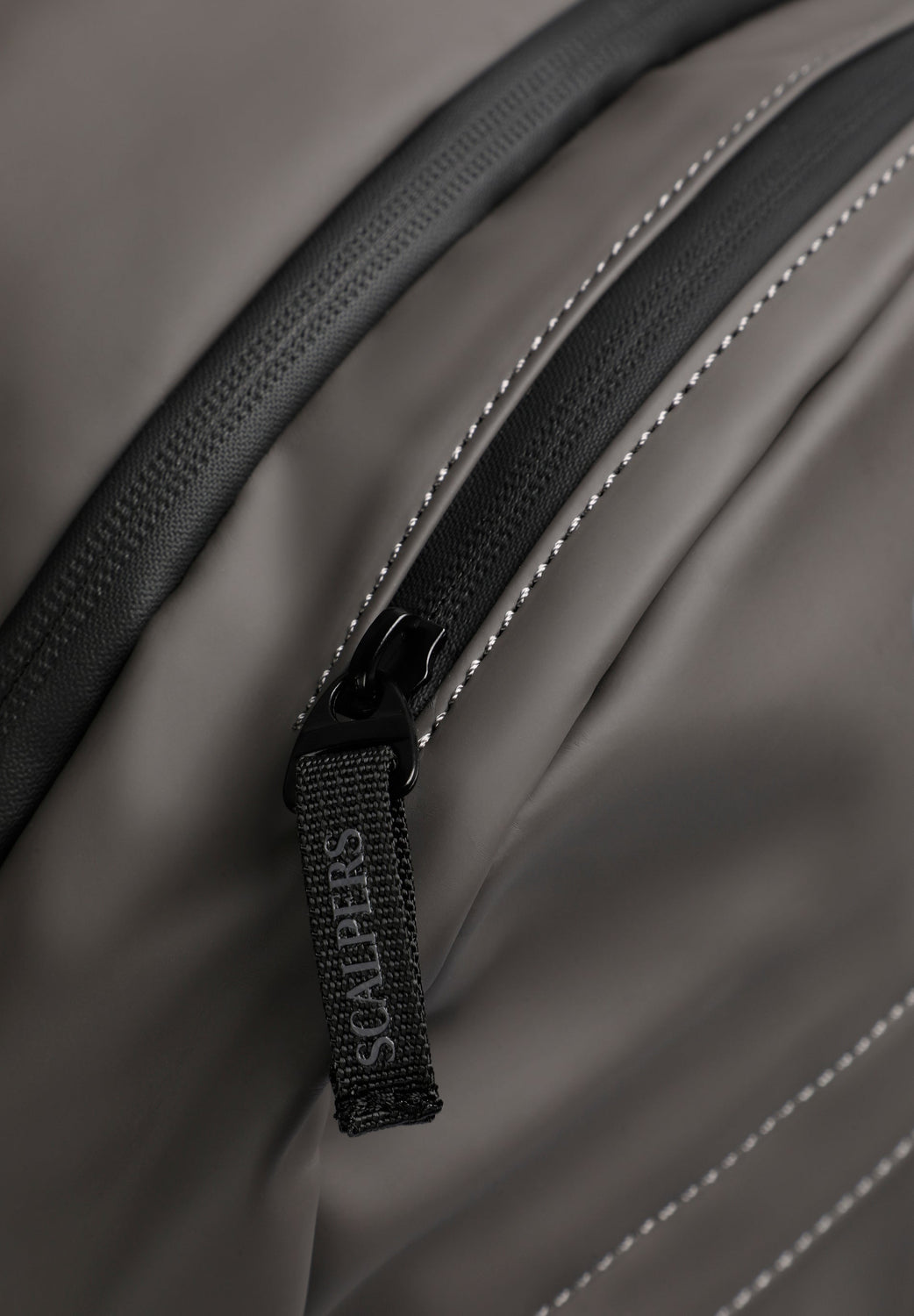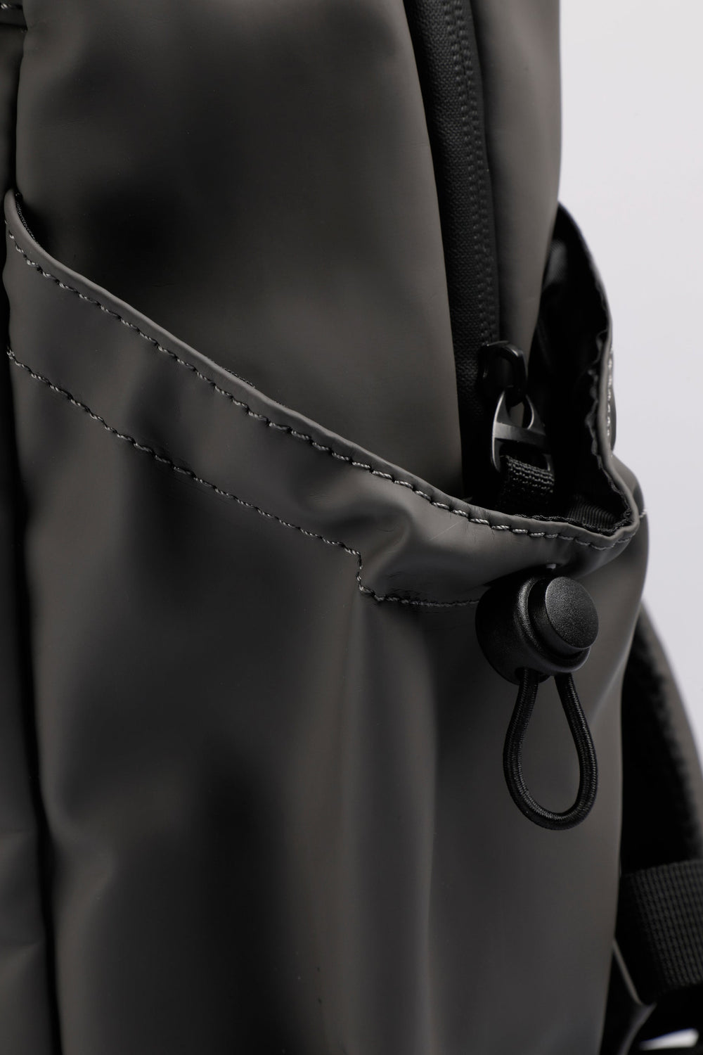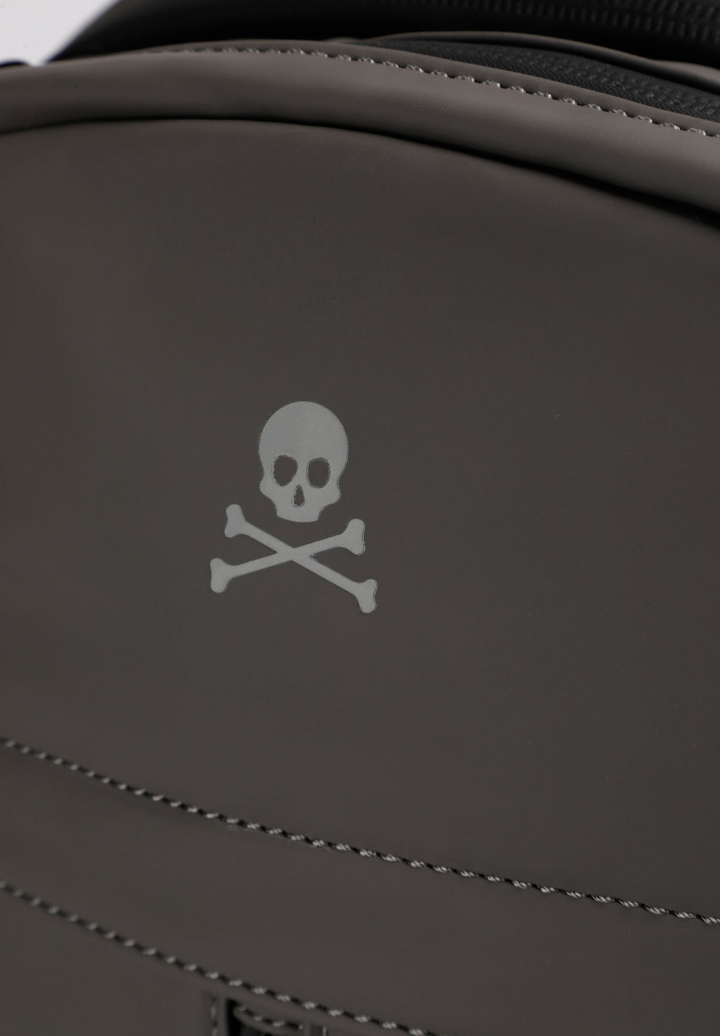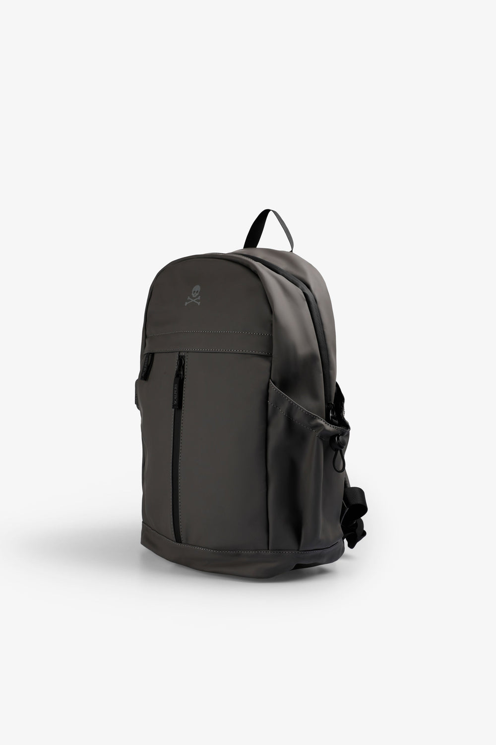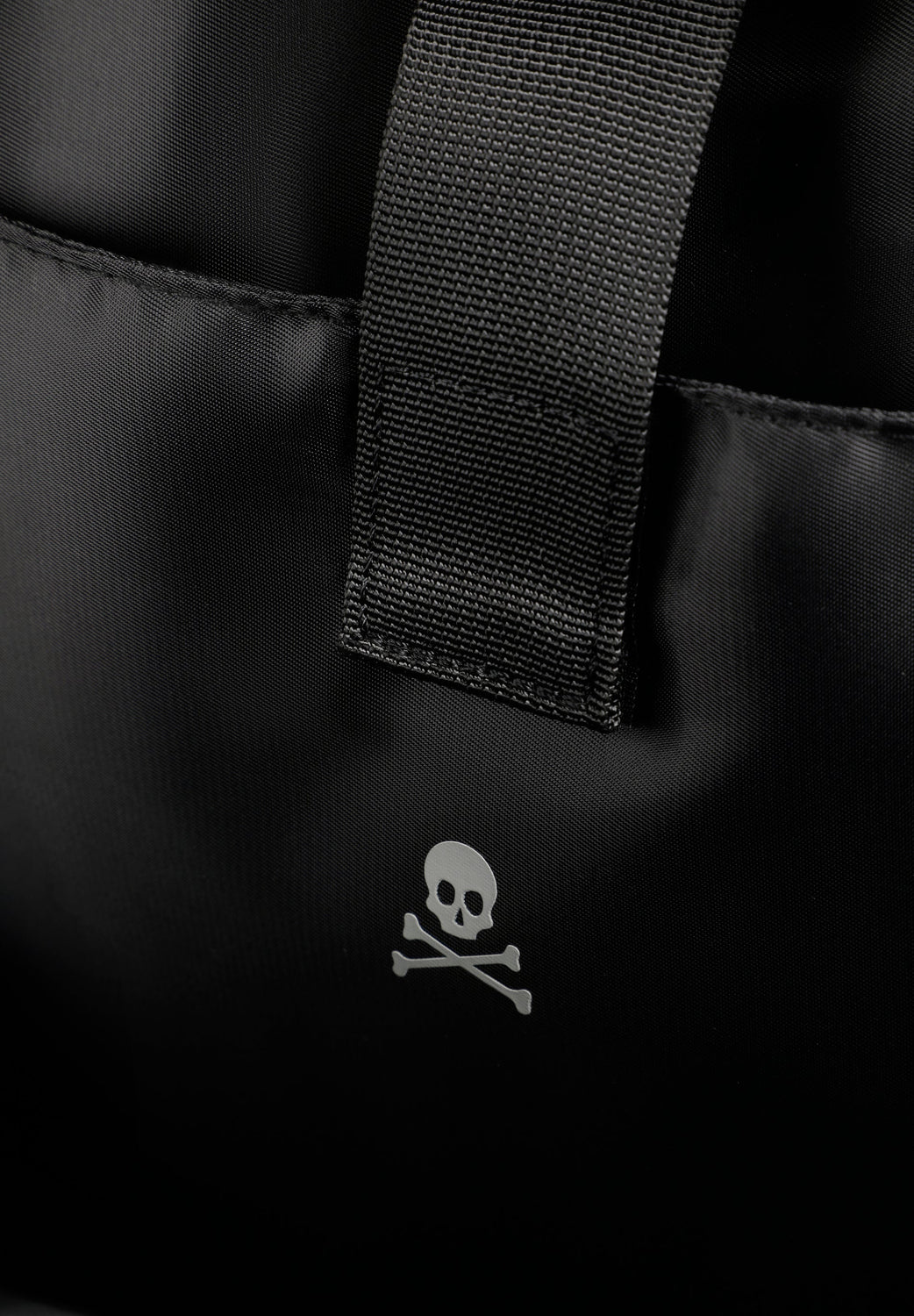 Mochila confeccionada en tejido técnico. Doble bolsillo frontal exterior. Cierre ajustable con hebillas. Detalle de calavera en print frontal y trasero. Asa superior. Ajustes de sujeción en laterales y espalda. Refuerzo acolchado en espalda.