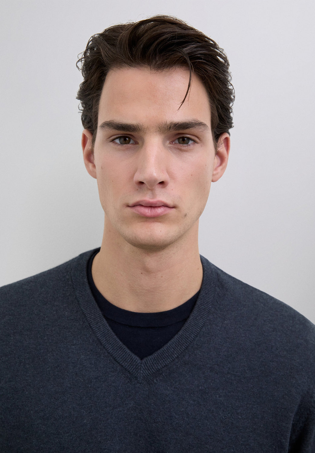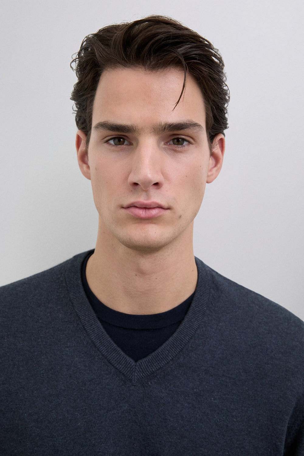 Jersey confeccionado en algodón. Corte Regular. Cuello en pico. Mangas largas. Puños y cintura con acabados en RIB. Detalle de calavera bordada a tono en pecho.