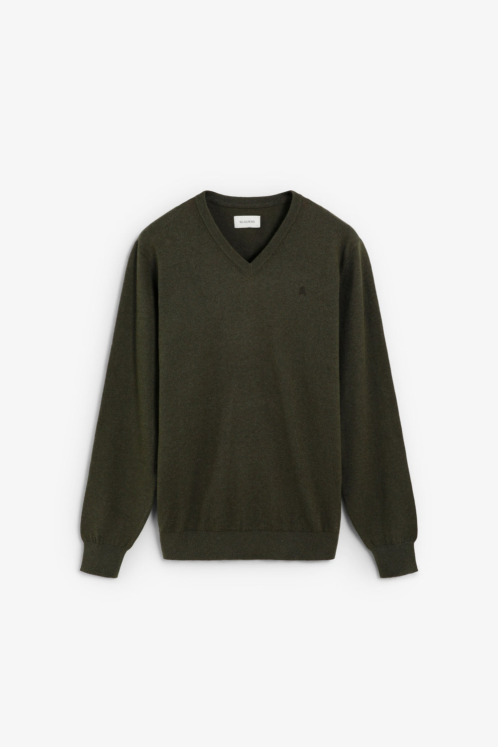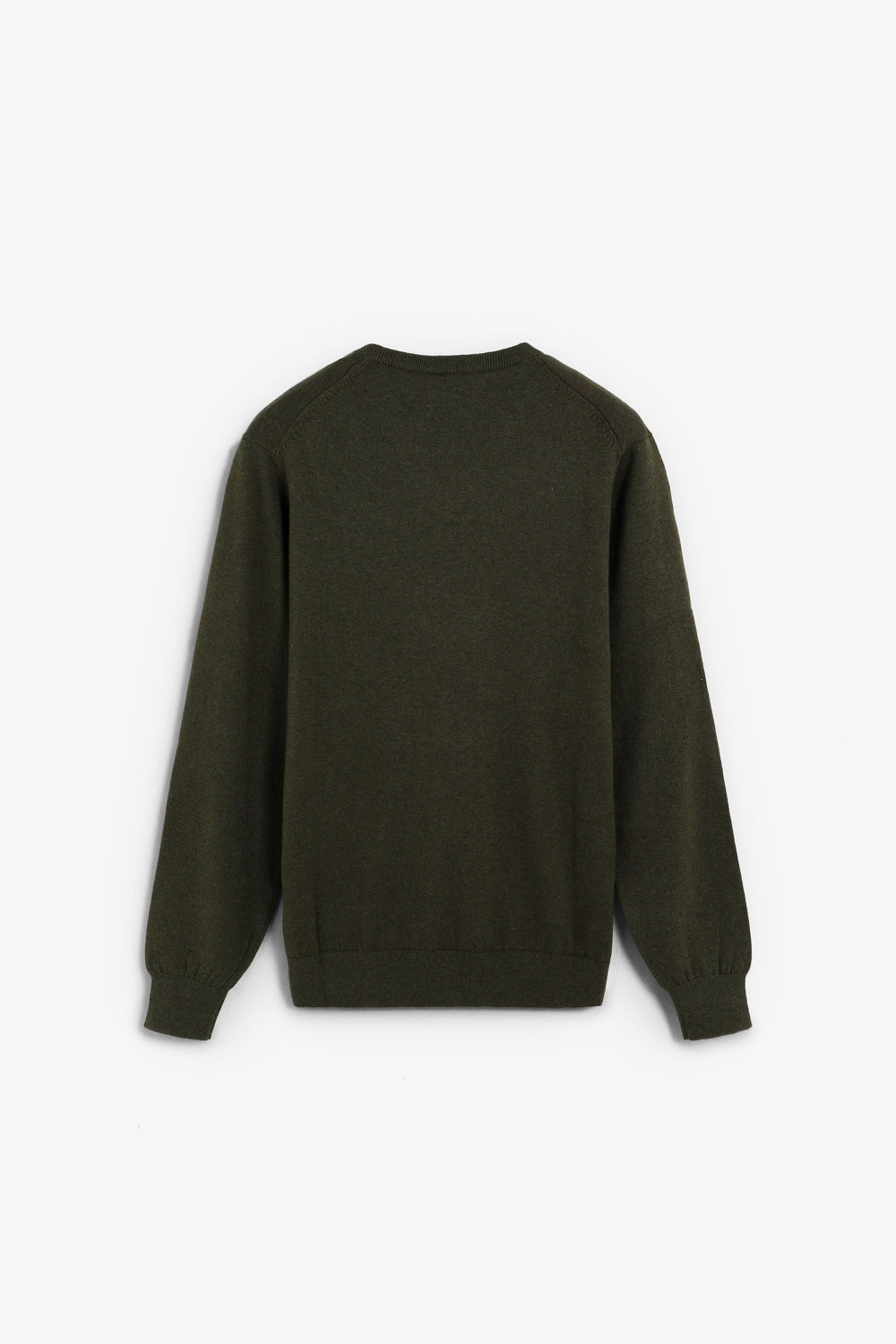Jersey confeccionado en algodón. Corte Regular. Cuello en pico. Mangas largas. Puños y cintura con acabados en RIB. Detalle de calavera bordada a tono en pecho.