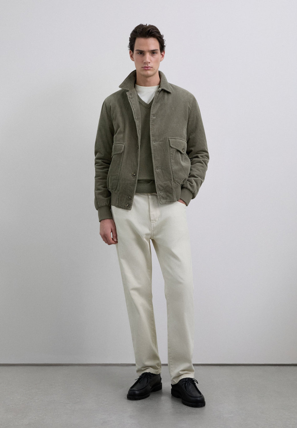 Jersey confeccionado en algodón. Corte Regular. Cuello en pico. Mangas largas. Puños y cintura con acabados en RIB. Detalle de calavera bordada a tono en pecho.