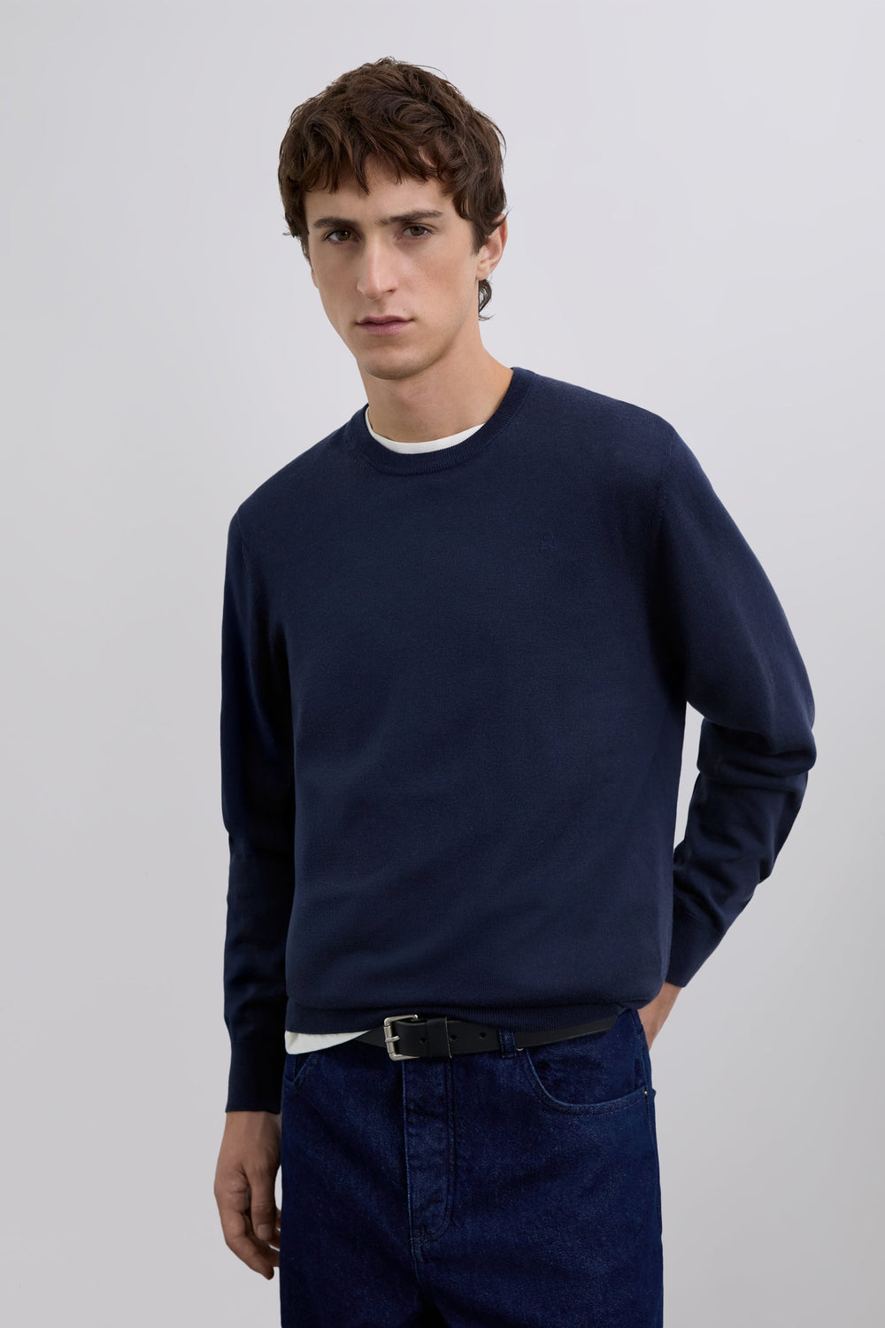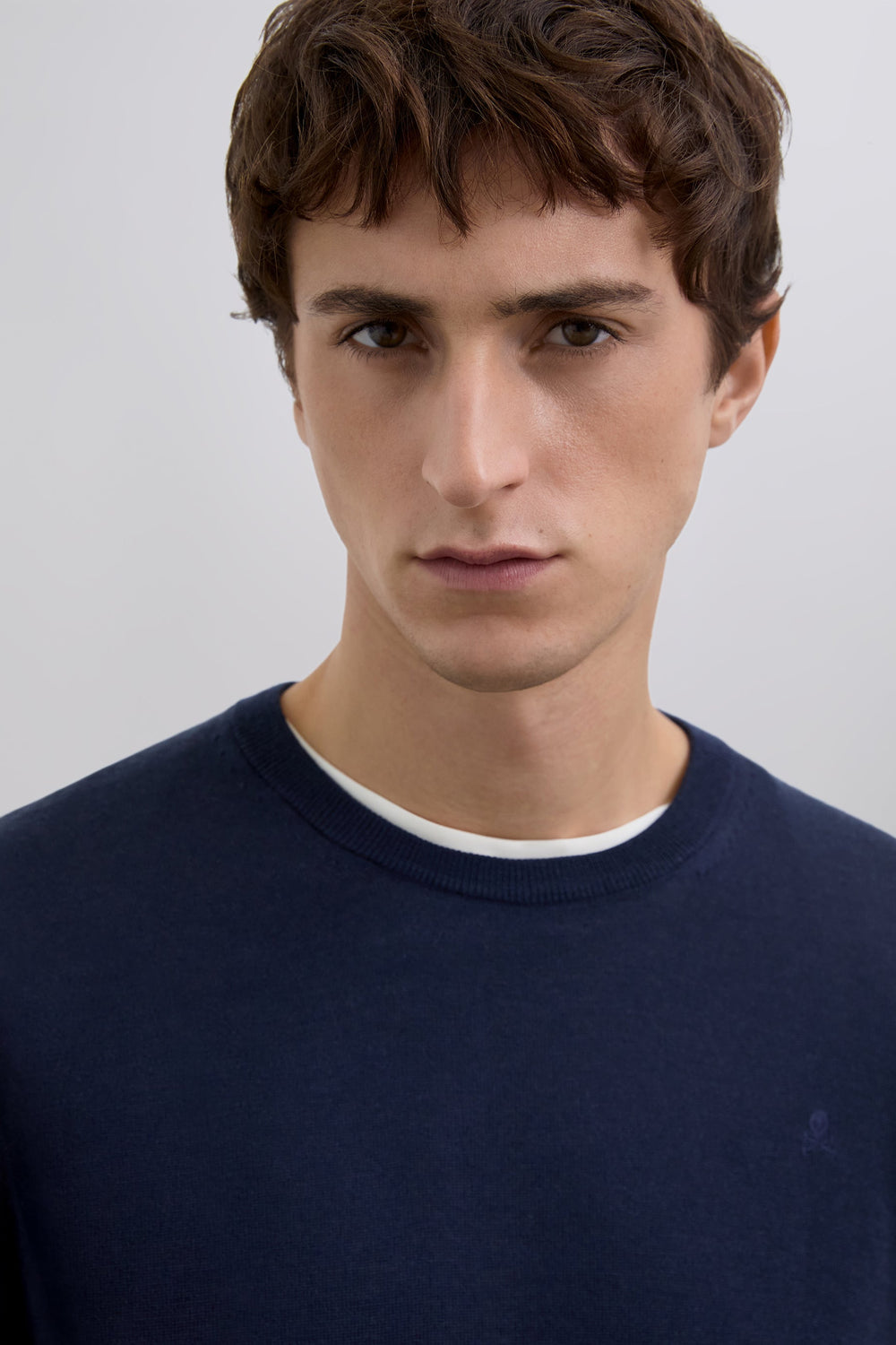 Jersey confeccionado en 100% lana. Regular Fit. Cuello redondo. Manga larga. Detalle de calavera bordada a tono en el pecho. Acabados en rib.