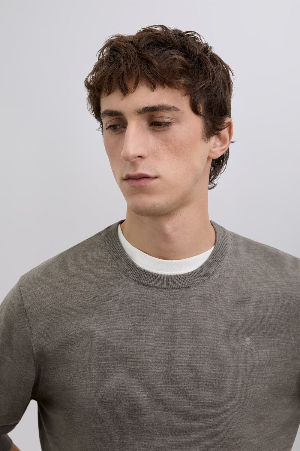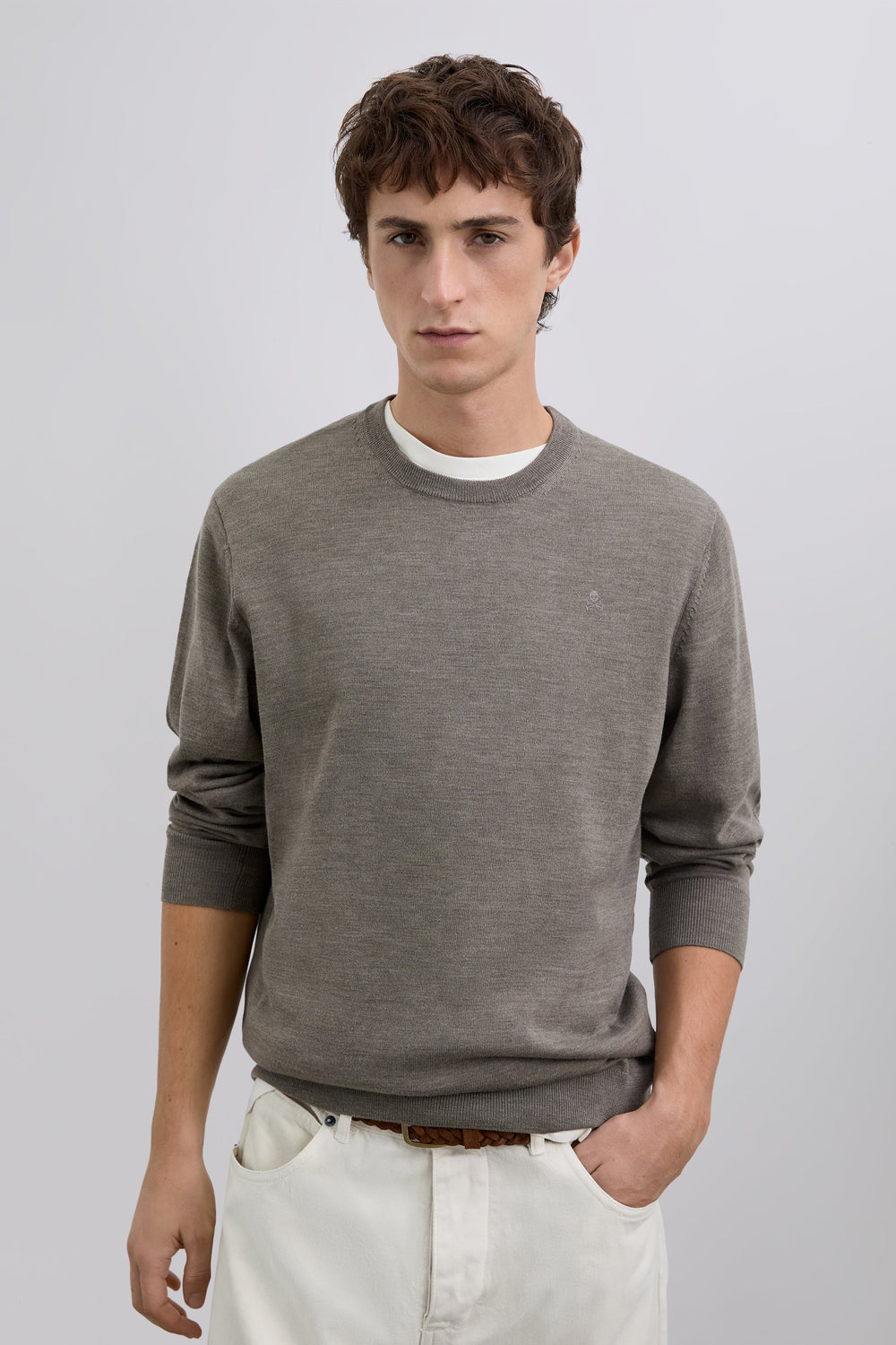 Jersey confeccionado en 100% lana. Regular Fit. Cuello redondo. Manga larga. Detalle de calavera bordada a tono en el pecho. Acabados en rib.