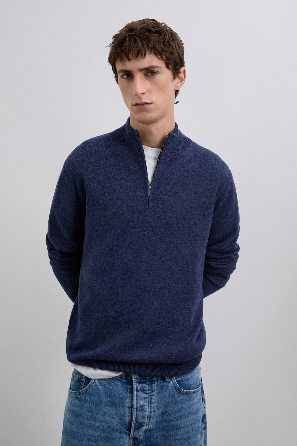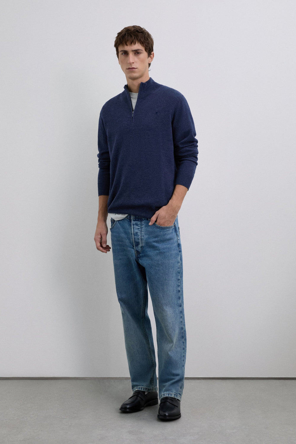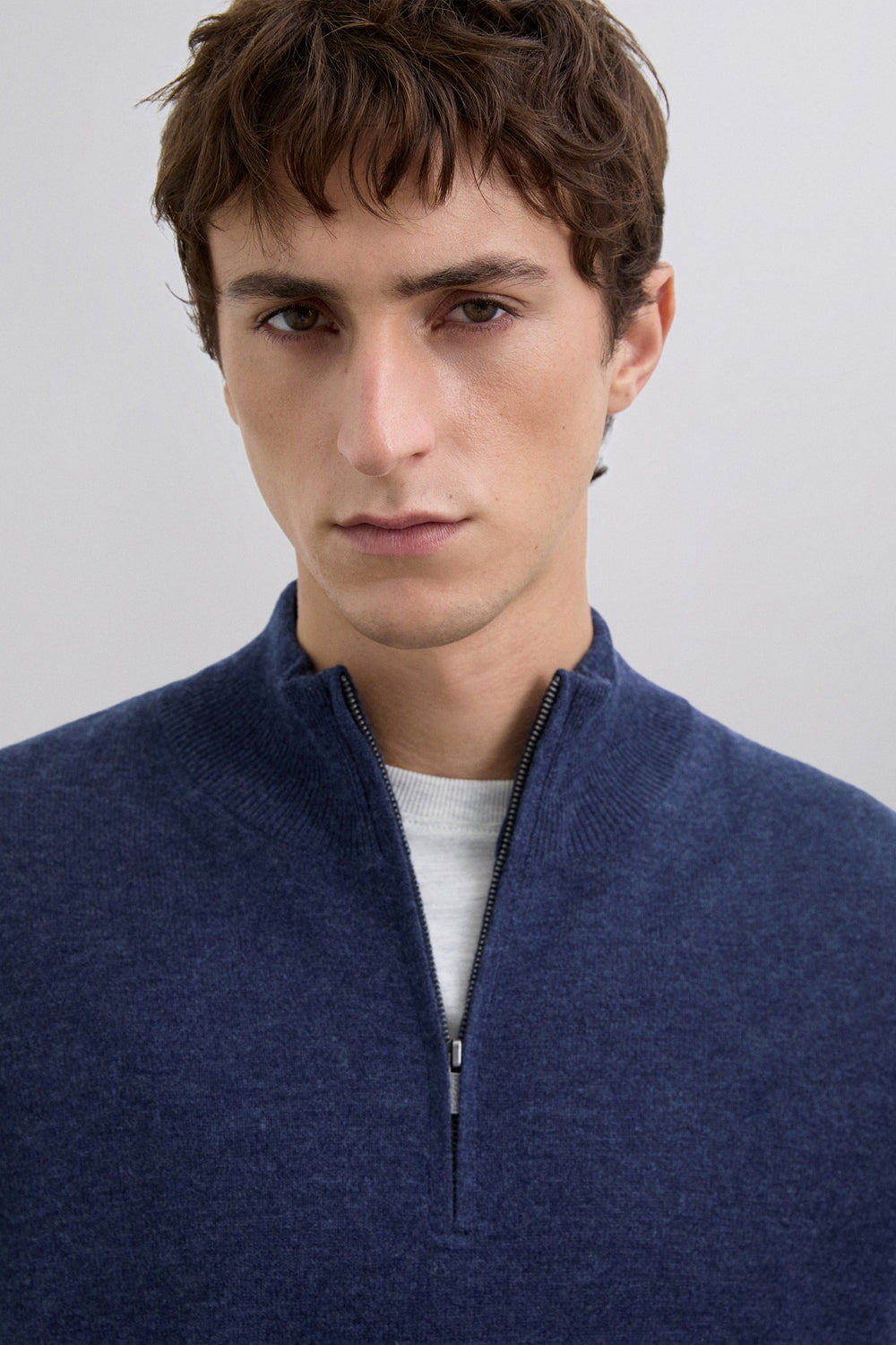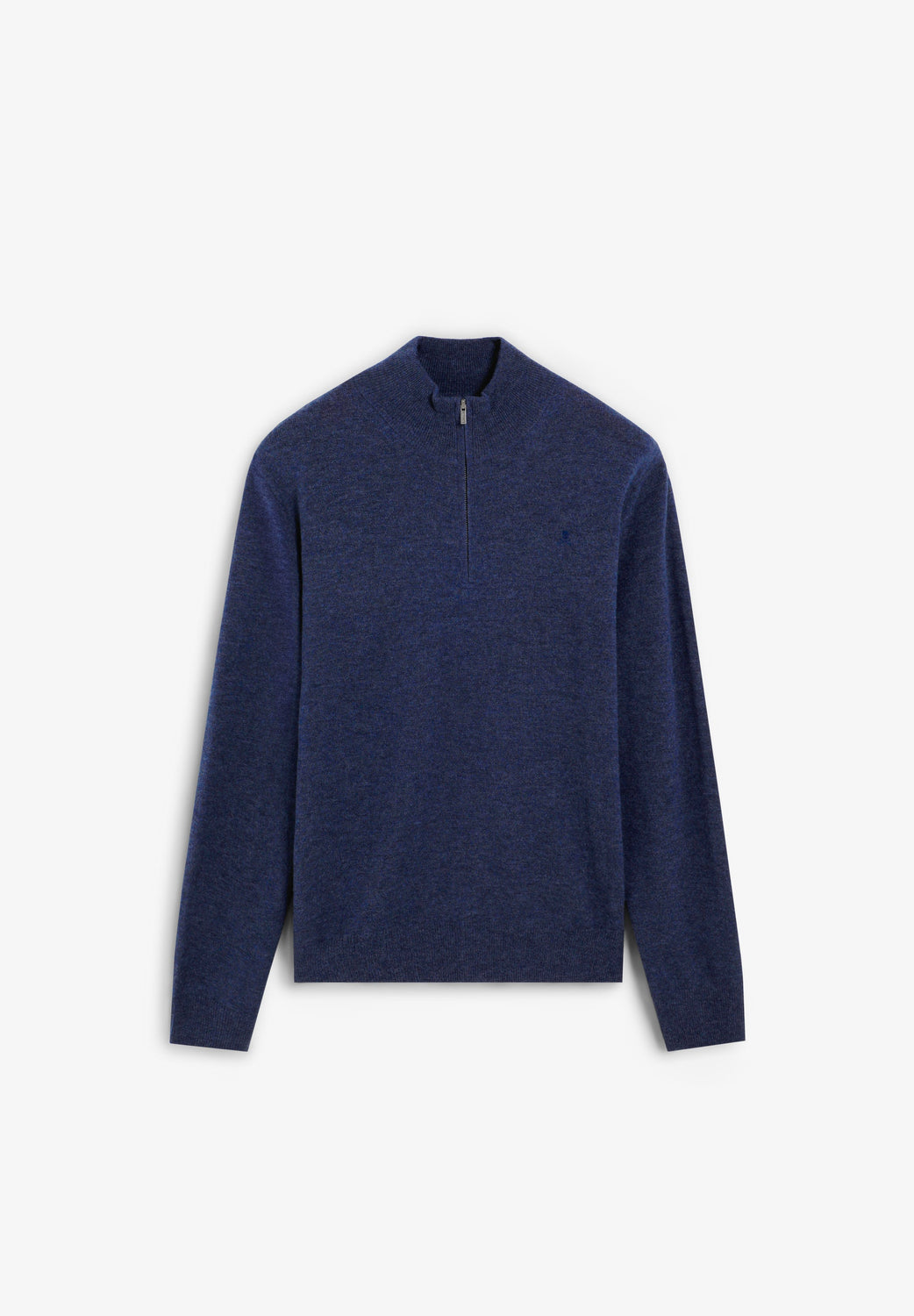 Jersey confeccionado en 100% lana. Regular Fit. Cuello de cierre con media cremallera. Manga larga. Detalle de calavera bordada a tono en pecho. Acabados en rib.
