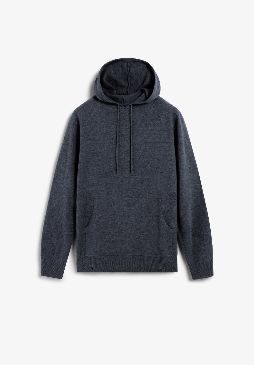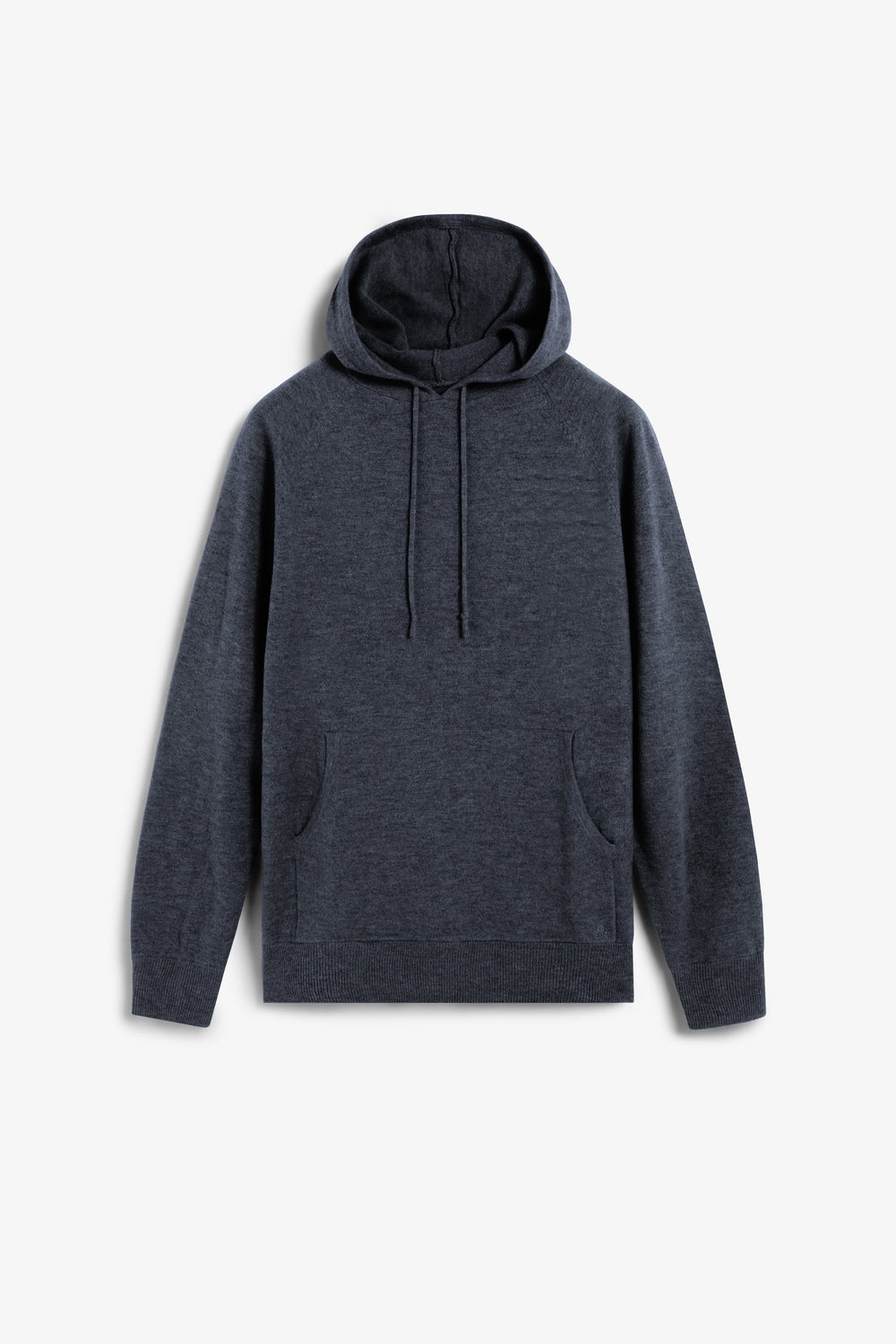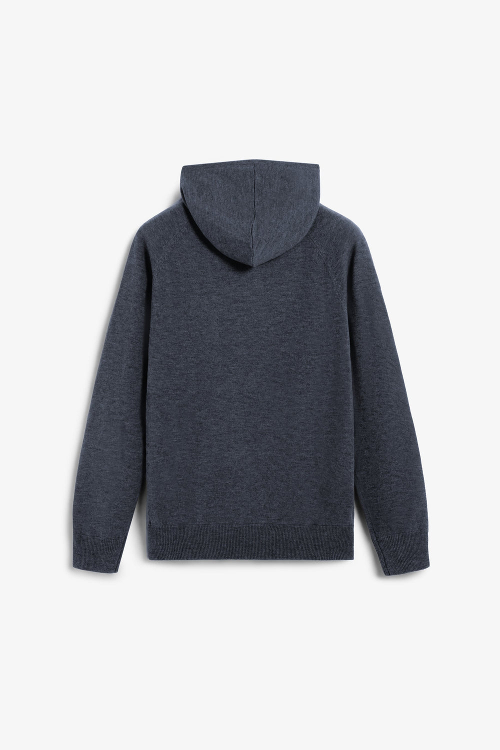 Jersey de punto confeccionado en 100% lana. Capucha ajustable mediante cordones. Manga larga. Bolsillo frontal estilo canguro. Mangas y cintura acabados en rib.
