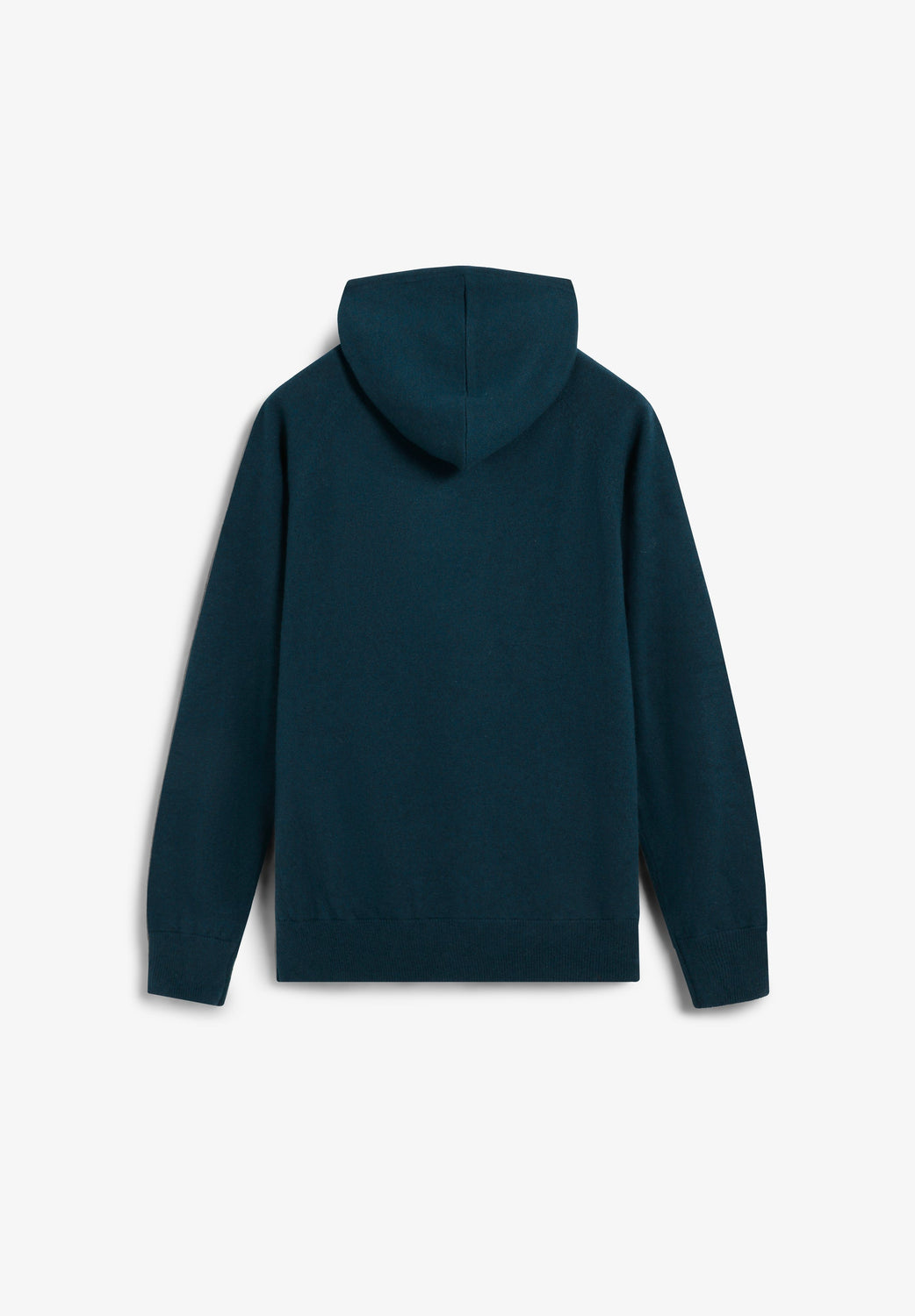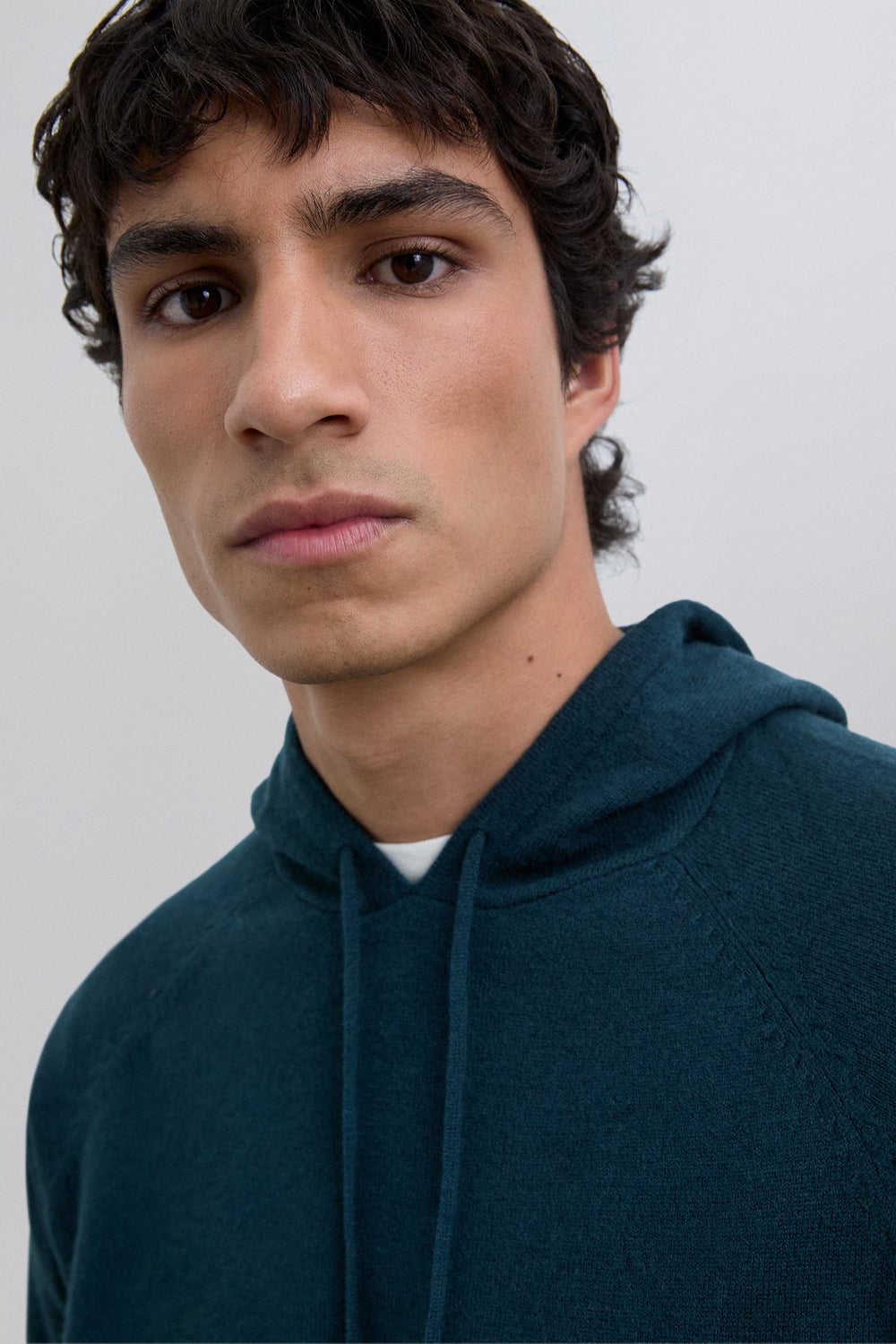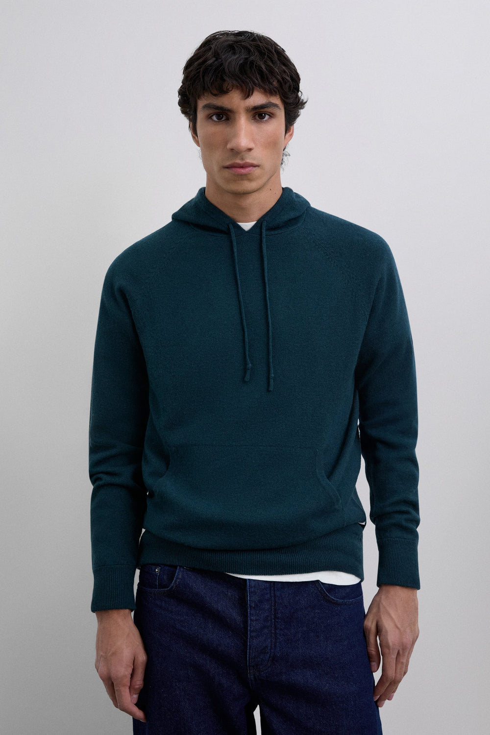 Jersey de punto confeccionado en 100% lana. Capucha ajustable mediante cordones. Manga larga. Bolsillo frontal estilo canguro. Mangas y cintura acabados en rib.
