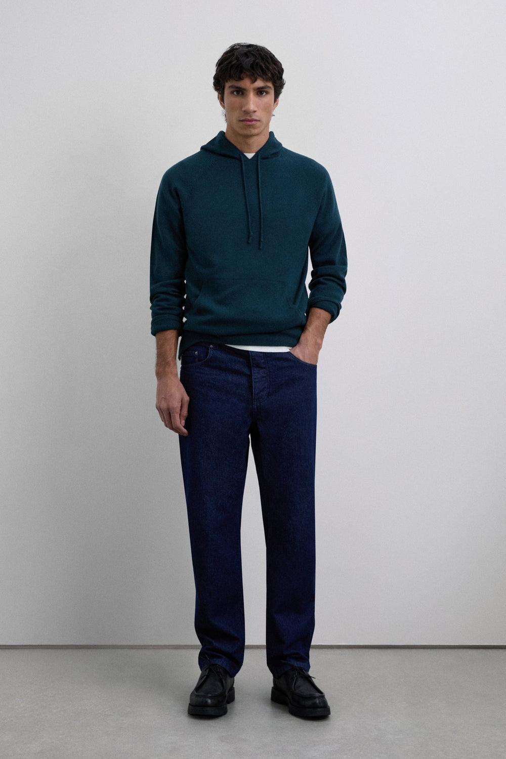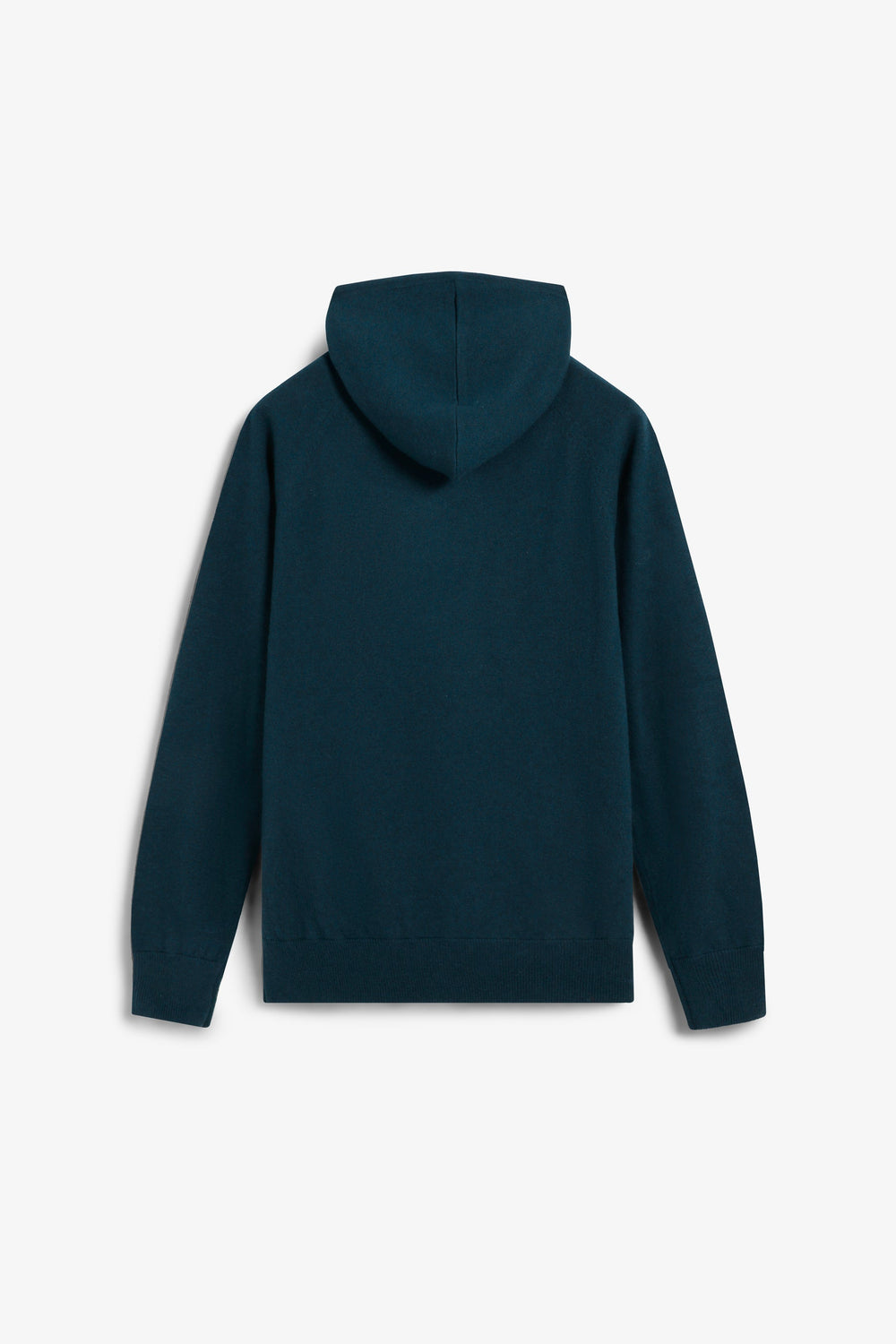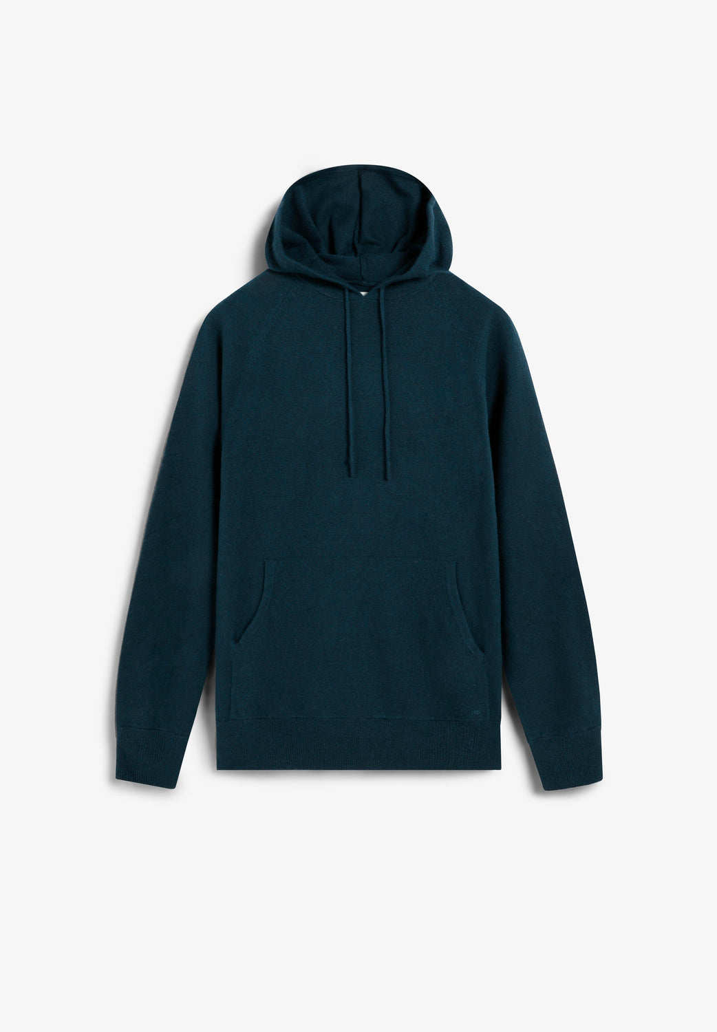 Jersey de punto confeccionado en 100% lana. Capucha ajustable mediante cordones. Manga larga. Bolsillo frontal estilo canguro. Mangas y cintura acabados en rib.