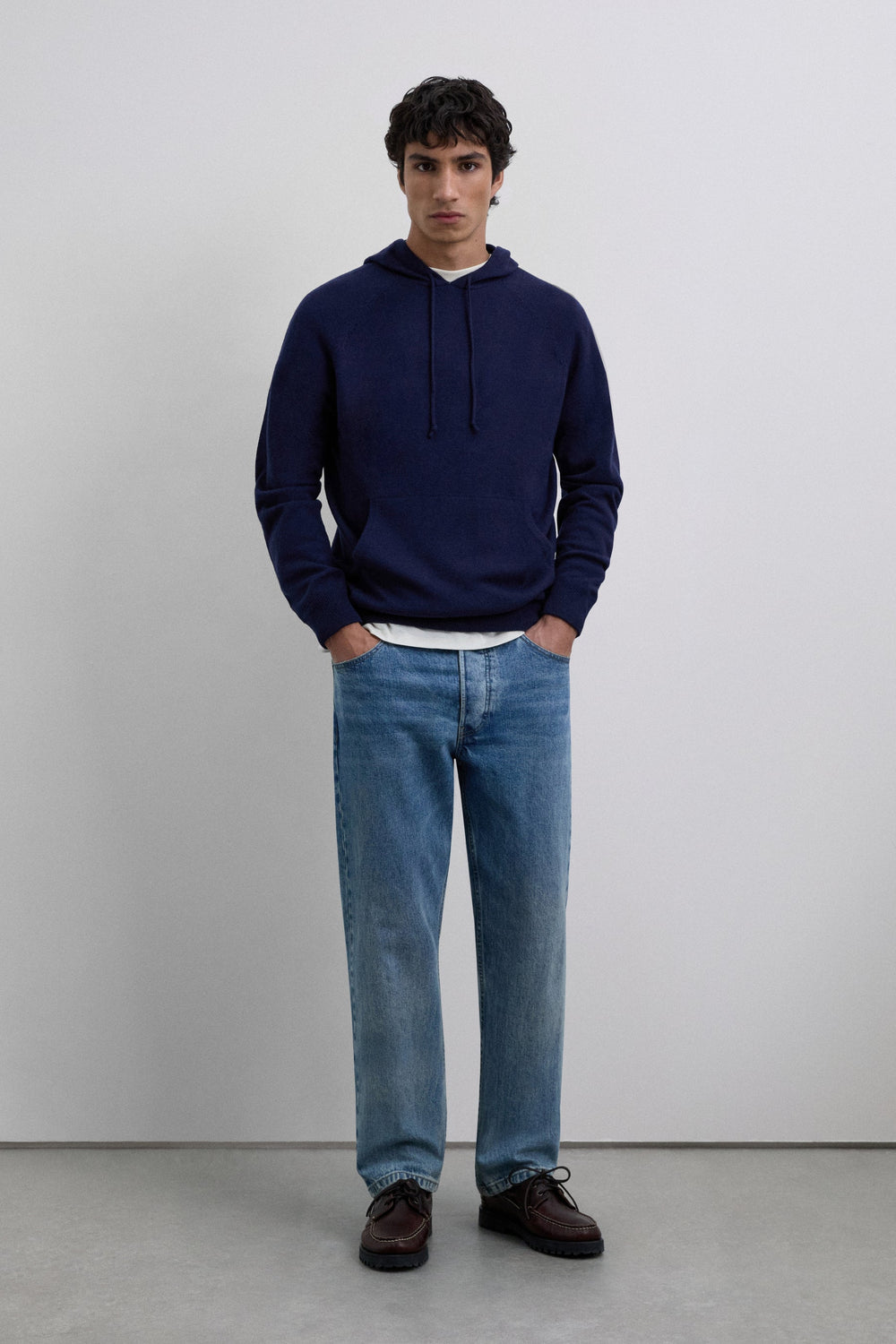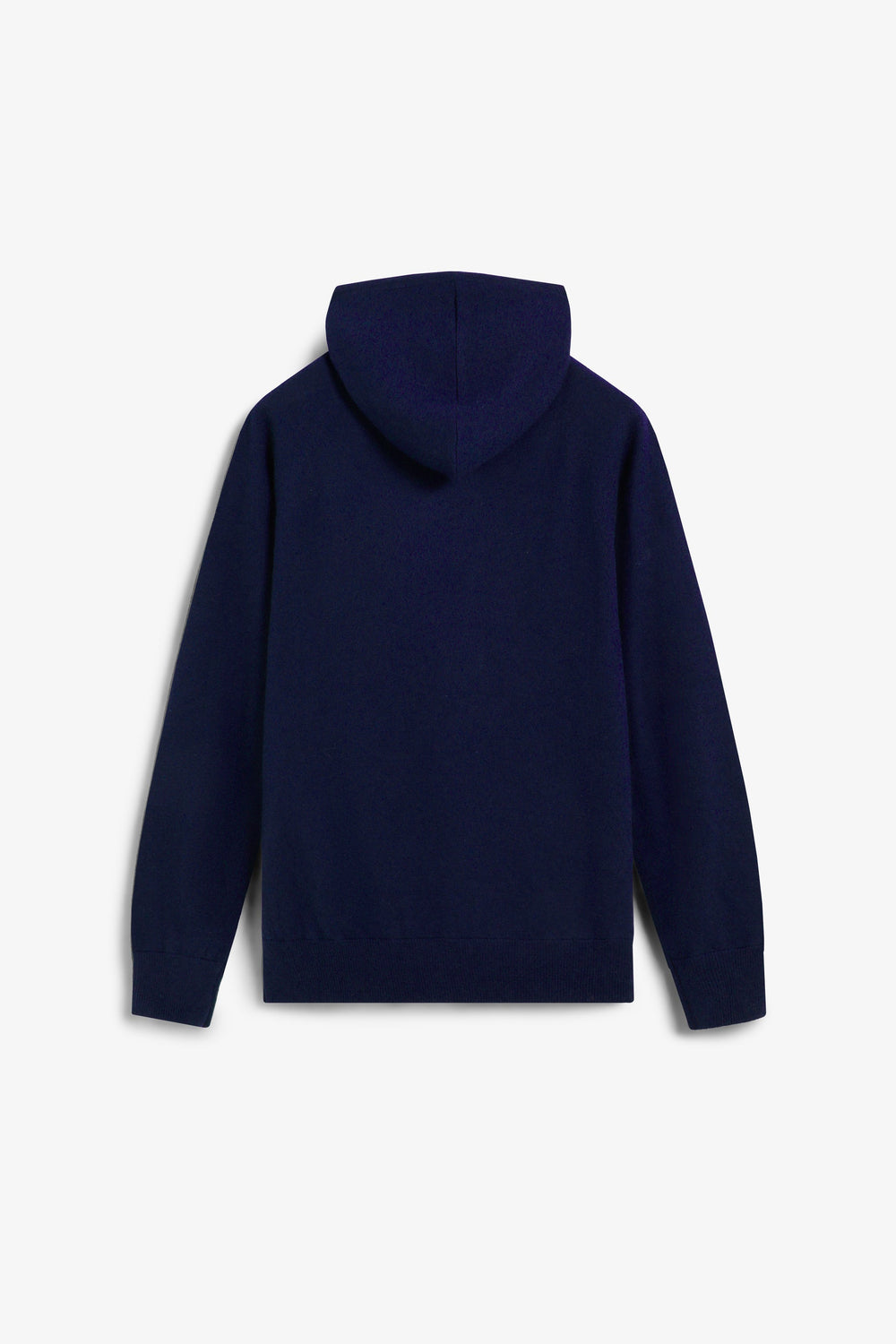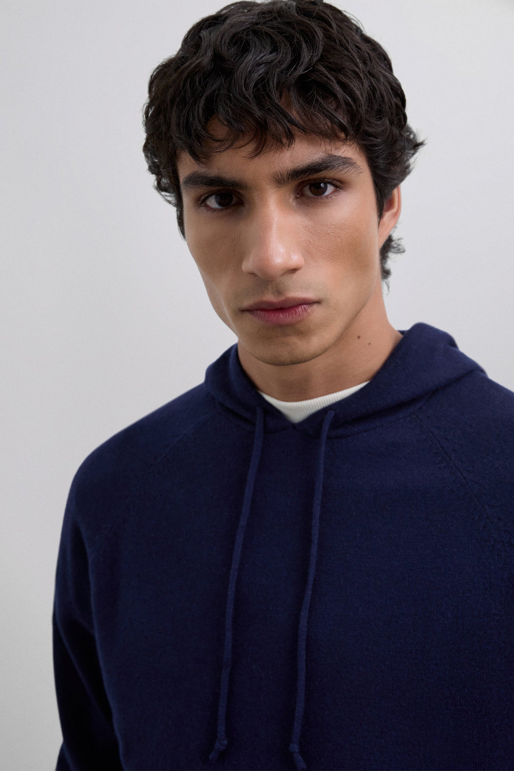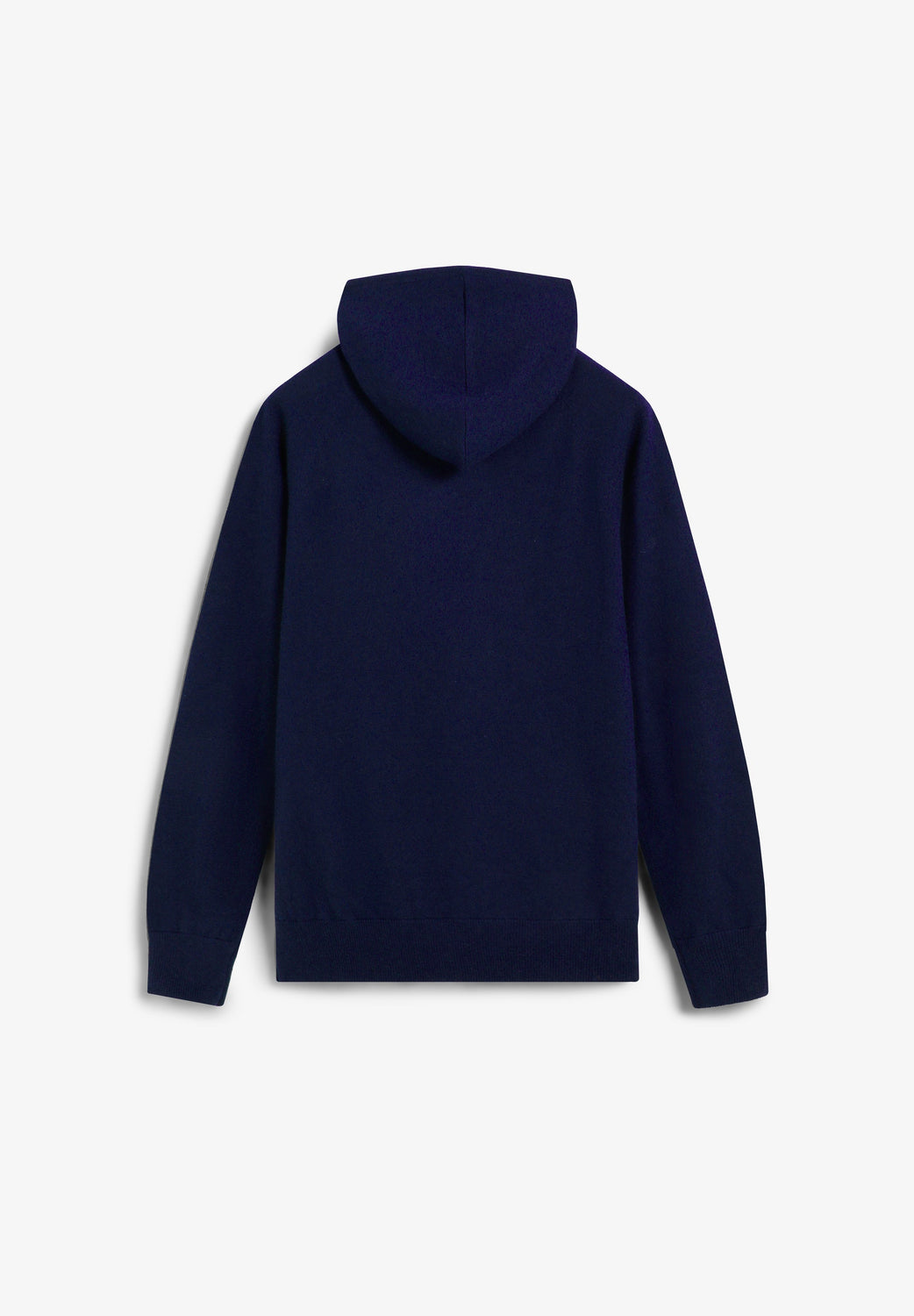 Jersey de punto confeccionado en 100% lana. Capucha ajustable mediante cordones. Manga larga. Bolsillo frontal estilo canguro. Mangas y cintura acabados en rib.