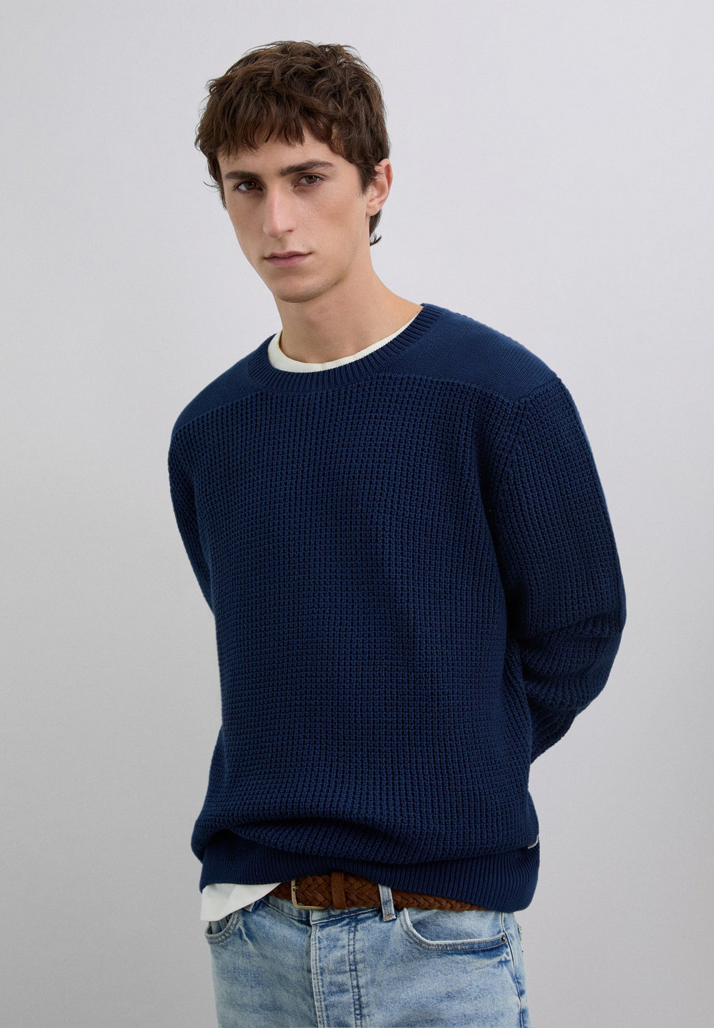 Jersey punto confeccionado en 100% algodón BCI. Regular Fit. Cuello redondo. Manga larga. Acabados acanalados.