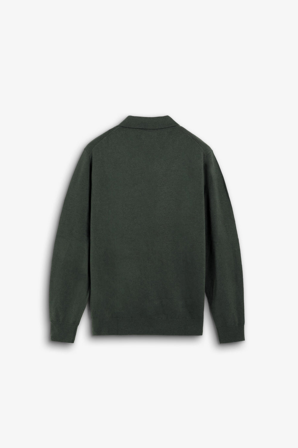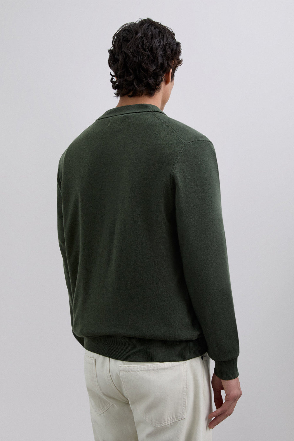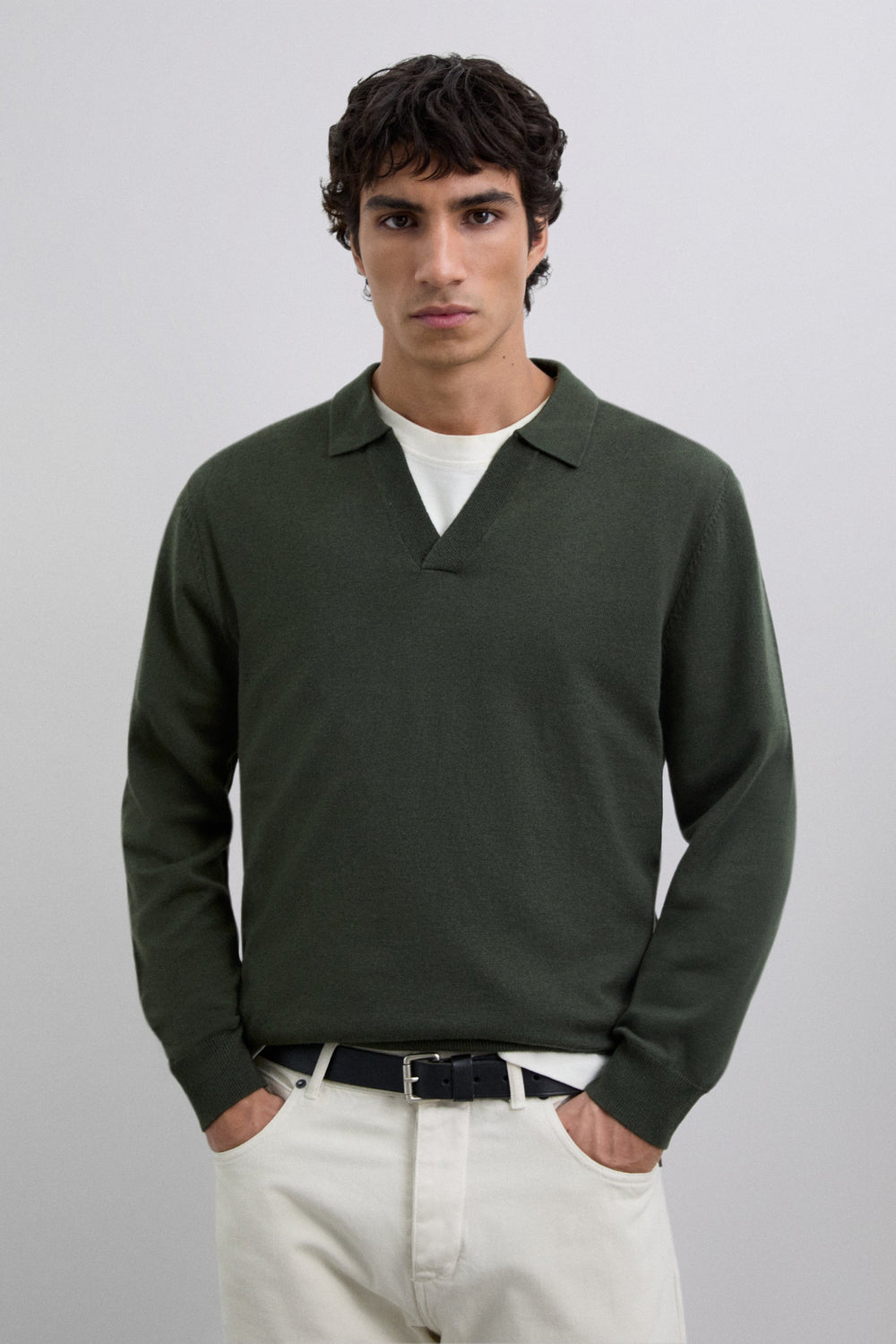 Polo de punto confeccionado en lana. Manga larga. Acabados en rib. Cuello de pico.