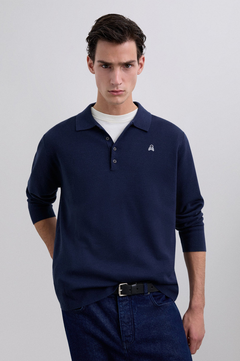 Jersey polo confeccionado en mezcla de lana. Corte Regular Fit. Manga larga. Parche de logo a contraste en pecho.