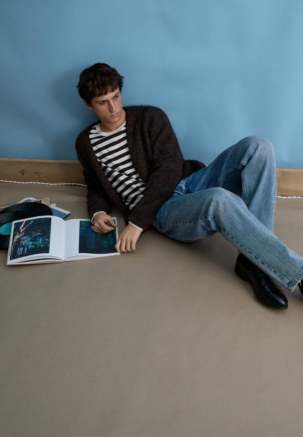 Cárdigan confeccionado en mezcla alpaca. Cuello en pico. Manga larga. Dos bolsillos frontales. Cierre mediante botonadura frontal.