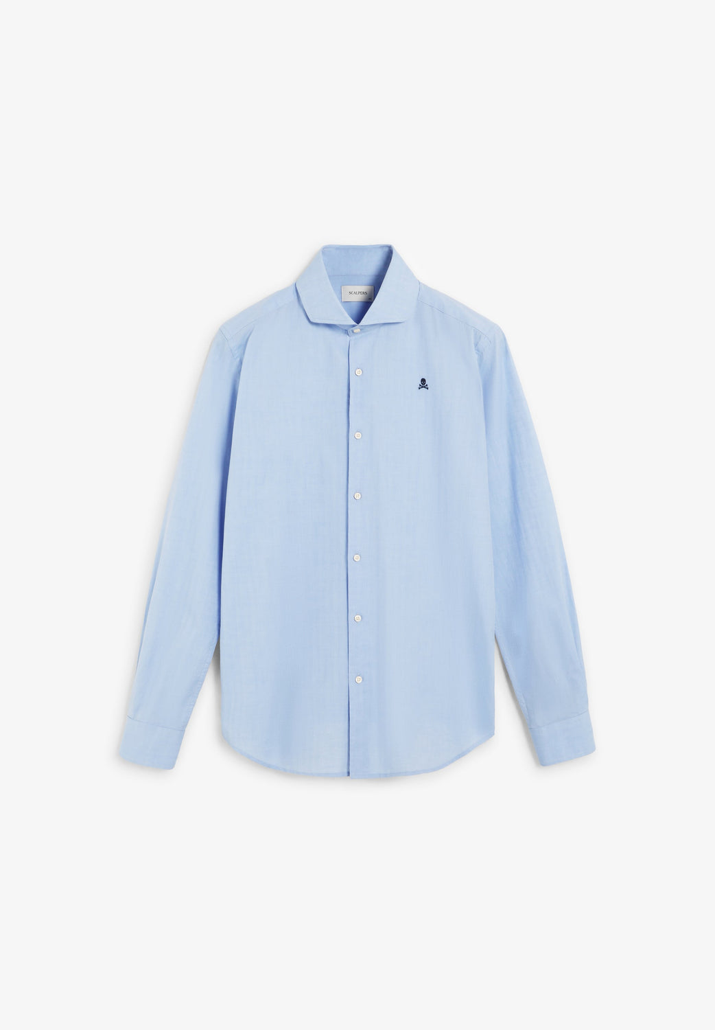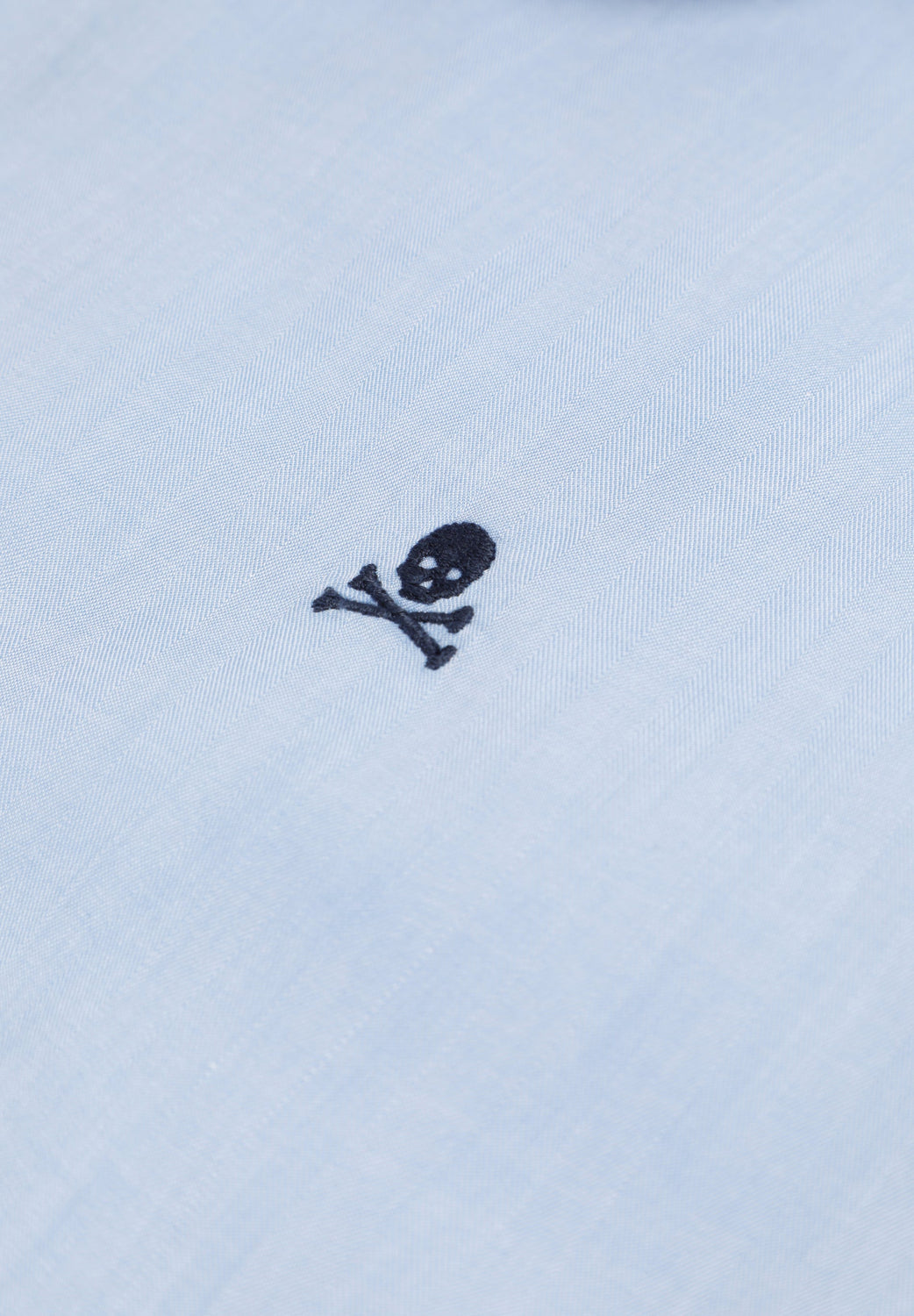 Camisa confeccionada en 100% algodón BCI. Regular Fit. Manga larga. Cierre frontal y en puño mediante abotonadura. Detalle calavera bordada a contraste en pecho.