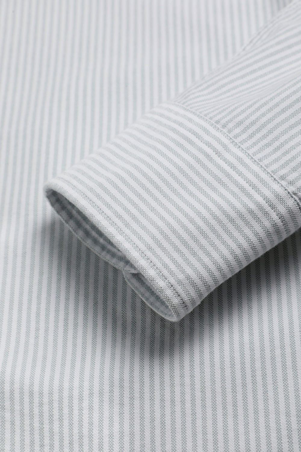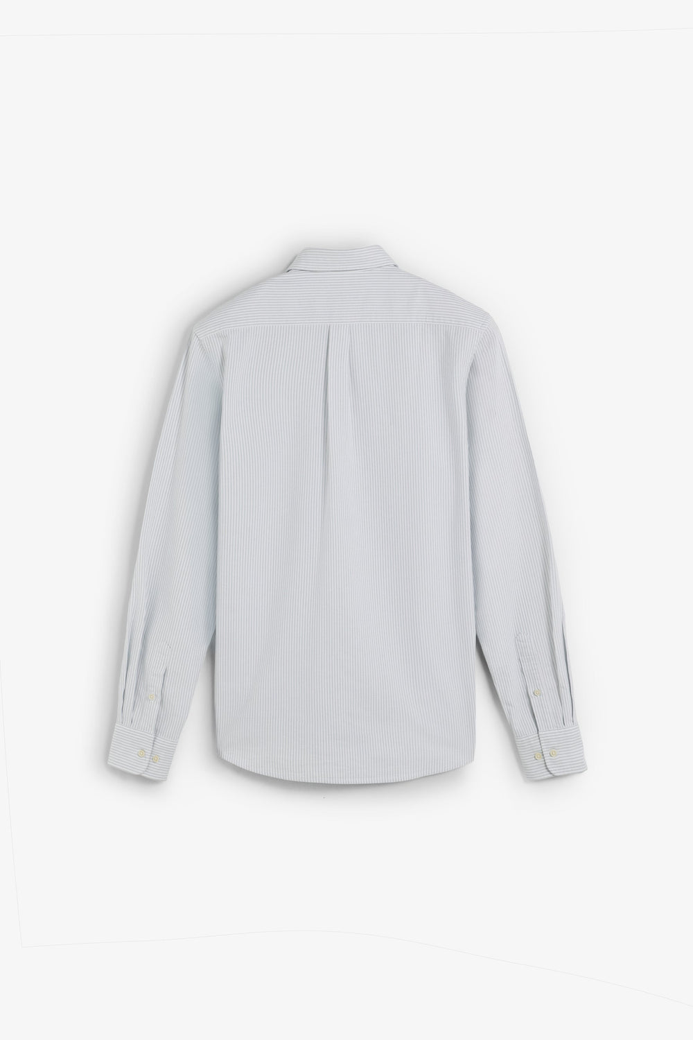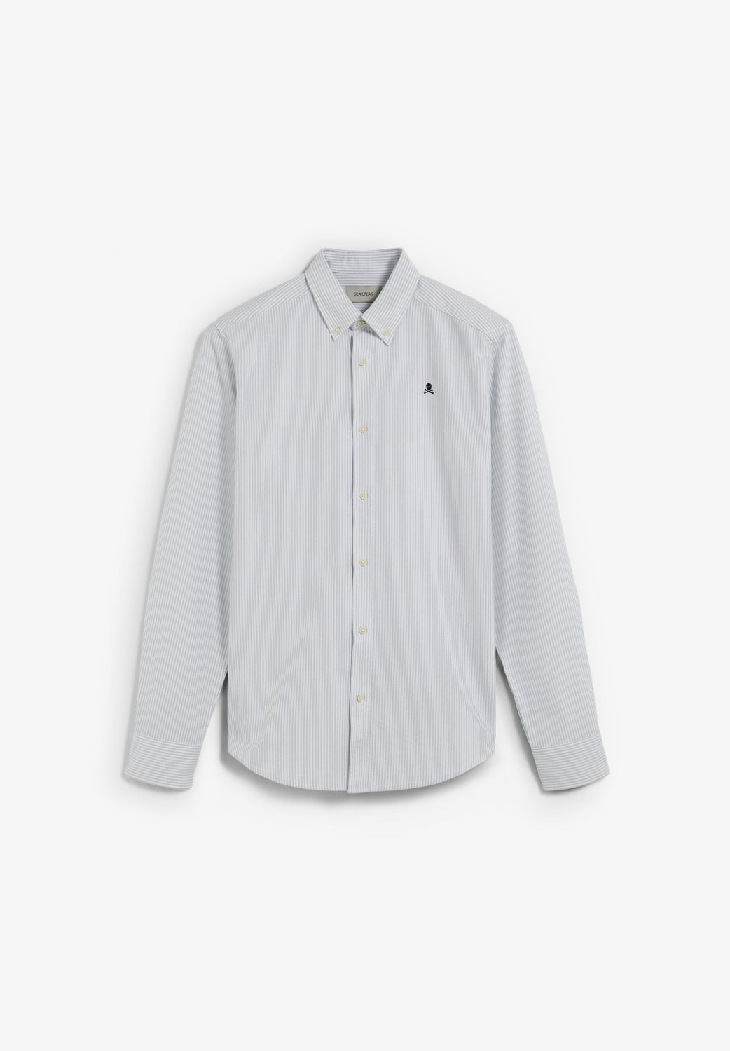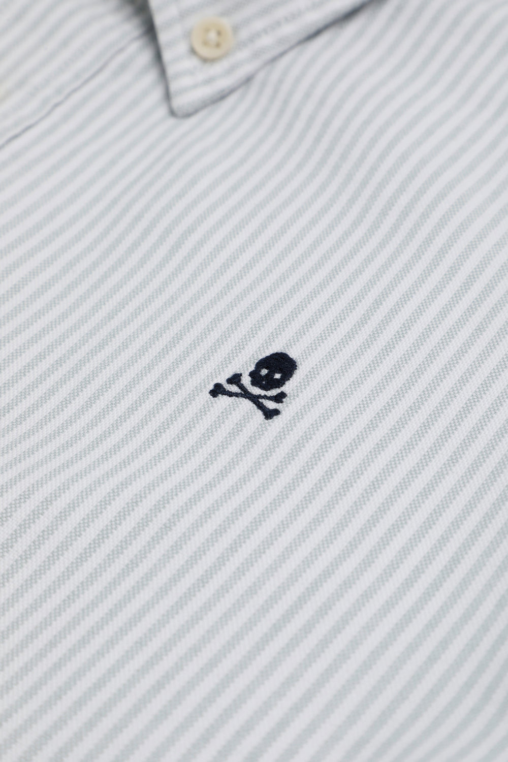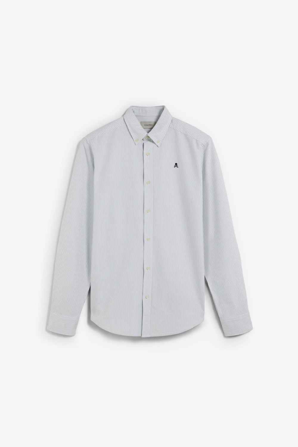 Camisa Oxford confeccionada en 100% algodón BCI. Cierre mediante abotonadura, Estampado de rayas. Manga larga con cierre mediante botón. Detalle de calavera bordada a contraste en pecho.