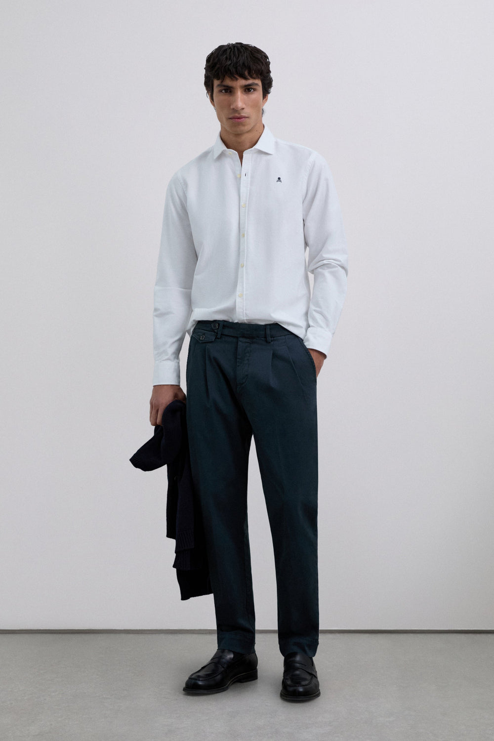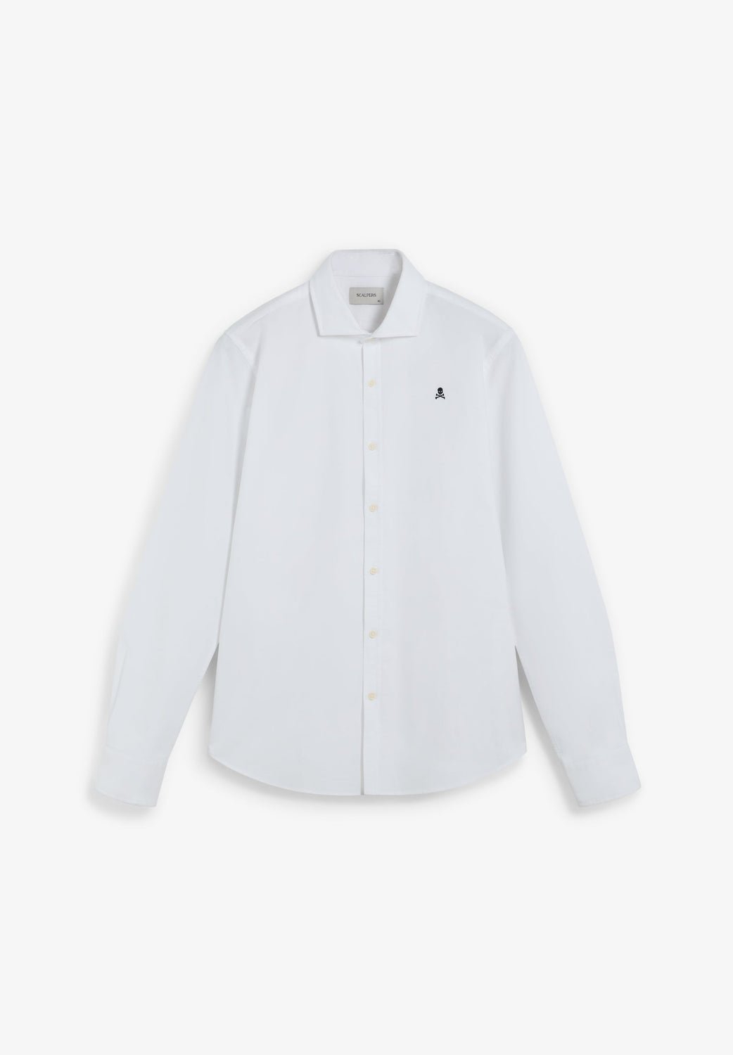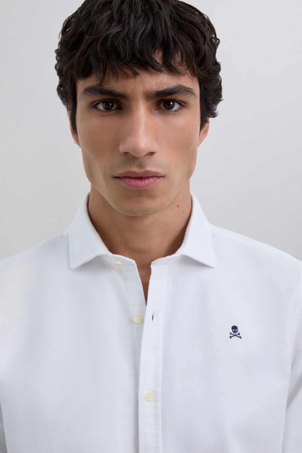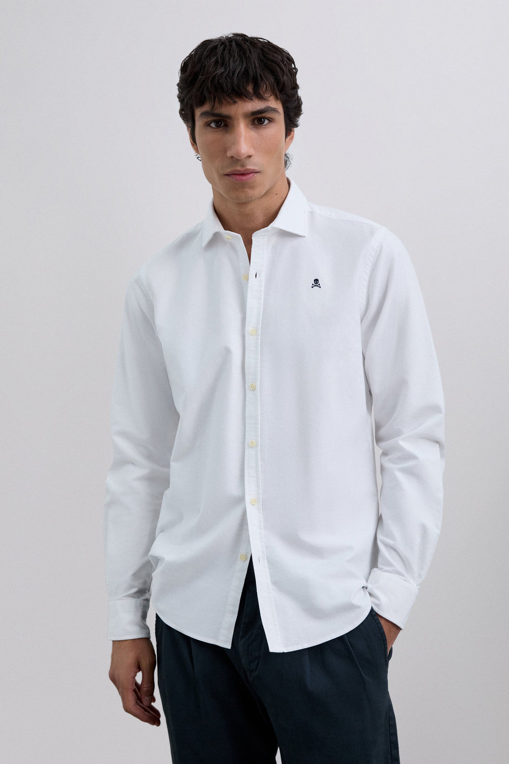Camisa Oxford confeccionada en 100% algodón BCI. Regular Fit. Manga larga. Cierre frontal y en puños mediante abotonadura. Detalle de calavera bordada a contraste en pecho.