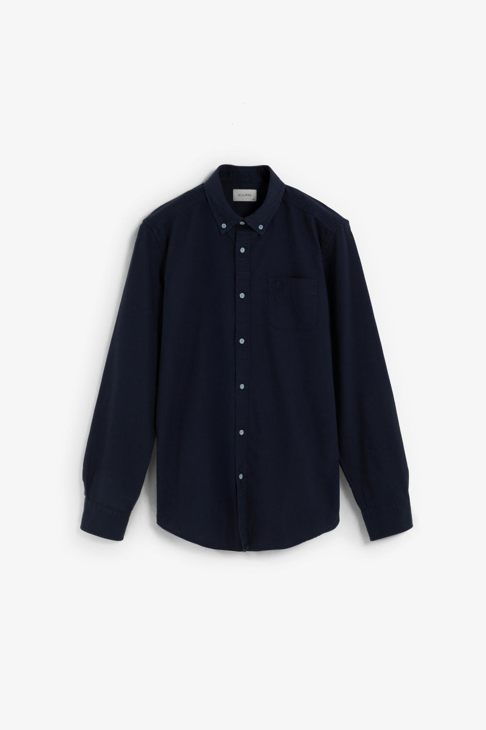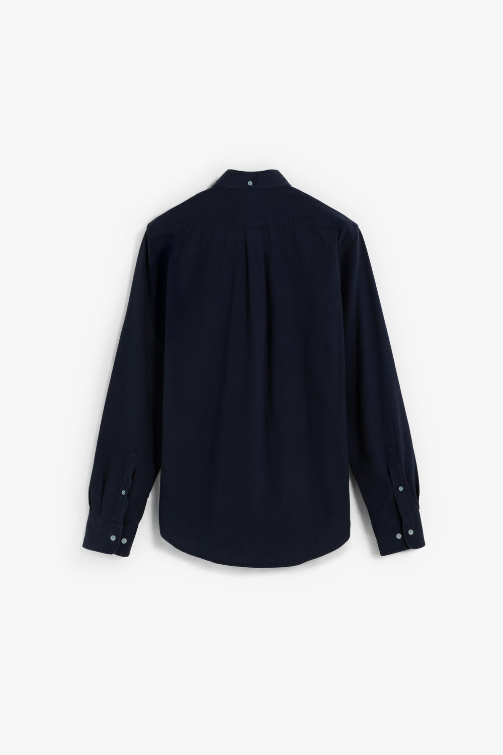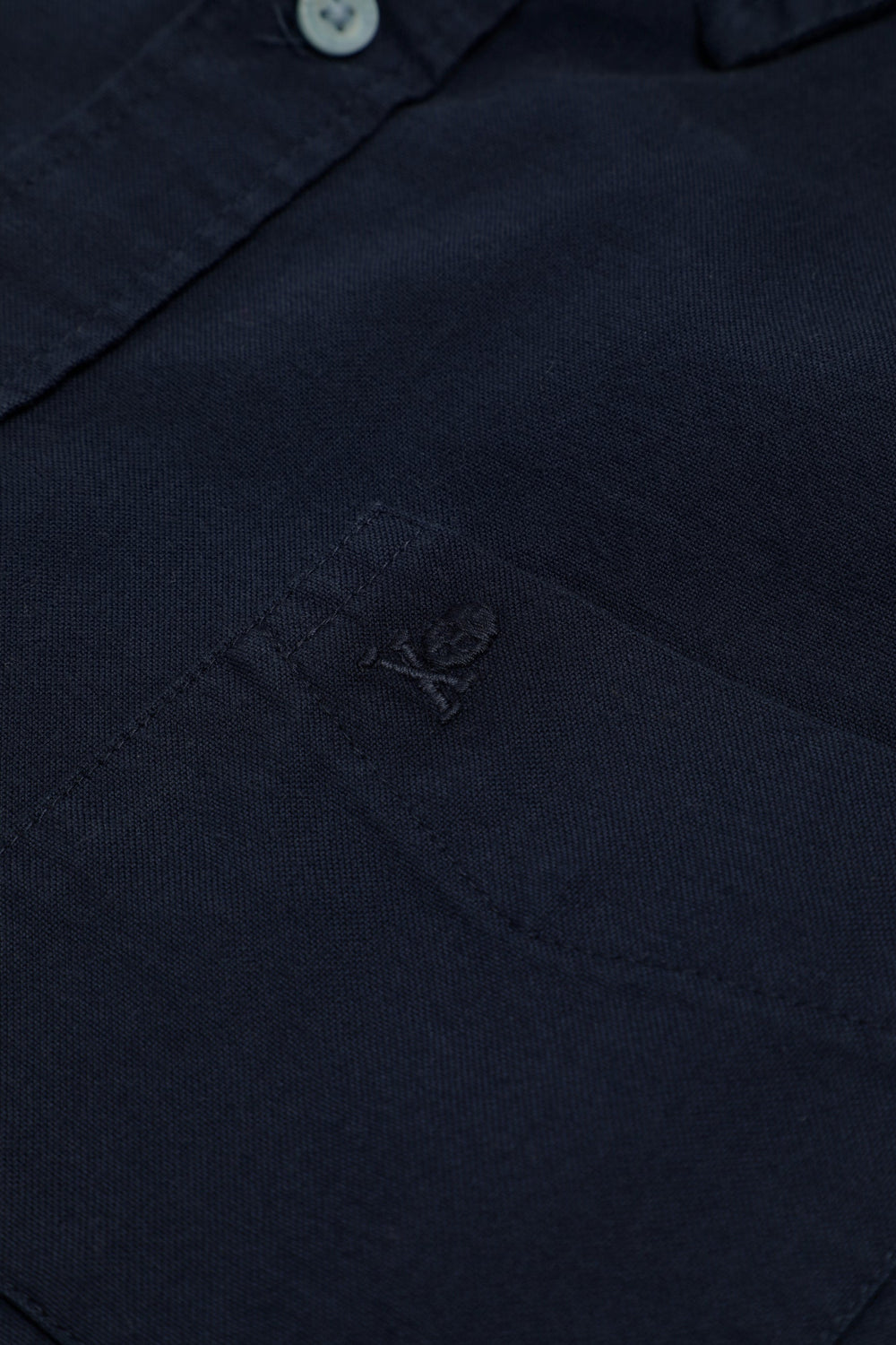 Camisa confeccionada en 100% Algodón BCI. Corte Regular fit. Detalle calavera bordada a tono en pecho. Cuello con botones. Manga larga terminada en puño con botones. Bolsillo tipo parche en pecho. Cierre frontal con botones.